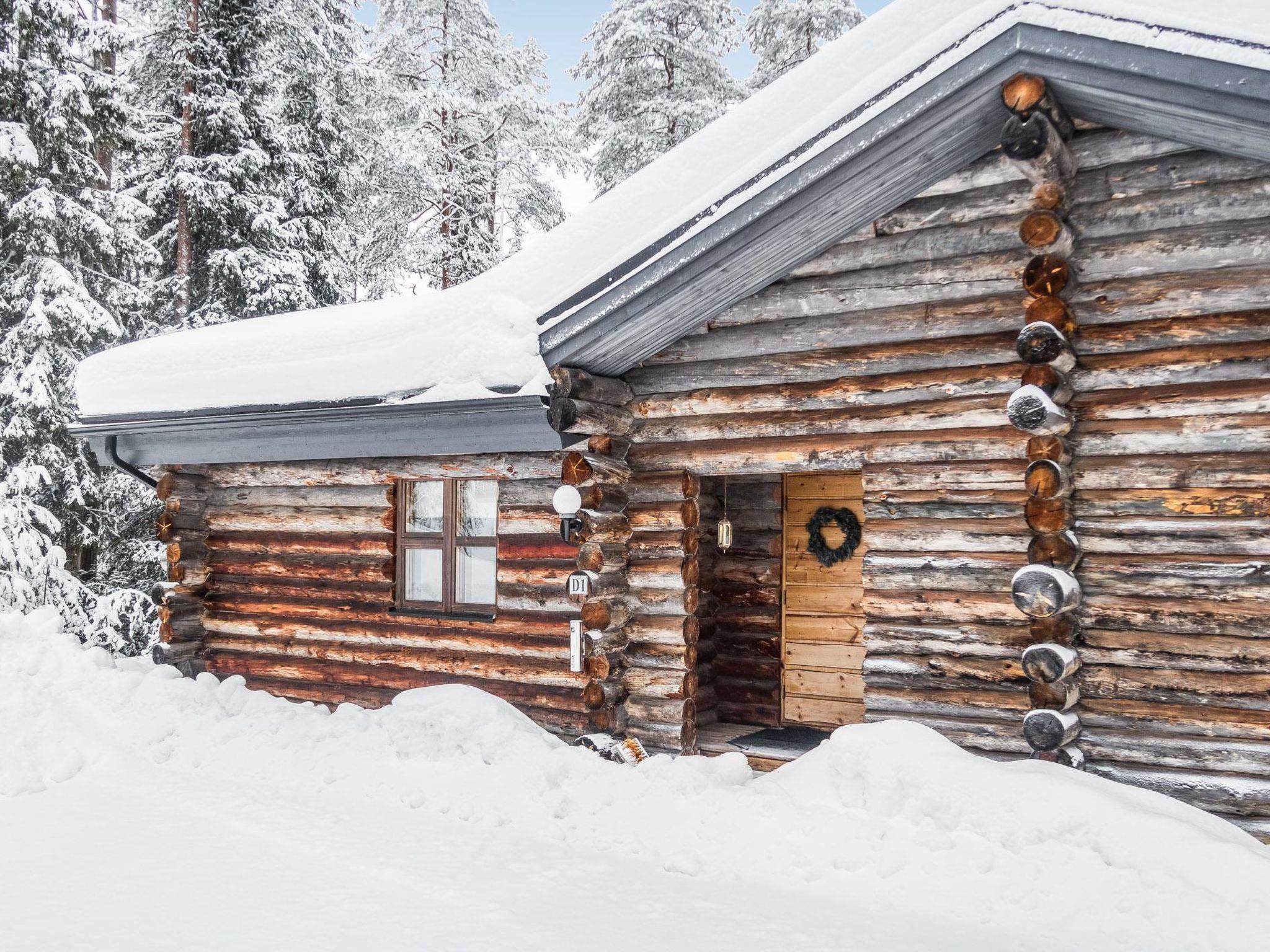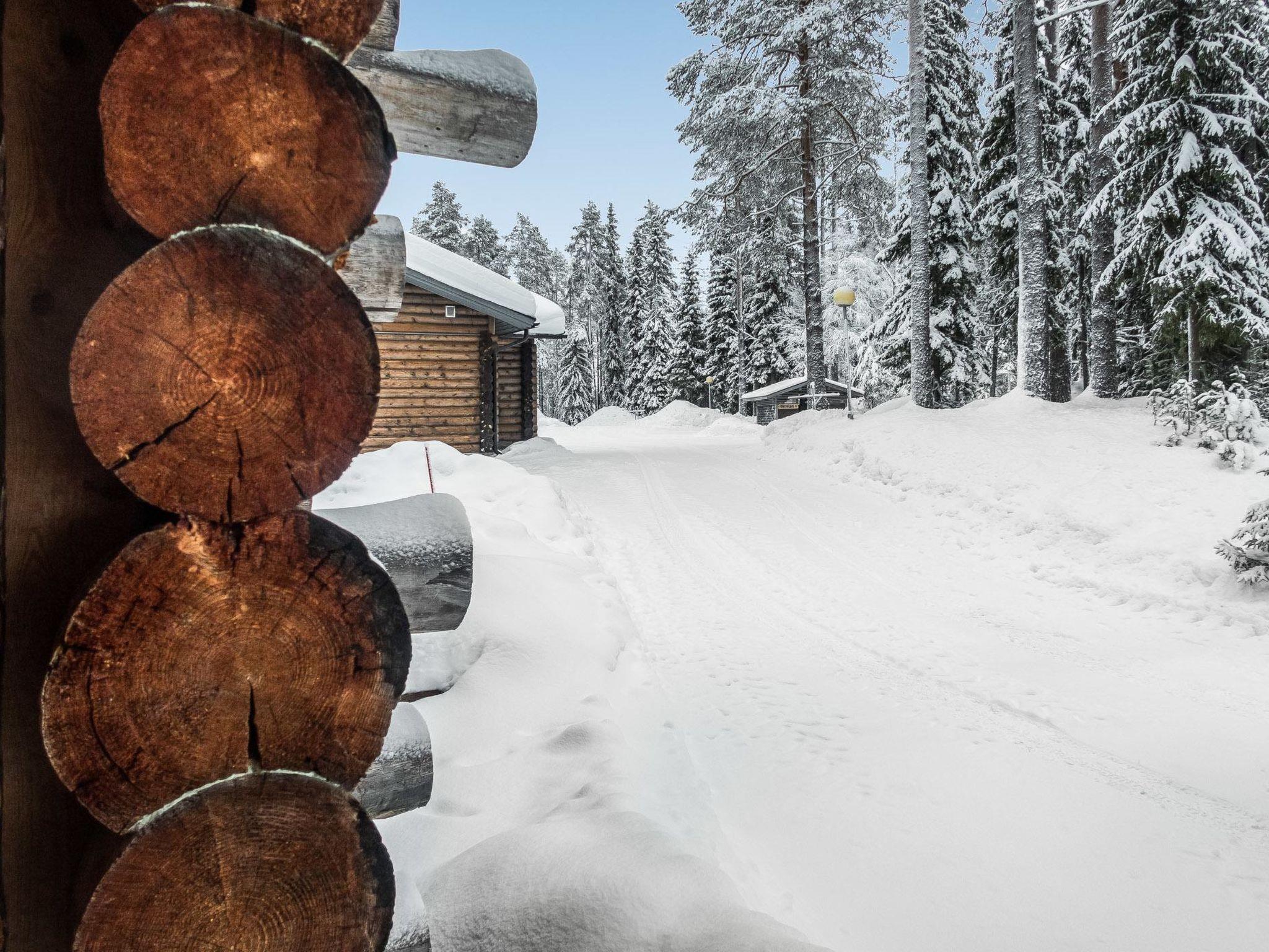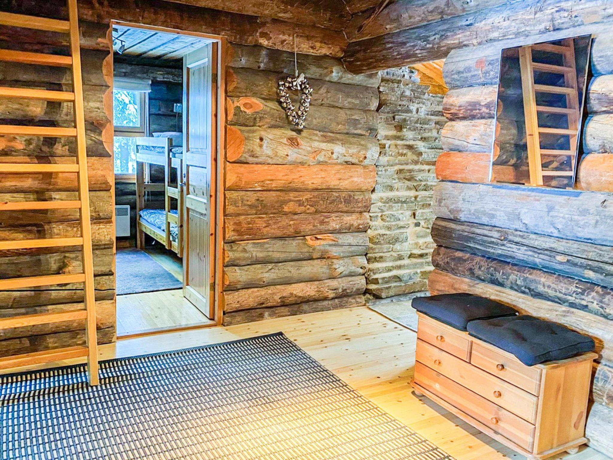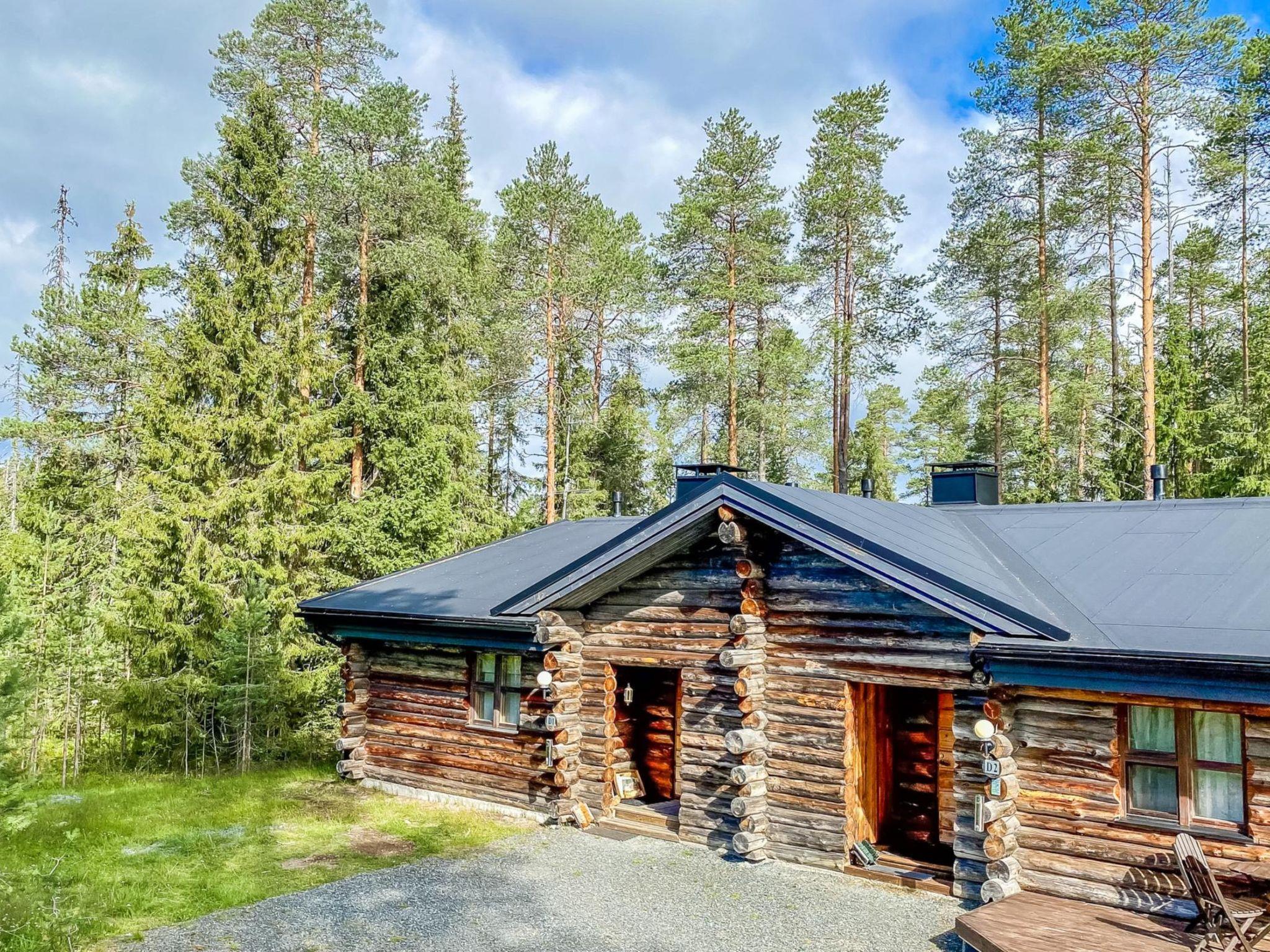 25 km north of Kuusamo, Ruka village 3 km. Apartment in log-built semidetached house, built in 1991, bedroom 1: double bed, bedroom 2: 1 bed and bunk bed, low loft (7 m², steep stairs to loft): four mattresses, combined living room/kitchen, electric sauna.