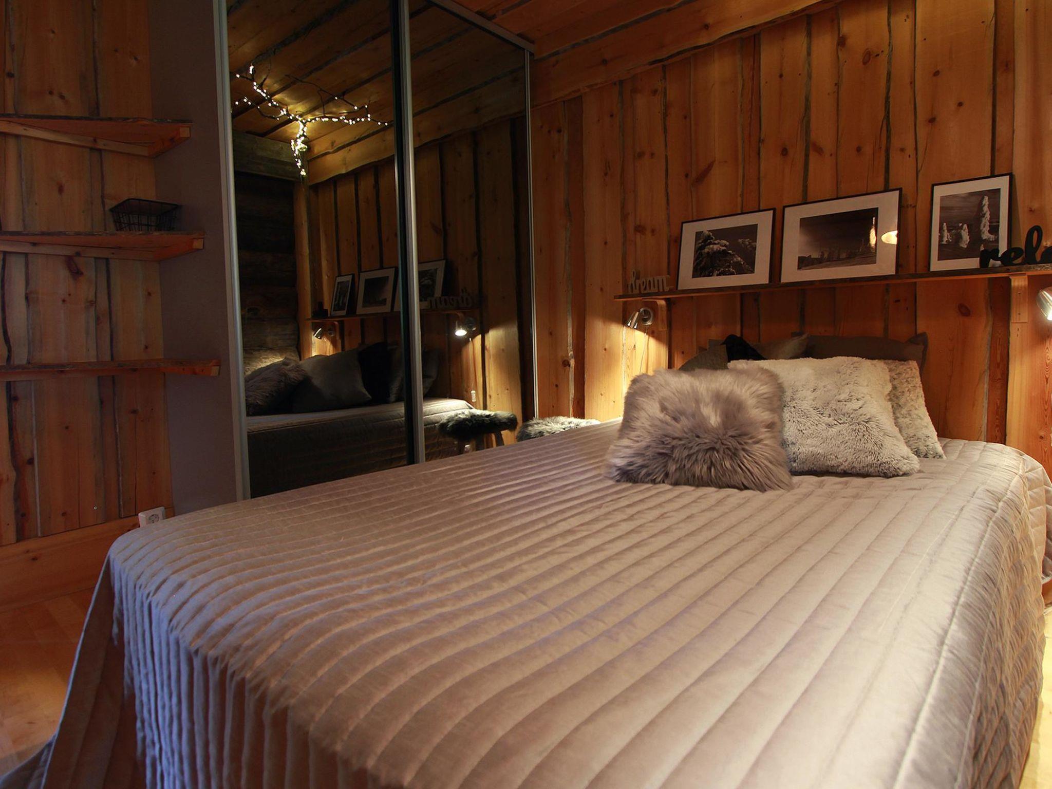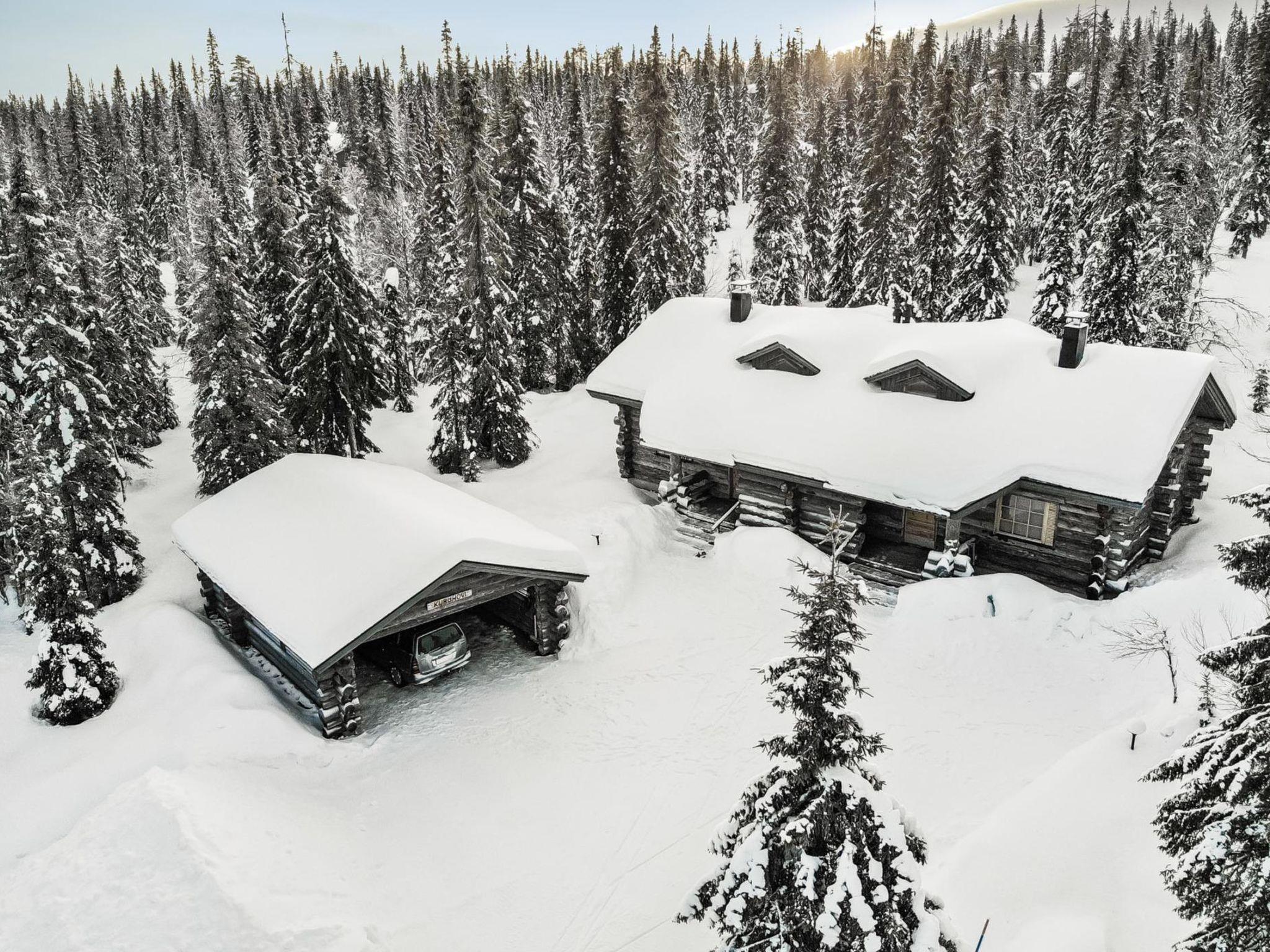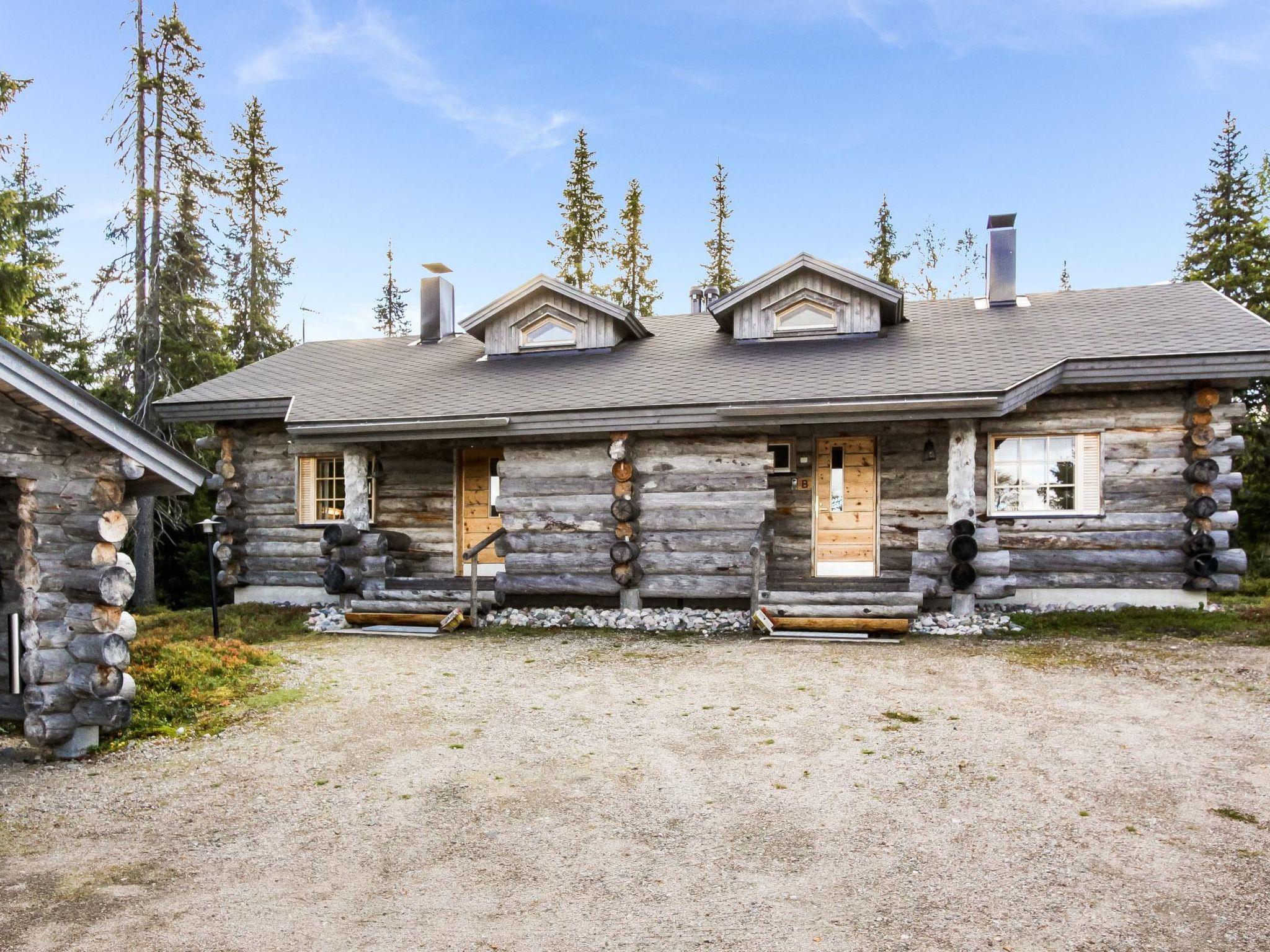 25km north of Kuusamo, Vuosseli (Eastern Ruka) 500m. Apartment in log-built semi-detached house, built in 1999, bedroom: double bed (140 cm wide), loft (floor area about 20 m², sloping ceilings, highest point 180 cm): 4 beds, gentle stairs to loft, combined kitchen/living room, electric sauna.