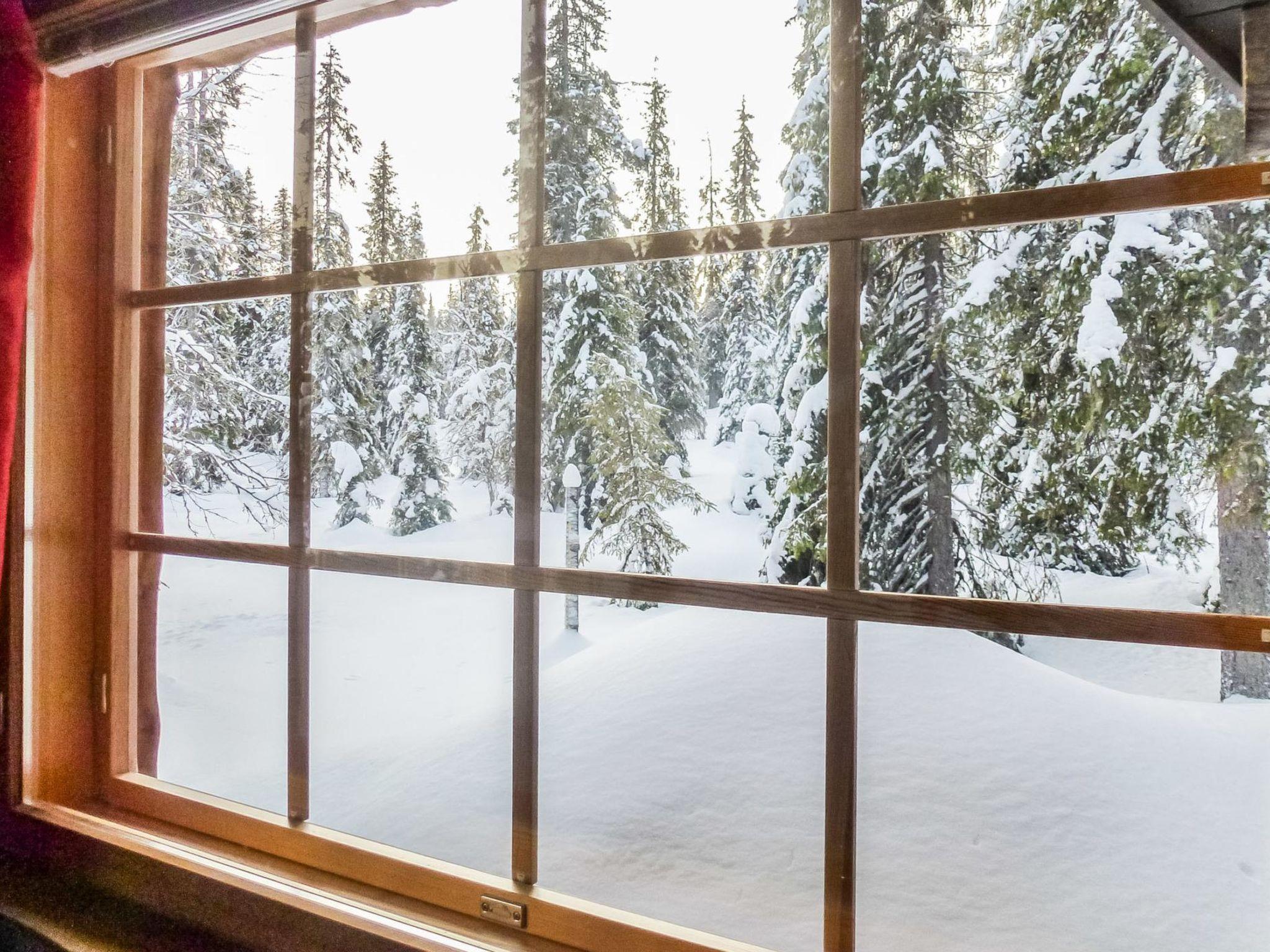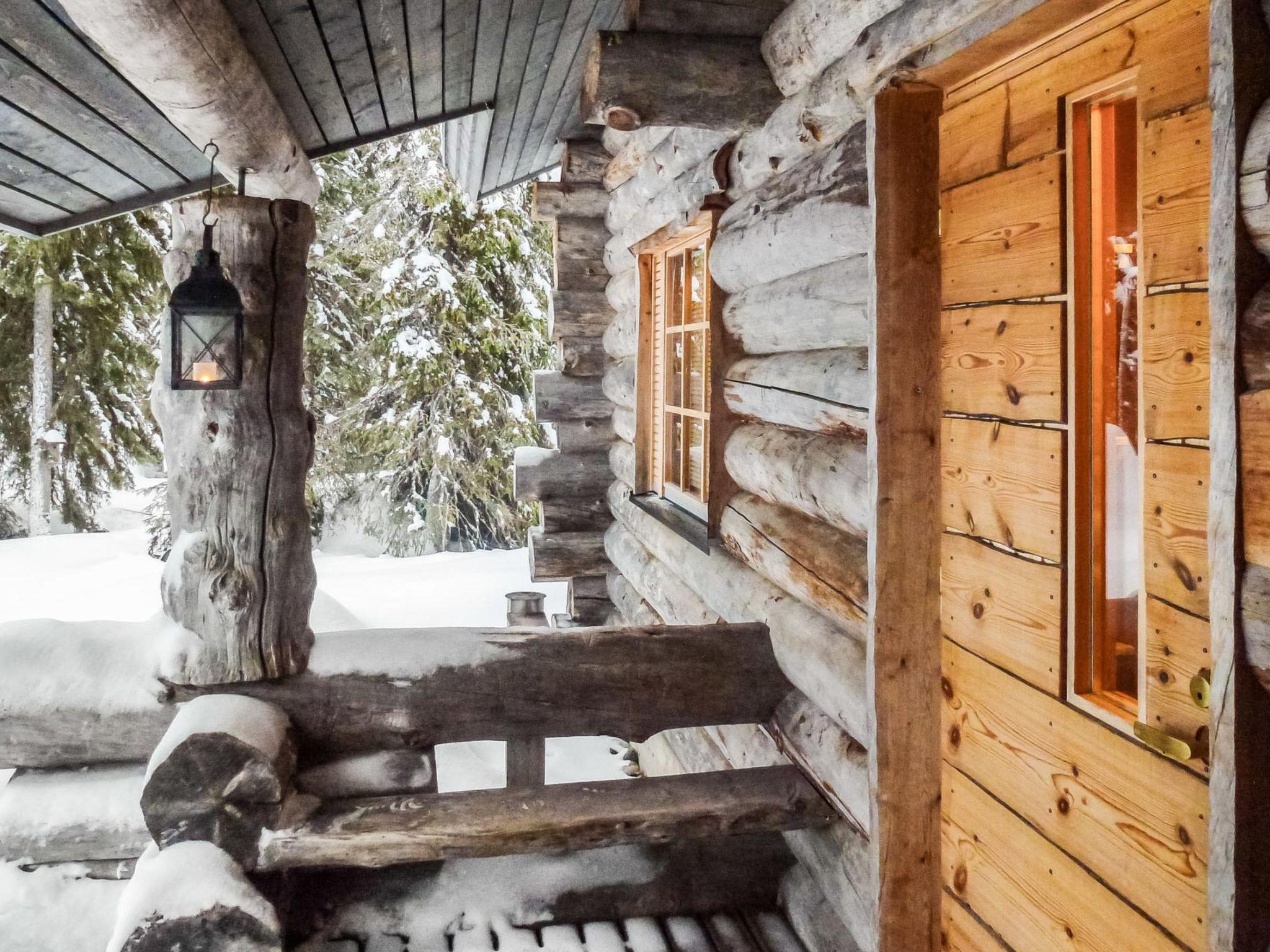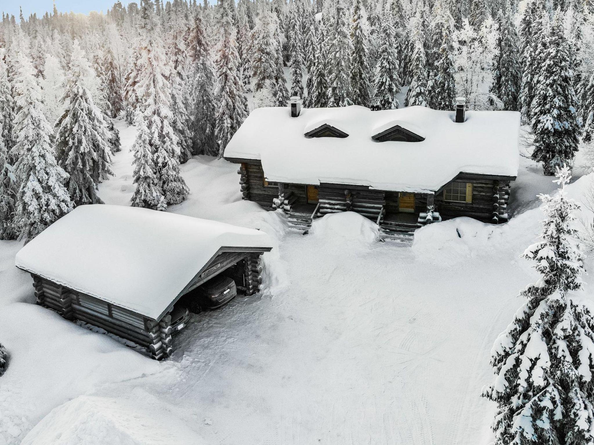 25km north of Kuusamo, Vuosseli (Eastern Ruka) 500m. Apartment in log-built semi-detached house, built in 1999, bedroom: double bed (140 cm wide), loft (floor area about 20 m², sloping ceilings, highest point 180 cm): 4 beds, gentle stairs to loft, combined kitchen/living room, electric sauna.