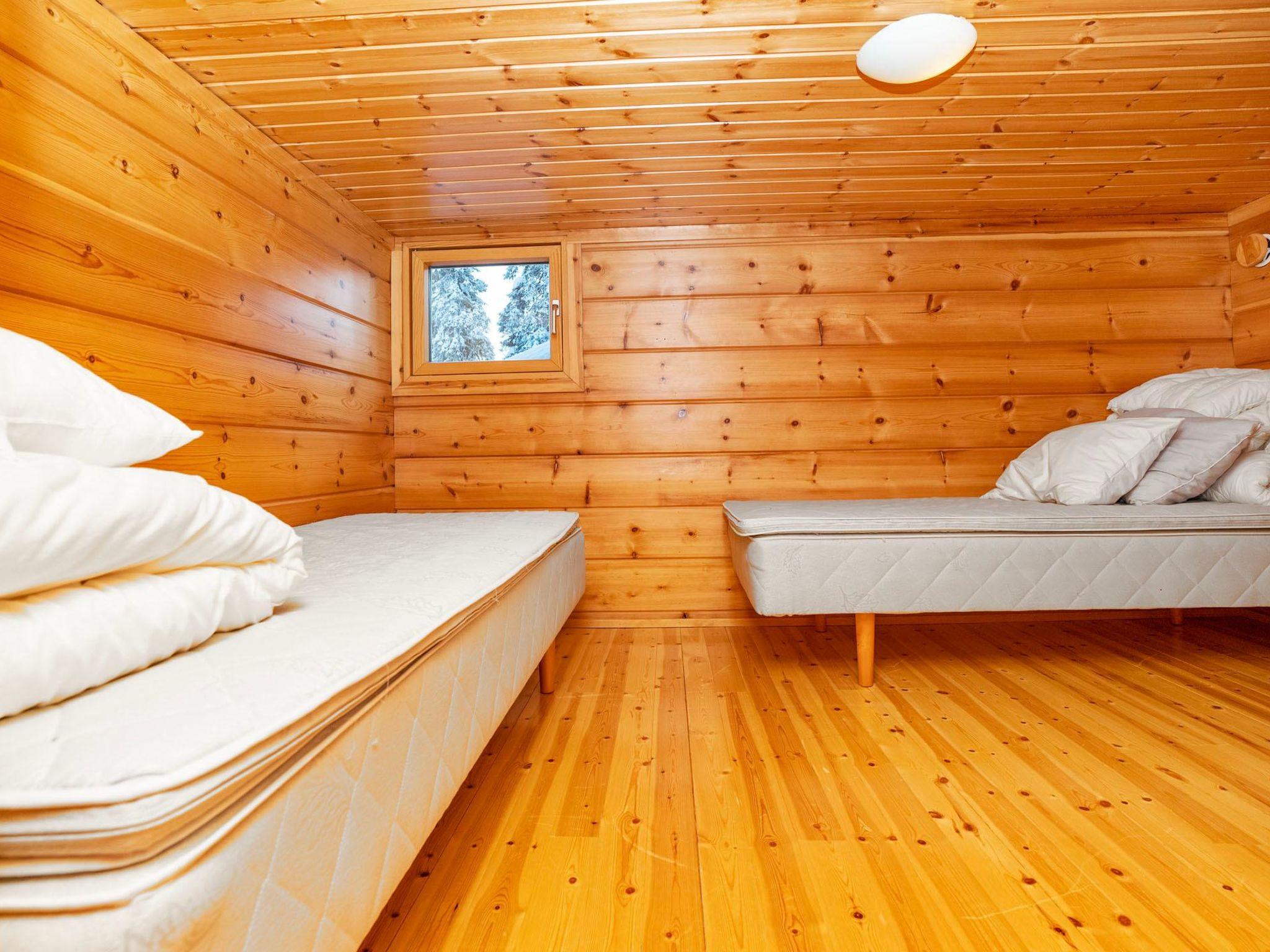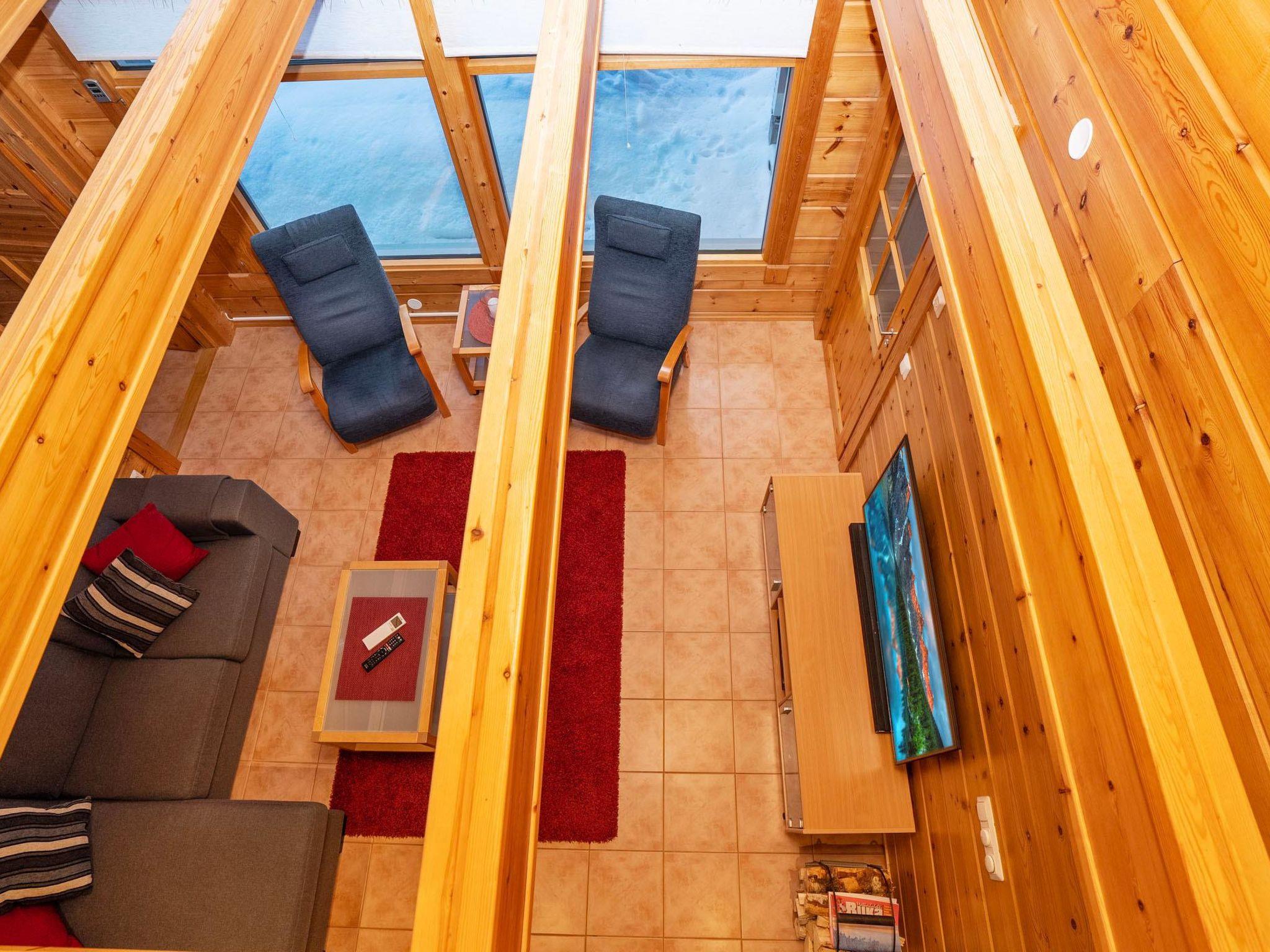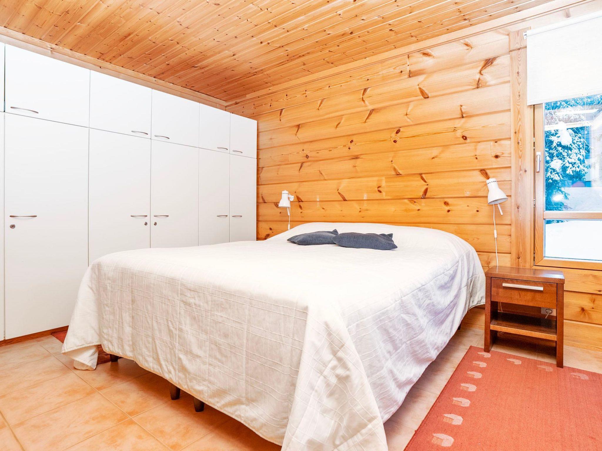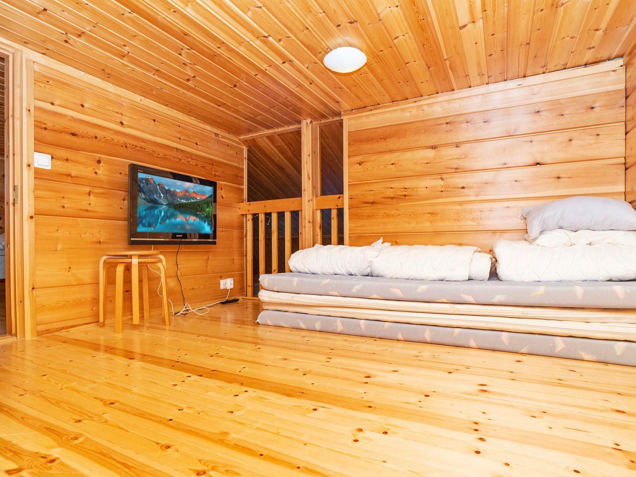 High level apartment in log-built semi-detached house, built in 2005. Bedroom 1: double bunk bed (width 140 cm), bedroom 2: 2 beds (can not be separated), bedroom in loft: 2 beds, loft (room heigth less than 2 m), steep stairs to the loft, living room: convertible sofa, combined kitchen/living room, electric sauna.
