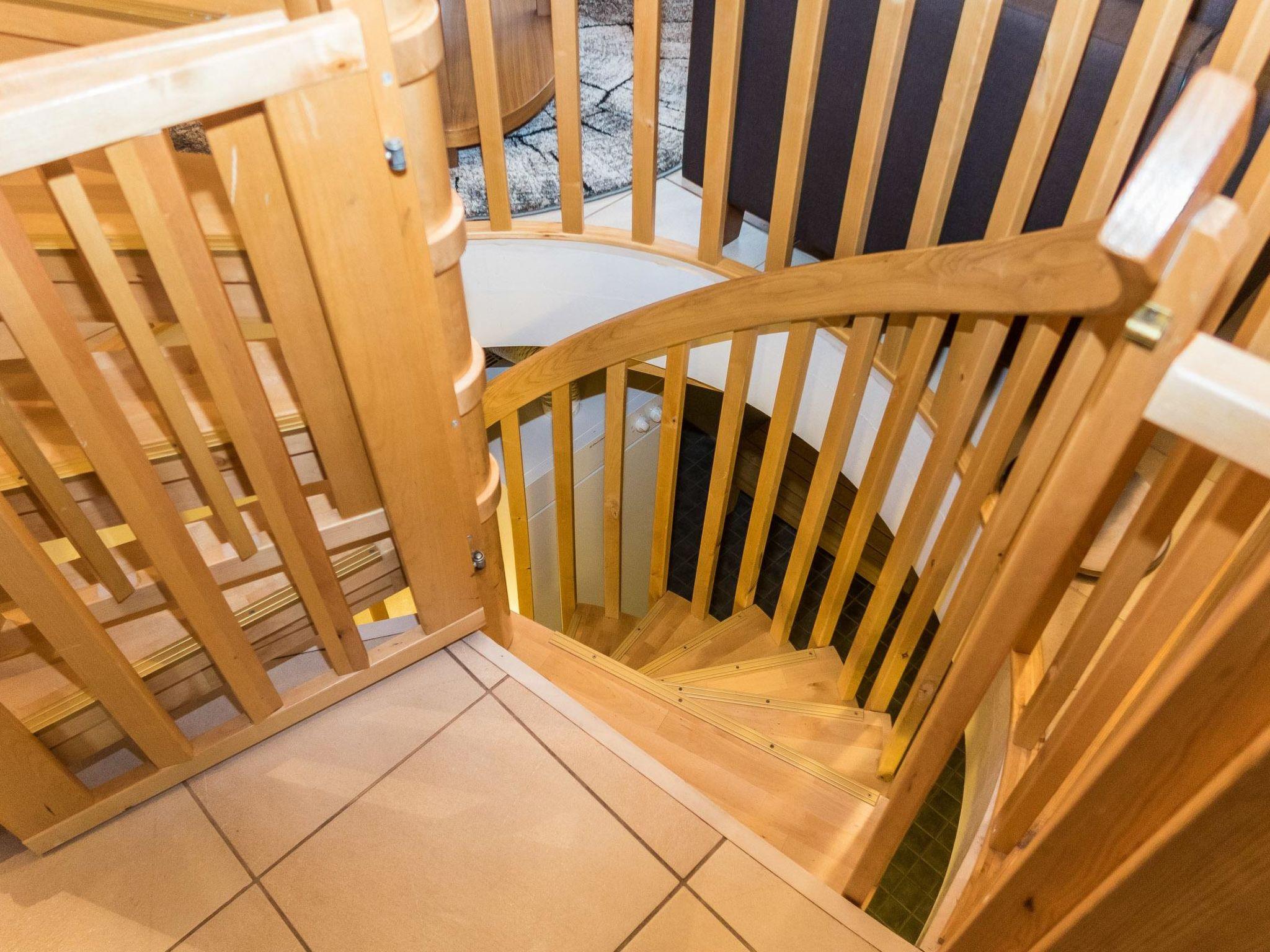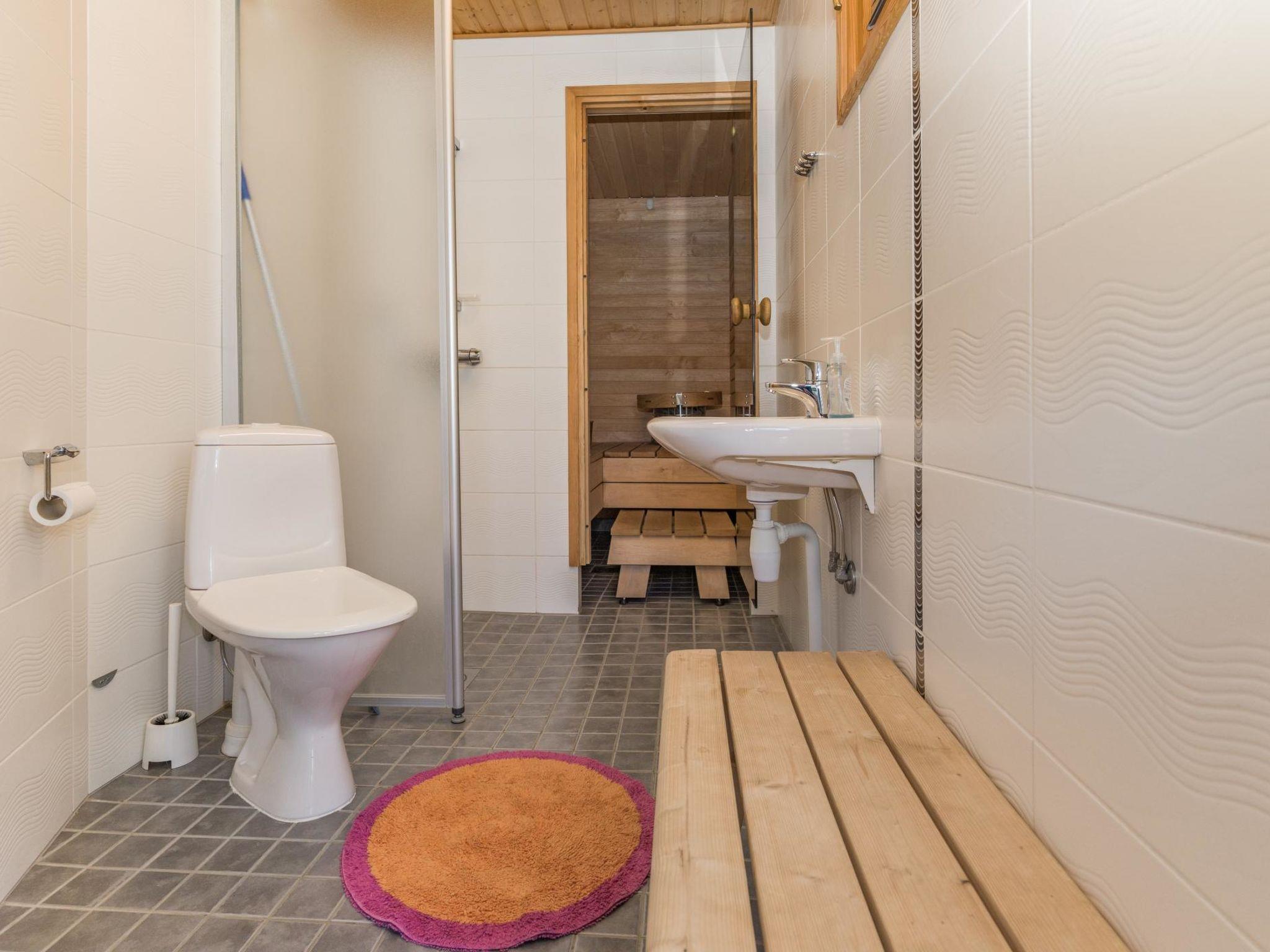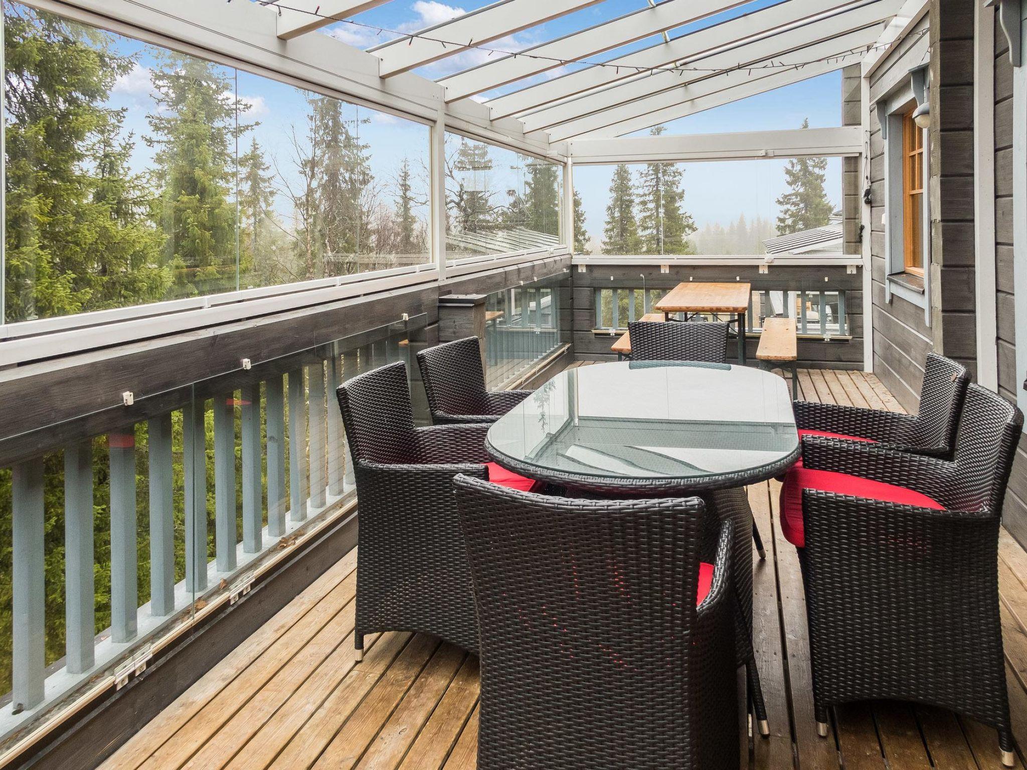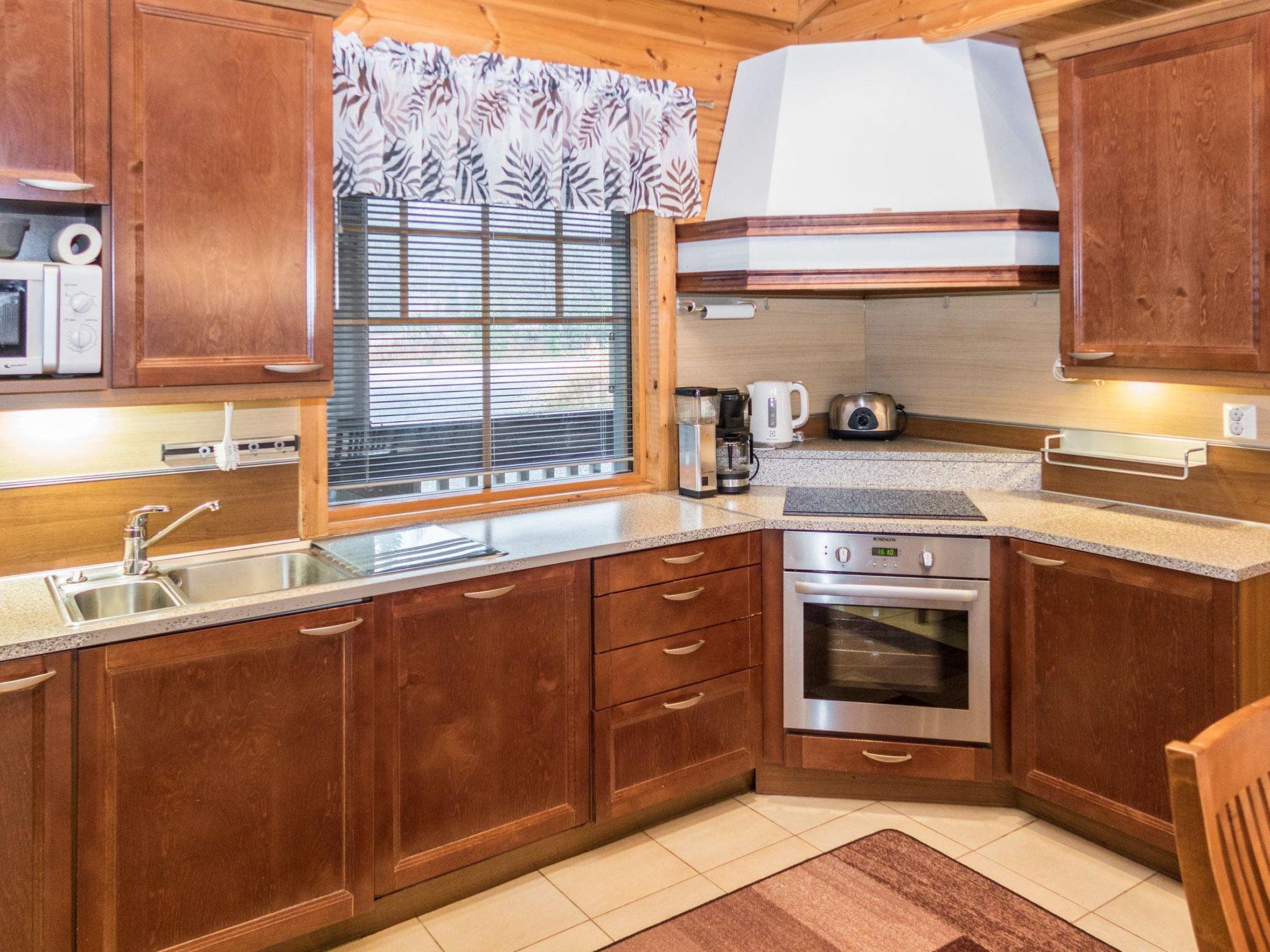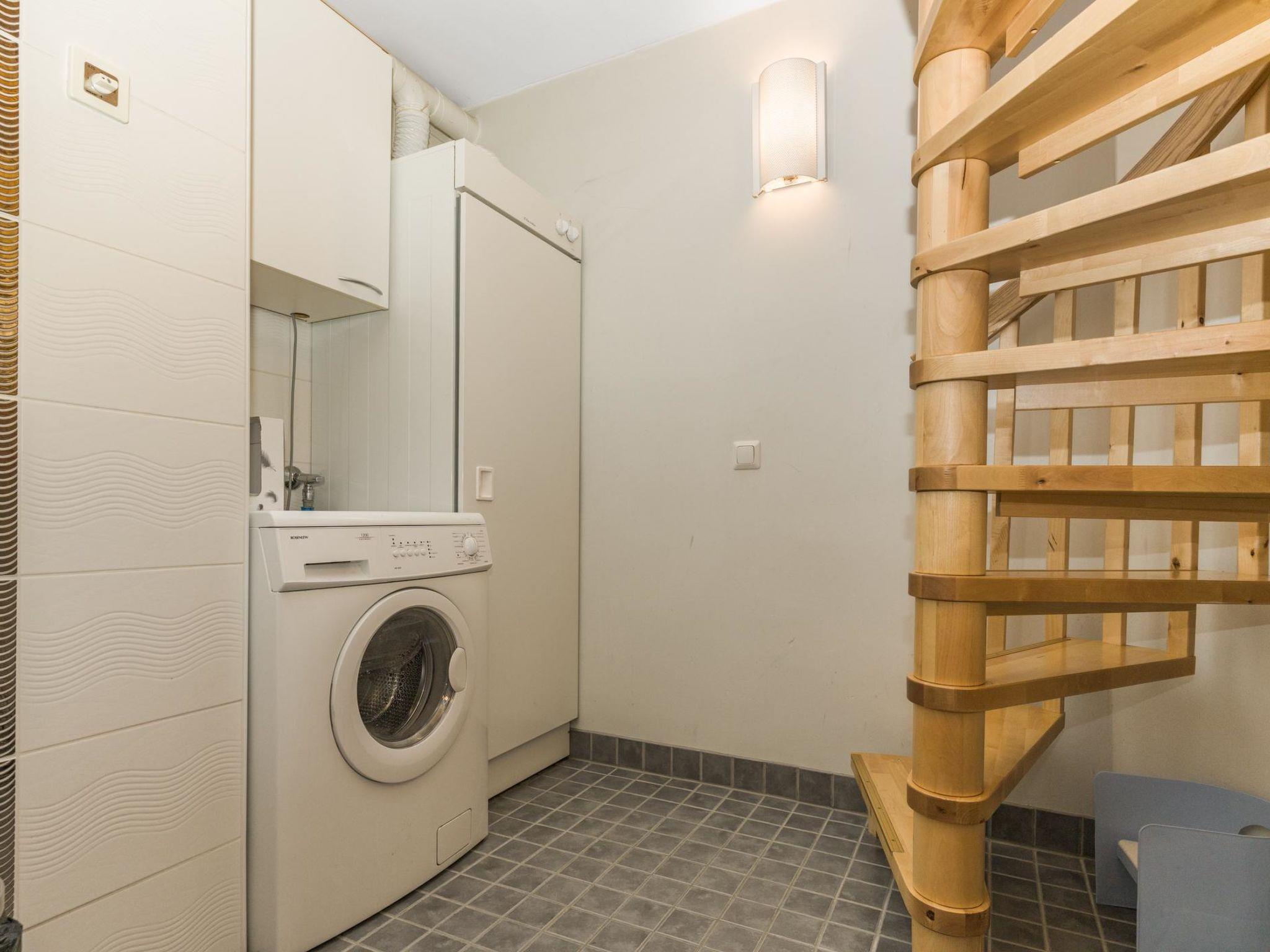 25 km north of Kuusamo, Vuosseli (Eastern Ruka) 300 m. Apartment in three-storey log-built row house of three apartments (end-of-house apartment) built in 2005, bedrooms 1-4: 2 spring mattress beds, loft: 4 spring mattress beds, steep and narrow spiral stairs, bathroom downstairs, combined kitchen/living room, electric sauna. Area 98 m², loft 21 m² (loft 160 cm, partly 210 cm high).