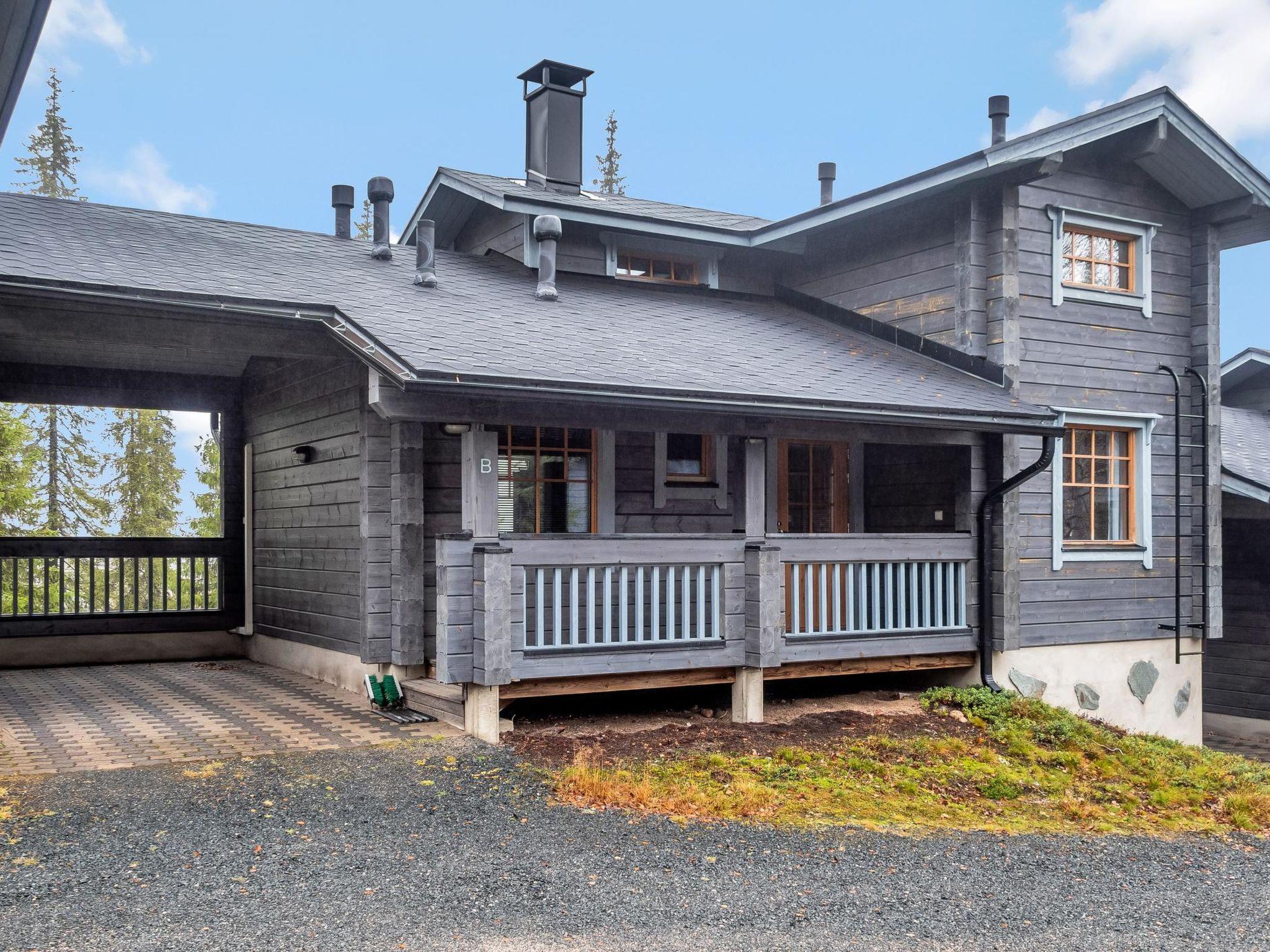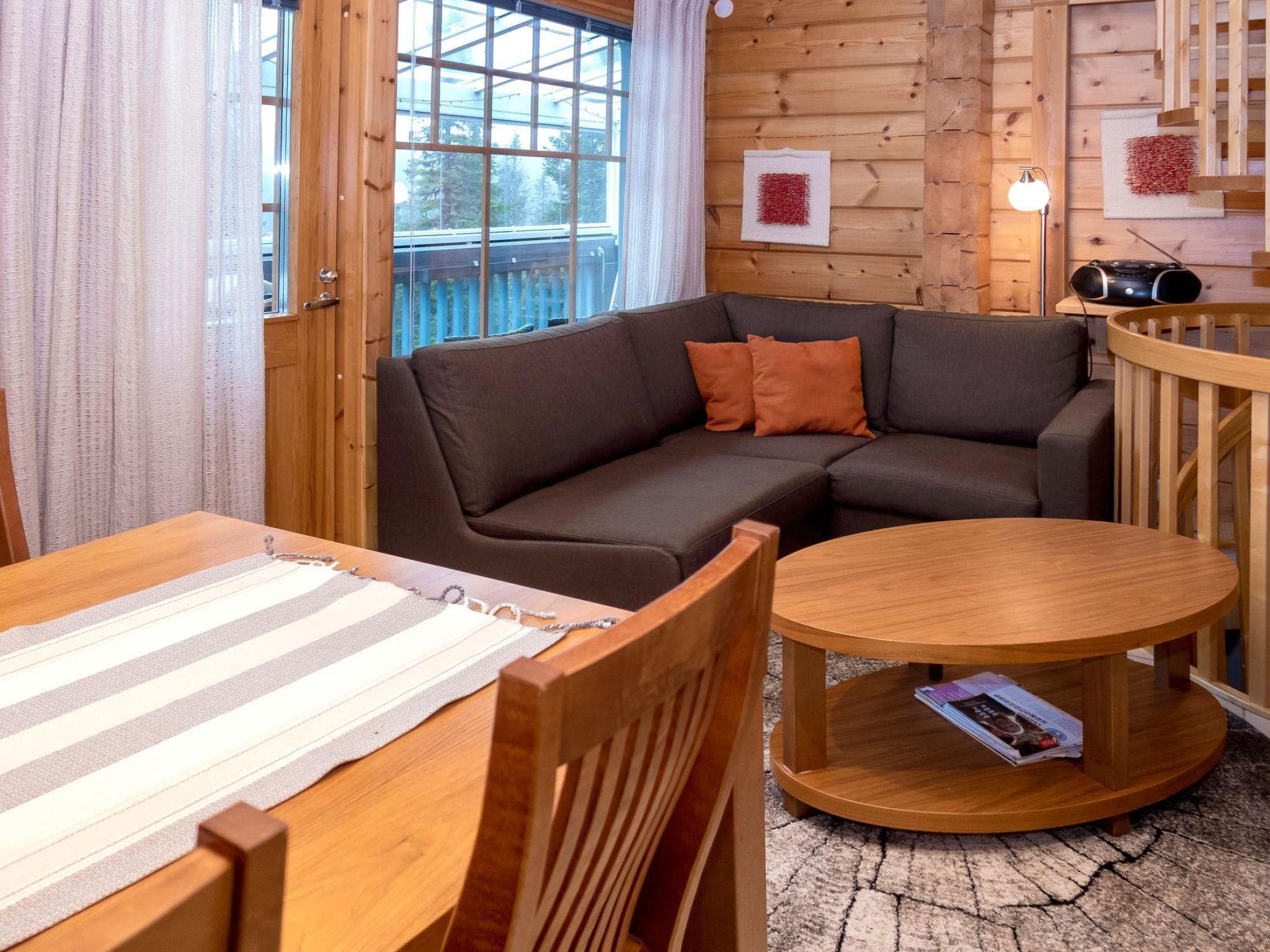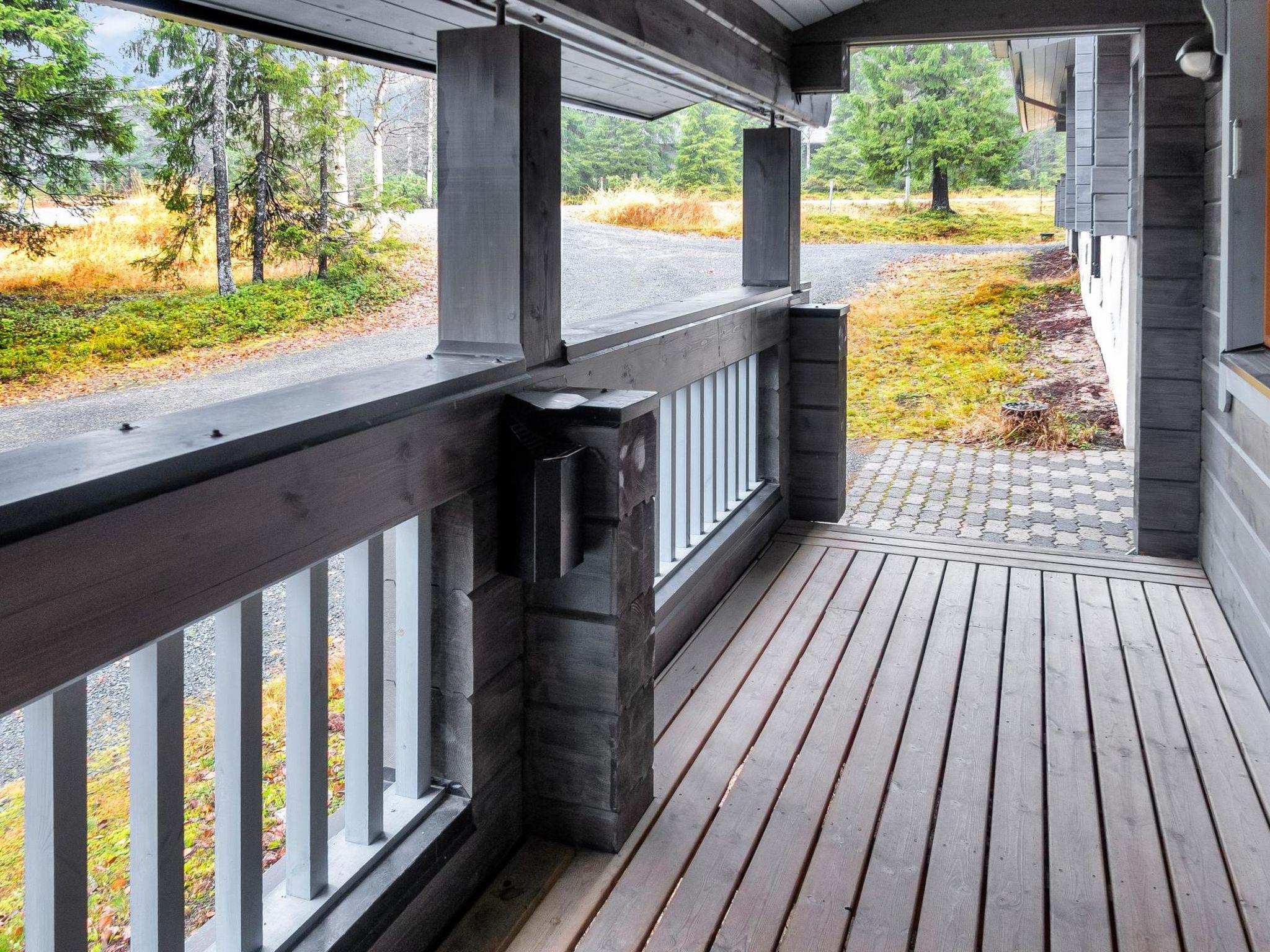 25 km north of Kuusamo, Vuosseli (Eastern Ruka) 300 m. Apartment in three-storey log-built row house of three apartments, built in 2005, bedrooms 1-2: 2 beds, loft (14 m², 160 cm high, partly 190 cm high): 2 spring mattress beds, steep and narrow spiral stairs, bathroom downstairs. Combined kitchen/living room. Electric sauna.