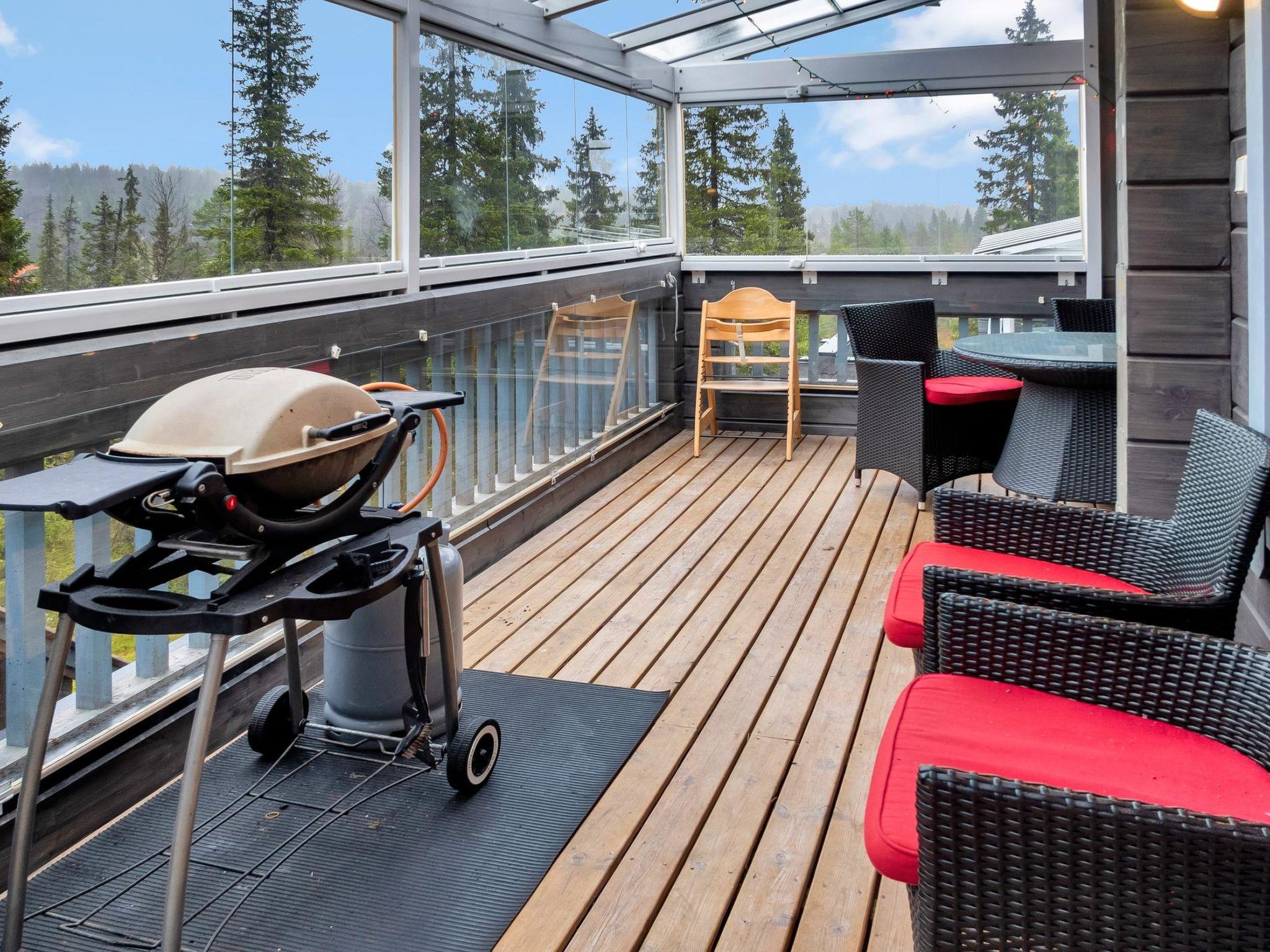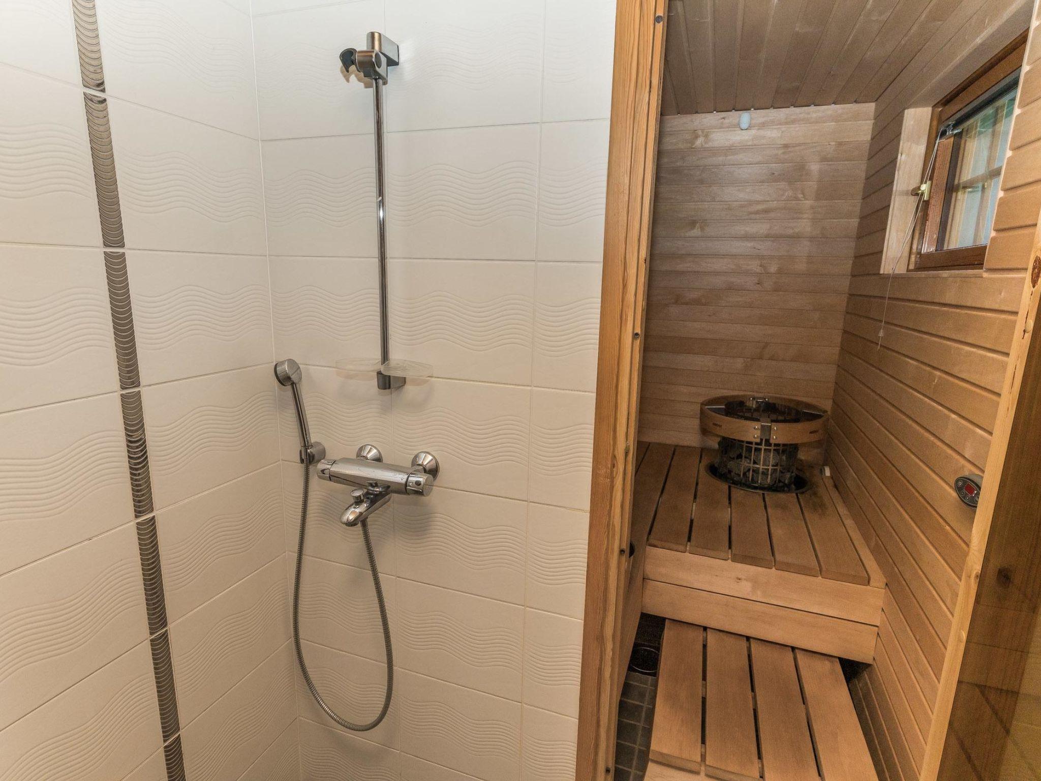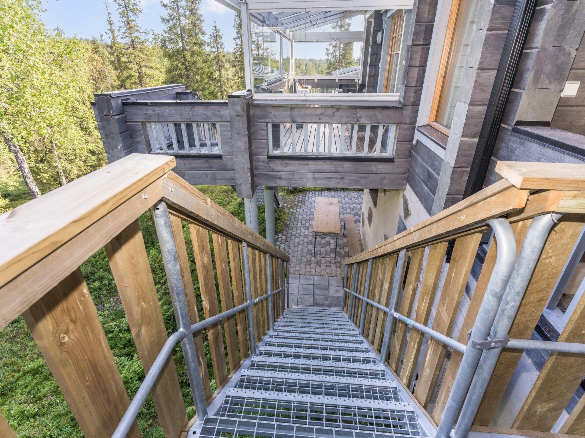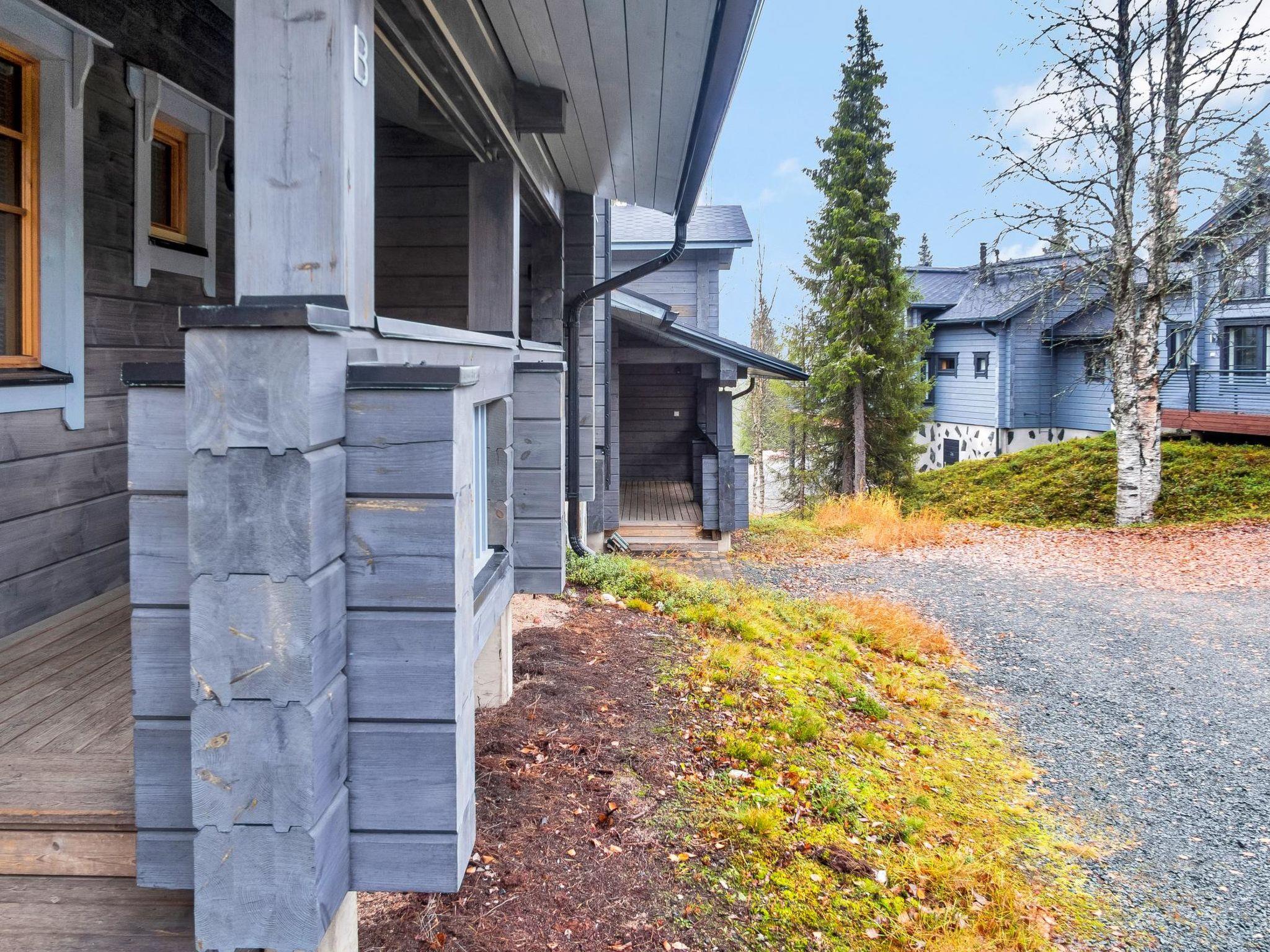 25 km north of Kuusamo, Vuosseli (Eastern Ruka) 300 m. Apartment in three-storey log-built row house of three apartments, built in 2005, bedrooms 1-2: 2 beds, loft (14 m², 160 cm high, partly 190 cm high): 2 spring mattress beds, steep and narrow spiral stairs, bathroom downstairs. Combined kitchen/living room. Electric sauna.