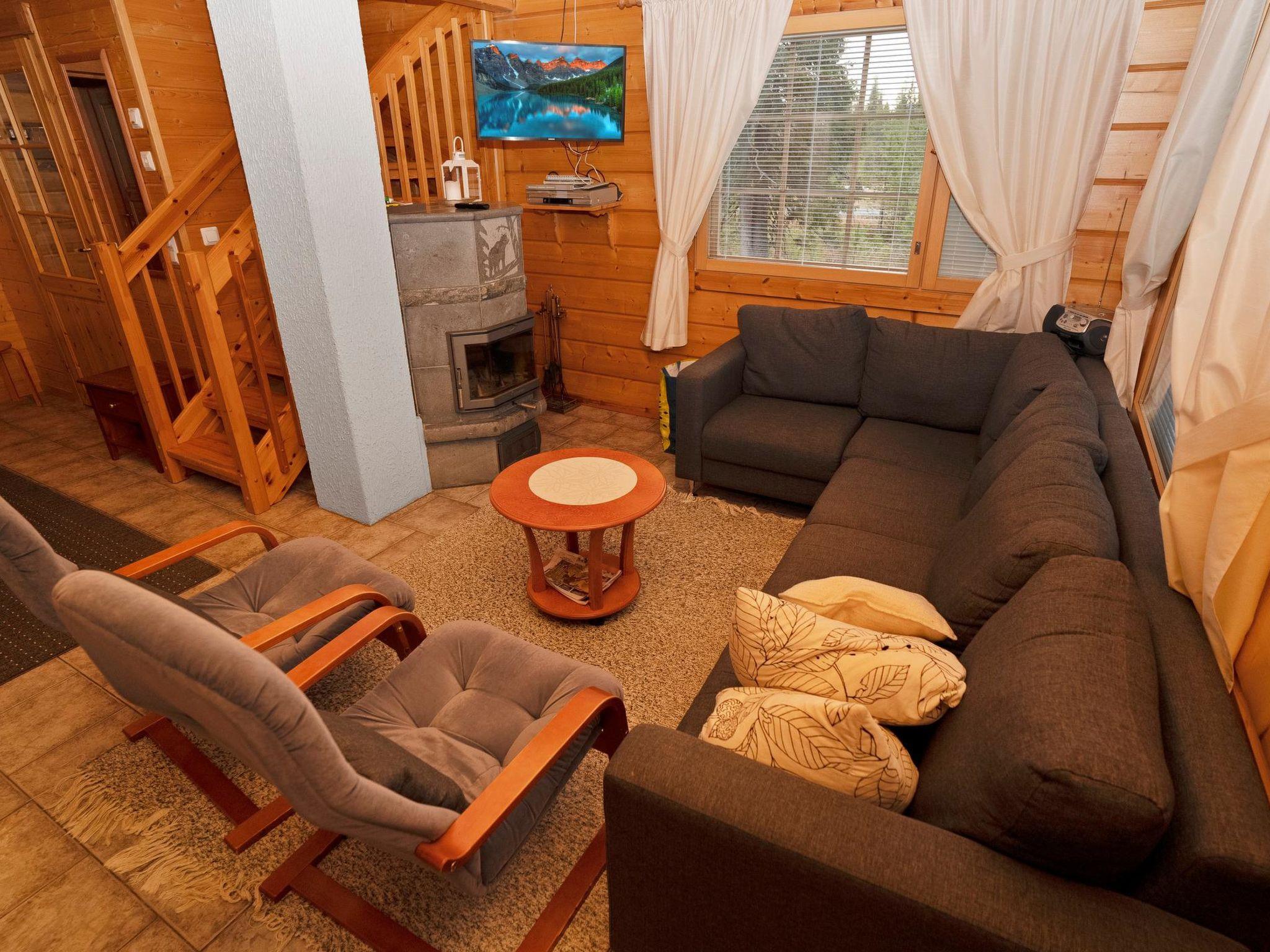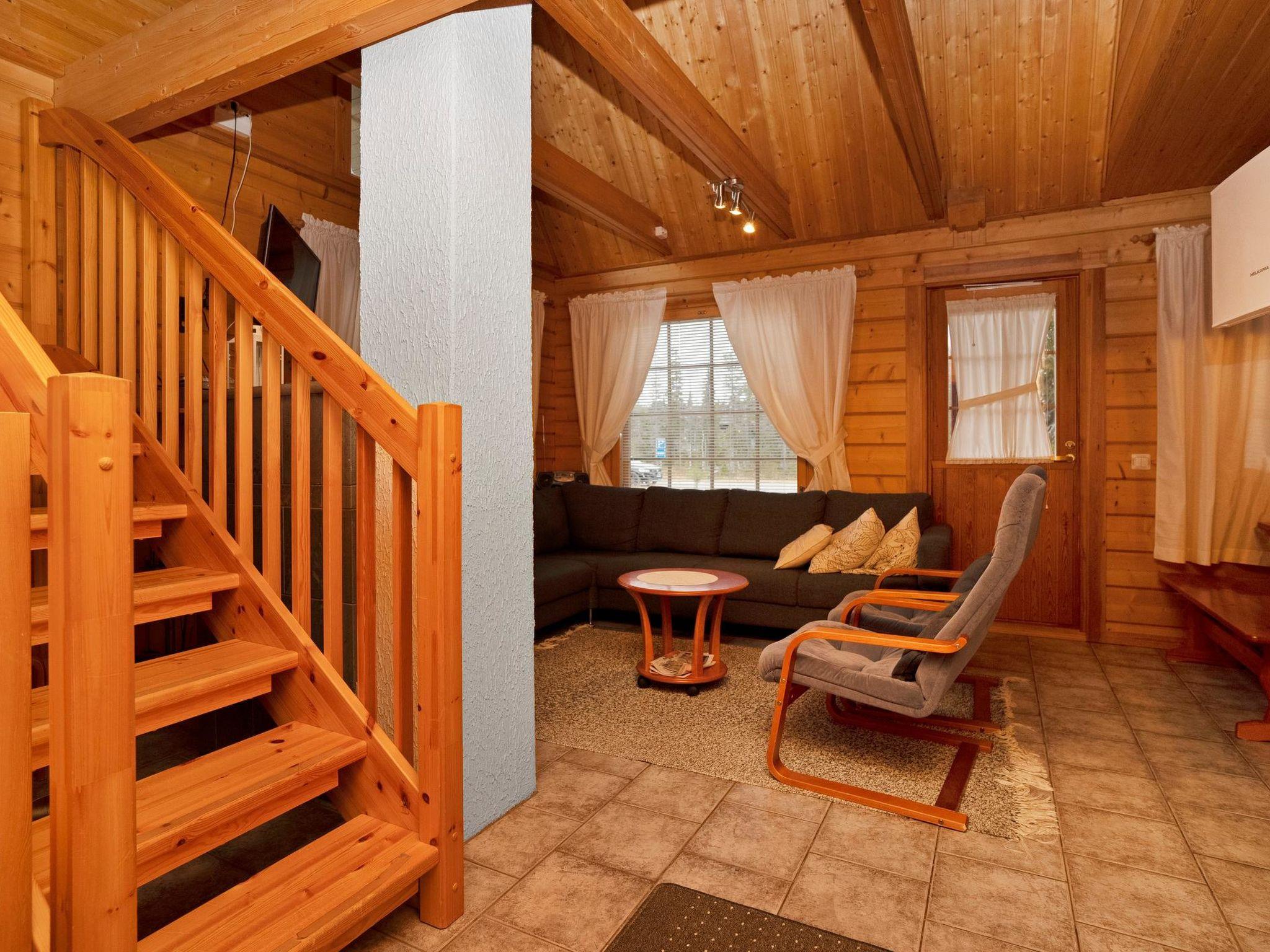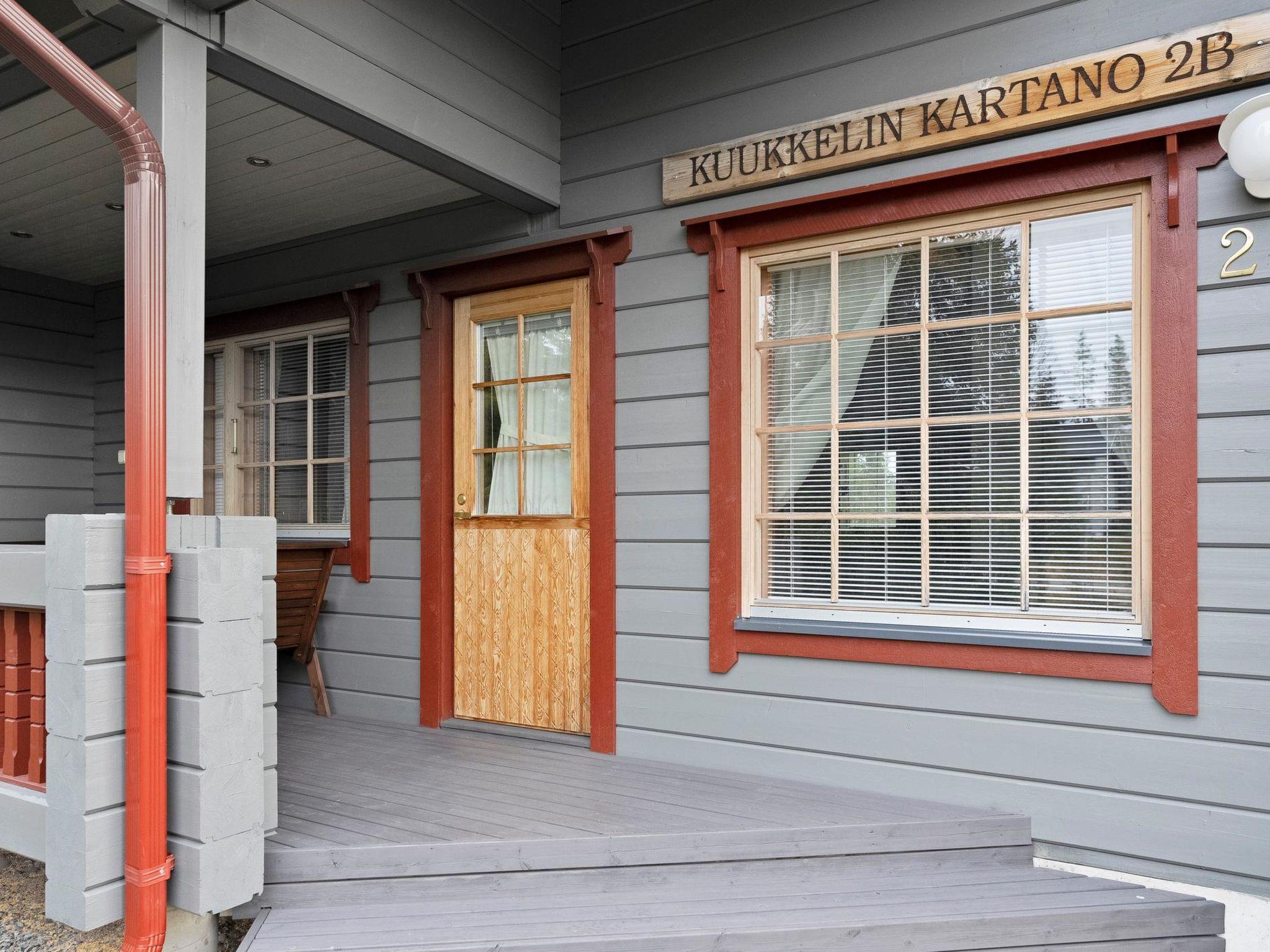 25 km north of Kuusamo, Vuosseli (Eastern Ruka) 1.5 km. Apartment in log-built semi-detached house, built in 2005, downstairs bedroom 1: double bed, bedroom 2: 2 beds, upstairs bedrooms 3-4: 2 beds in each, hall: convertible sofa for two, gentle stairs to upstairs, combined kitchen/living room, electric sauna.