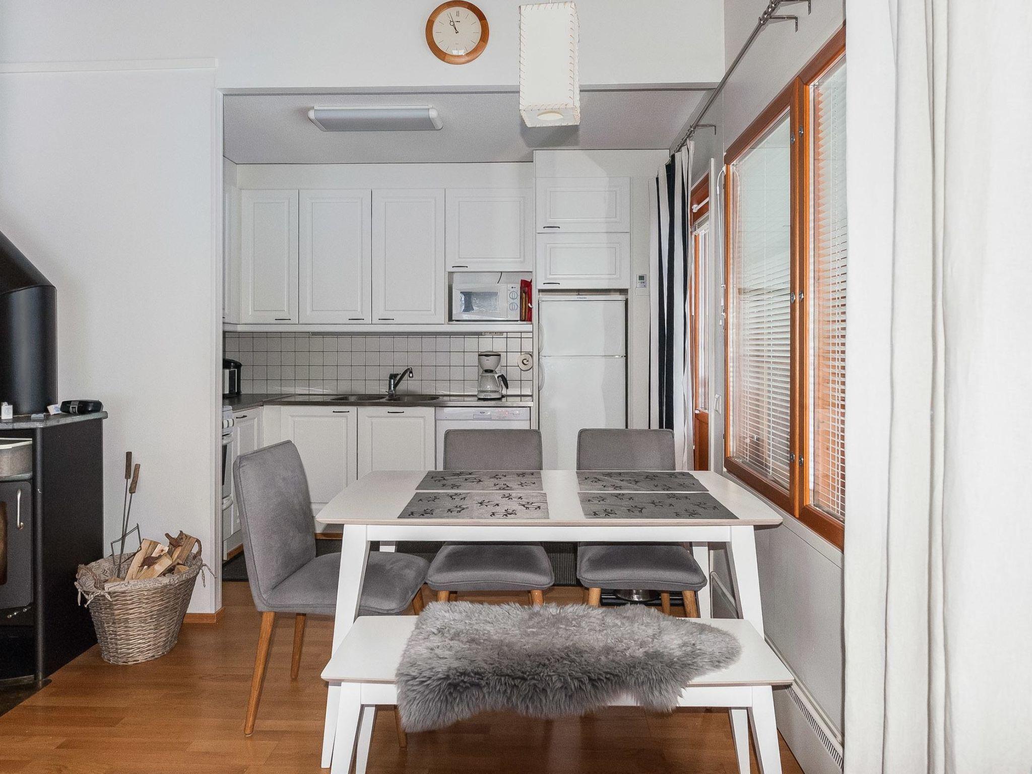 29 km north of Kuusamo, Ruka village (Western Ruka) 150m. Holiday apartment, built in 2002, combined kitchen/living room, bedroom (downstairs): double bed 160 cm, bedroom (upstairs, no door, but child safety gate):2 separate beds 80 cm, living room: sofa (extrabed for 2), electric sauna.
