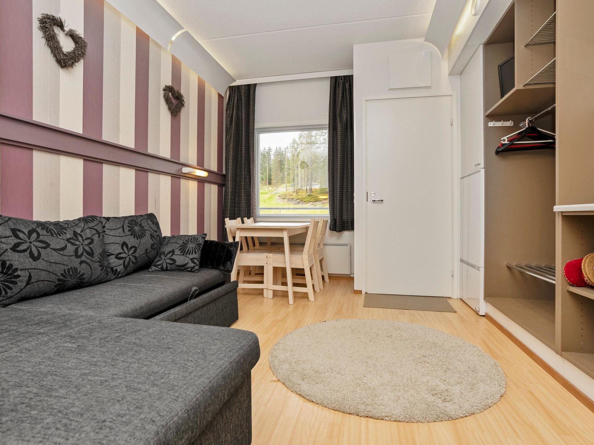 25 km north of Kuusamo, Vuosseli (Eastern Ruka) 10 m. Renovated upstairs apartment in former Hotel Omena, built in 2001, renovated in 2007 and 2017, sleeping alcove: double bed for 2, livingroom: sofabed, combined kitchen/livingroom. No sauna.