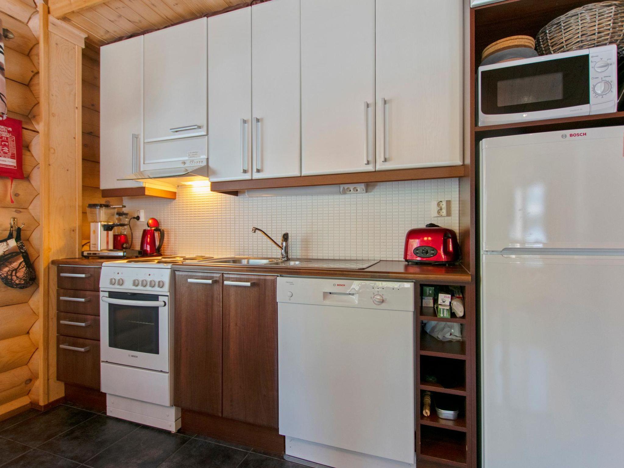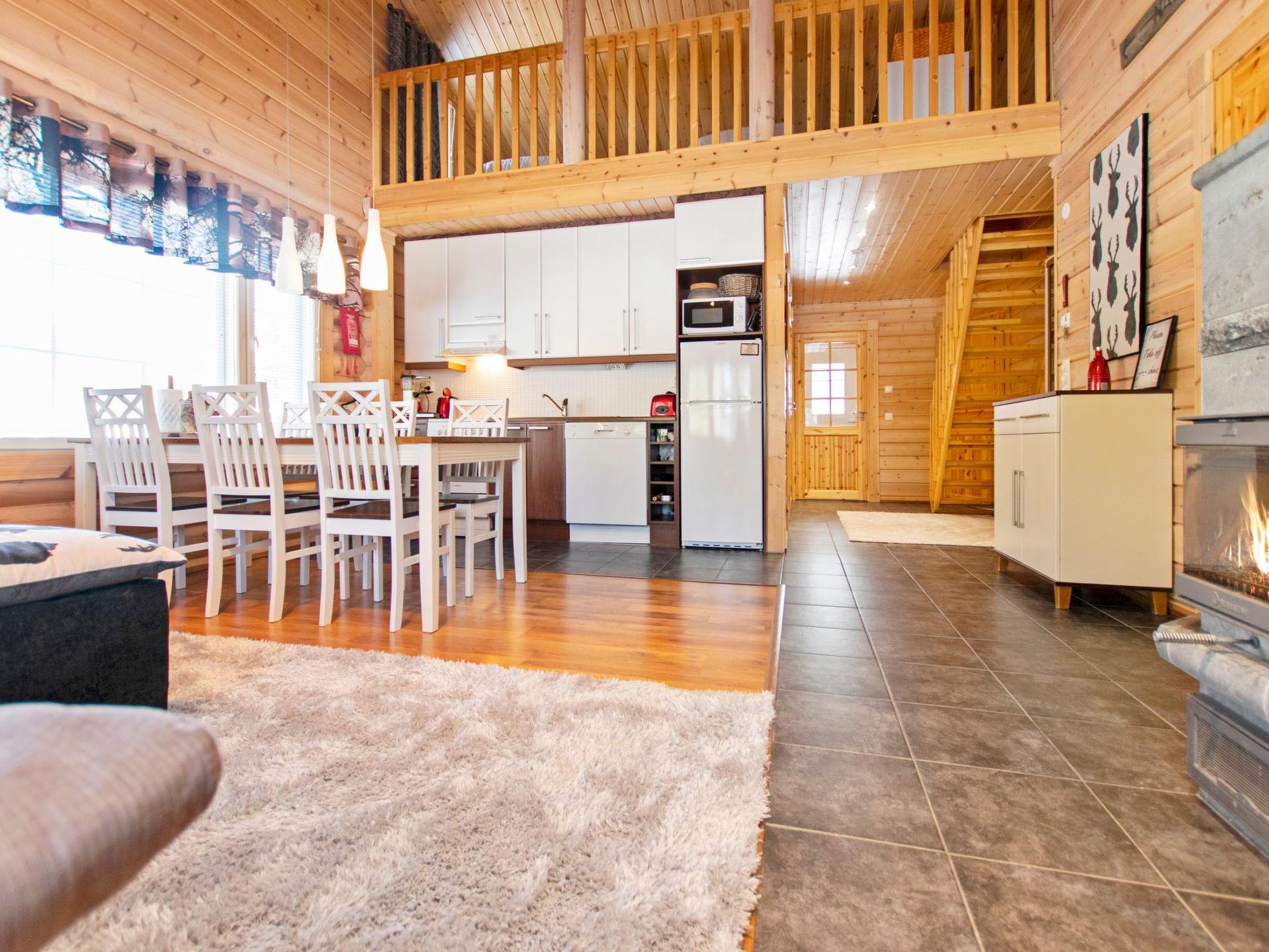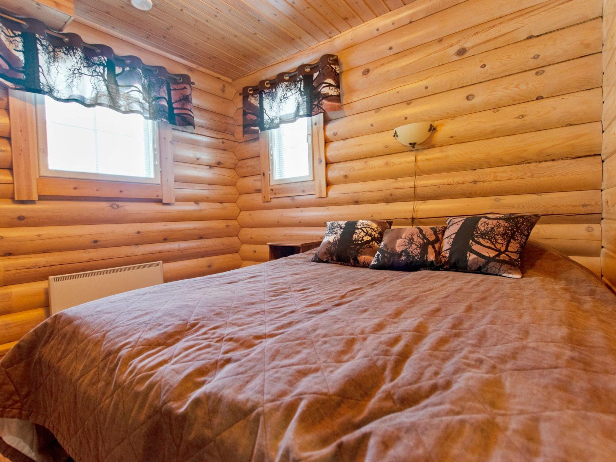 23 km north of Kuusamo, Ruka Village (Western Ruka) 3 km, 500 m to lake Kesäjärvi, a semi-detached cabin built of round logs in 2008, combined kitchen-living room, bedroom 1: with bed (160x200cm), bedroom 2: one bed 160 x 200cm and loft has 2 beds (80x200cm), electric sauna, a covered terrace 7 m², 2 toilets.