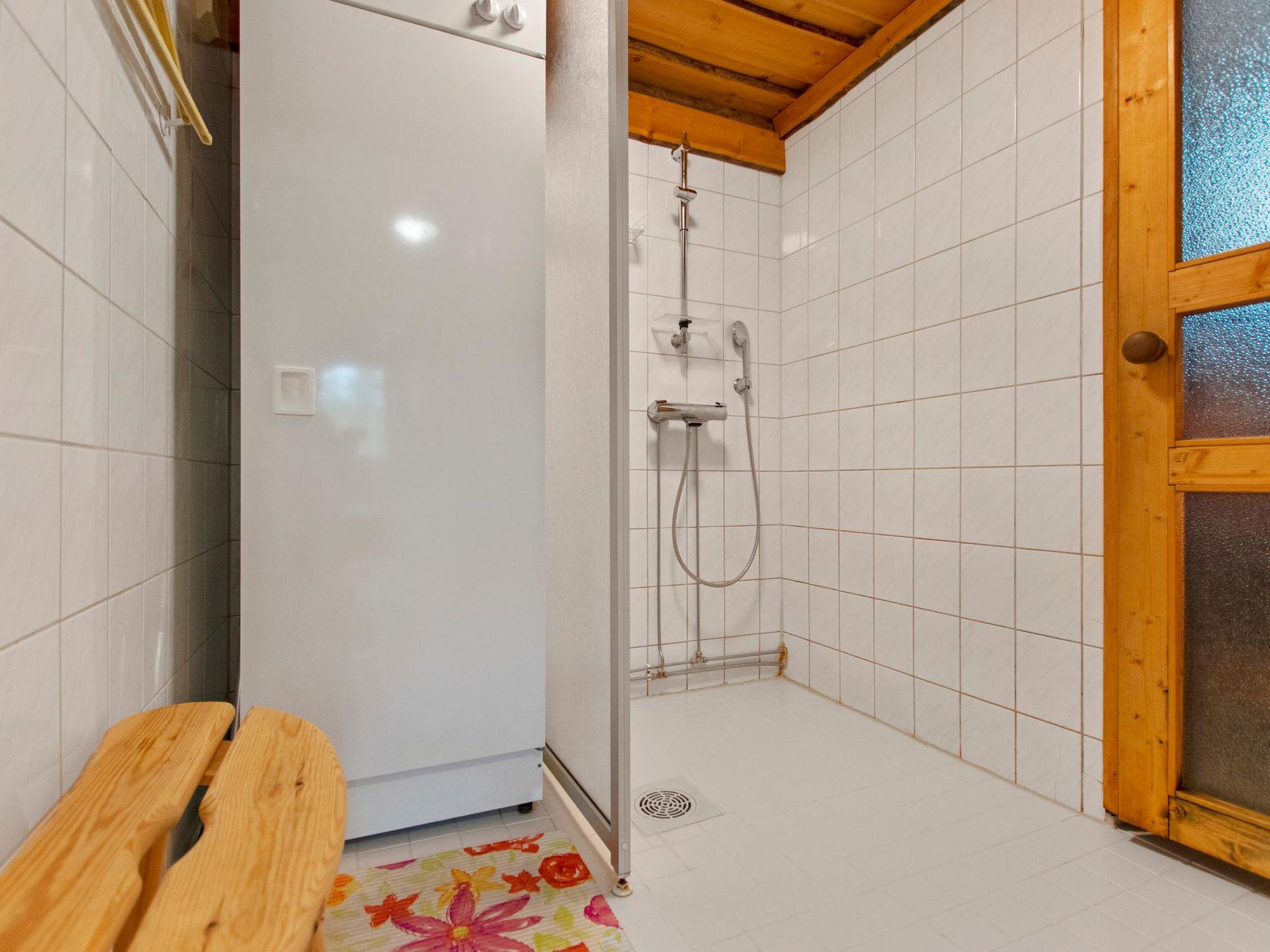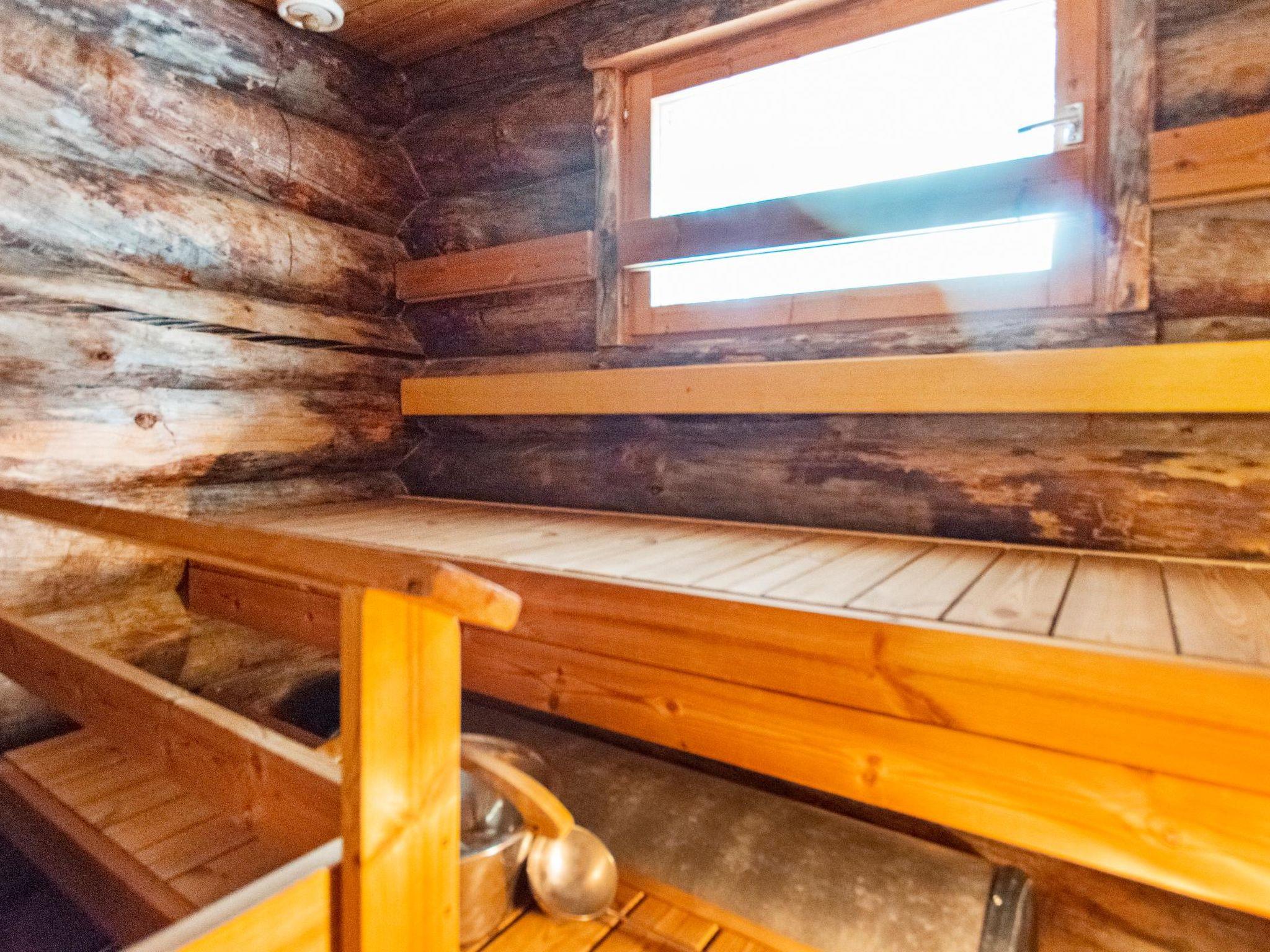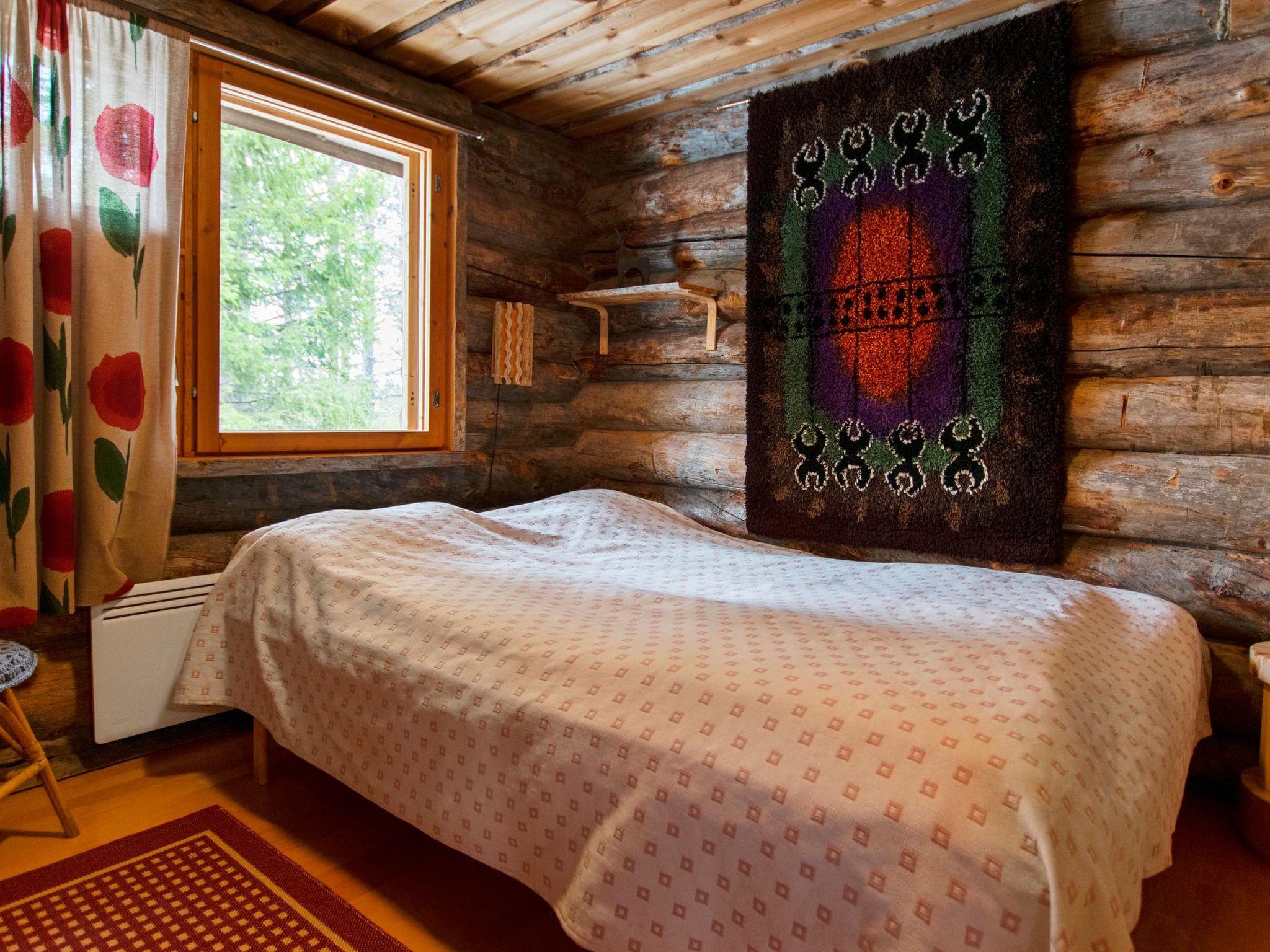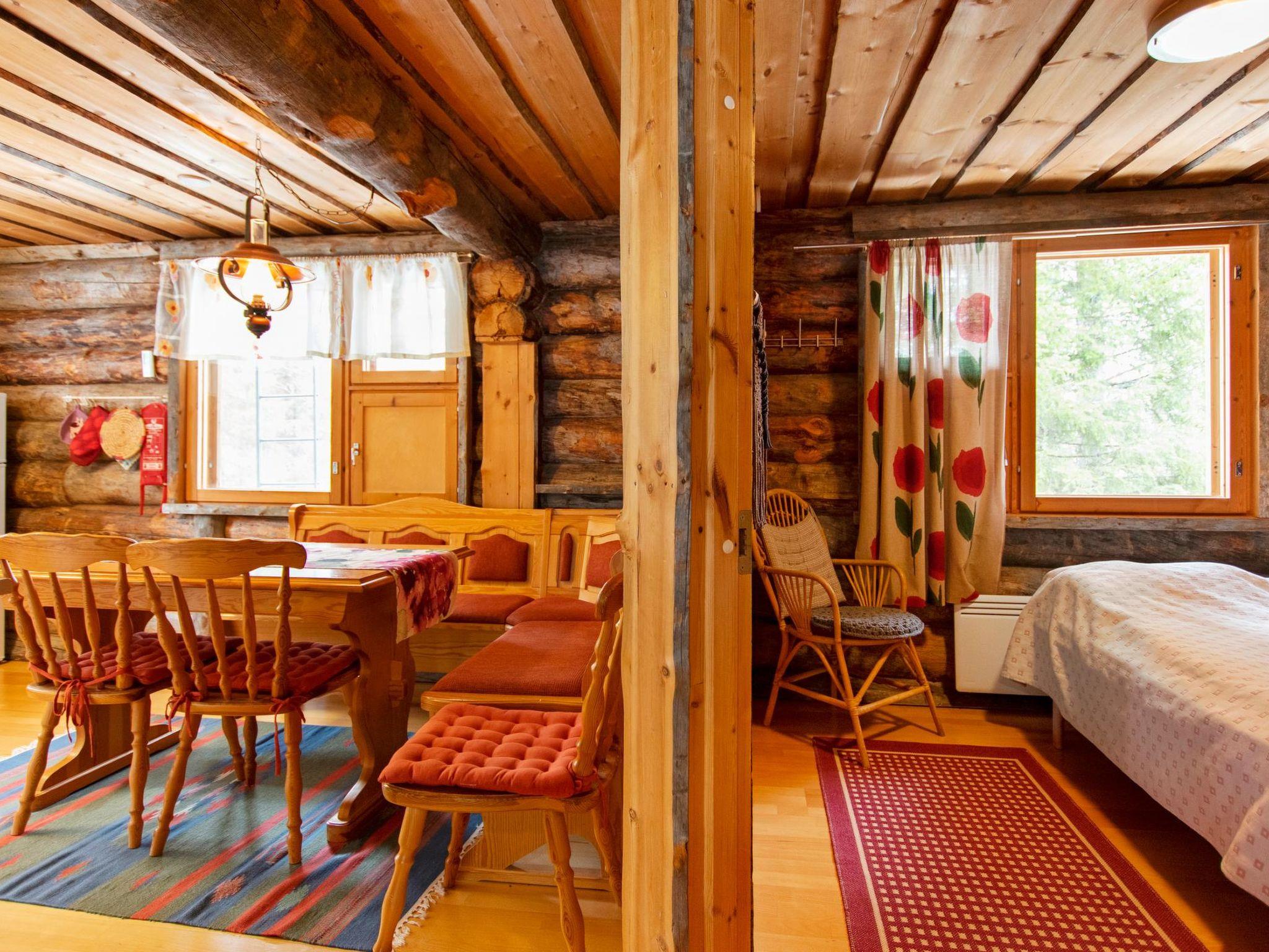 24 km north of Kuusamo, Ruka 4 km, Veskanen 50 m. Apartment in kelolog-built semi-detached house, built in 1989, bedroom: double bed, loft (10 m²): 2 beds and 2 mattresses (steep stairs to the loft, highest point 2 m), combined kitchen/living room, electric sauna.