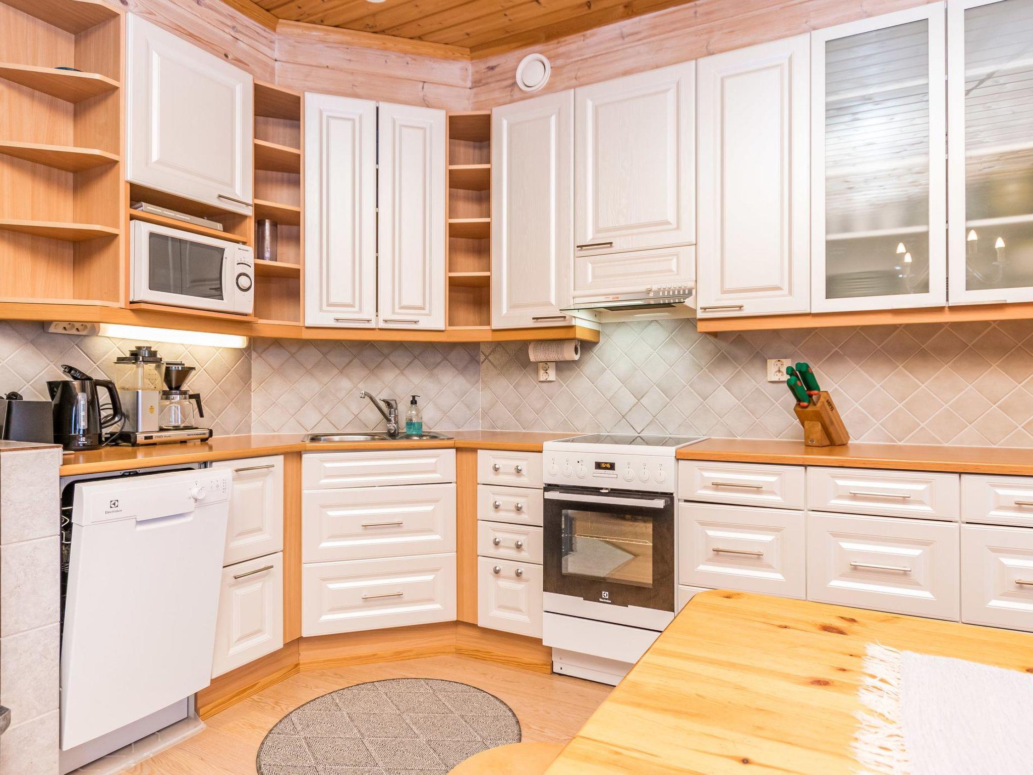 A semi-detached house built with love in 2002. Master bedroom with double bed downstairs. Bedrooms 2 and 3 upstairs, each with two beds. There is a bed in the upstairs hall and an additional sofabed/mattress. The room height upstairs is partly lower than normal. Open kitchen, living room, pantry, washroom, two toilets, electric sauna. Note: the refrigerator includes a freezer compartment.