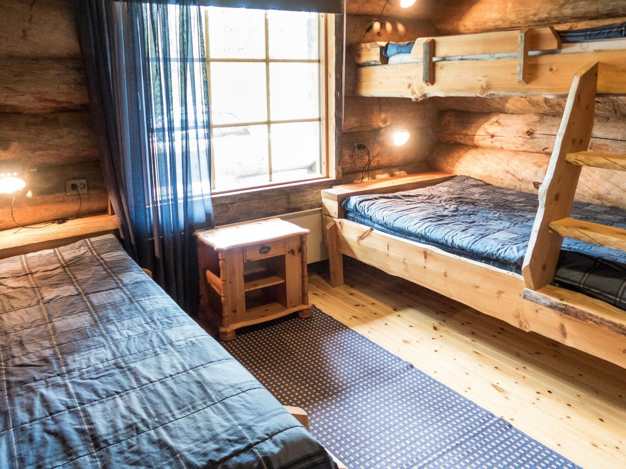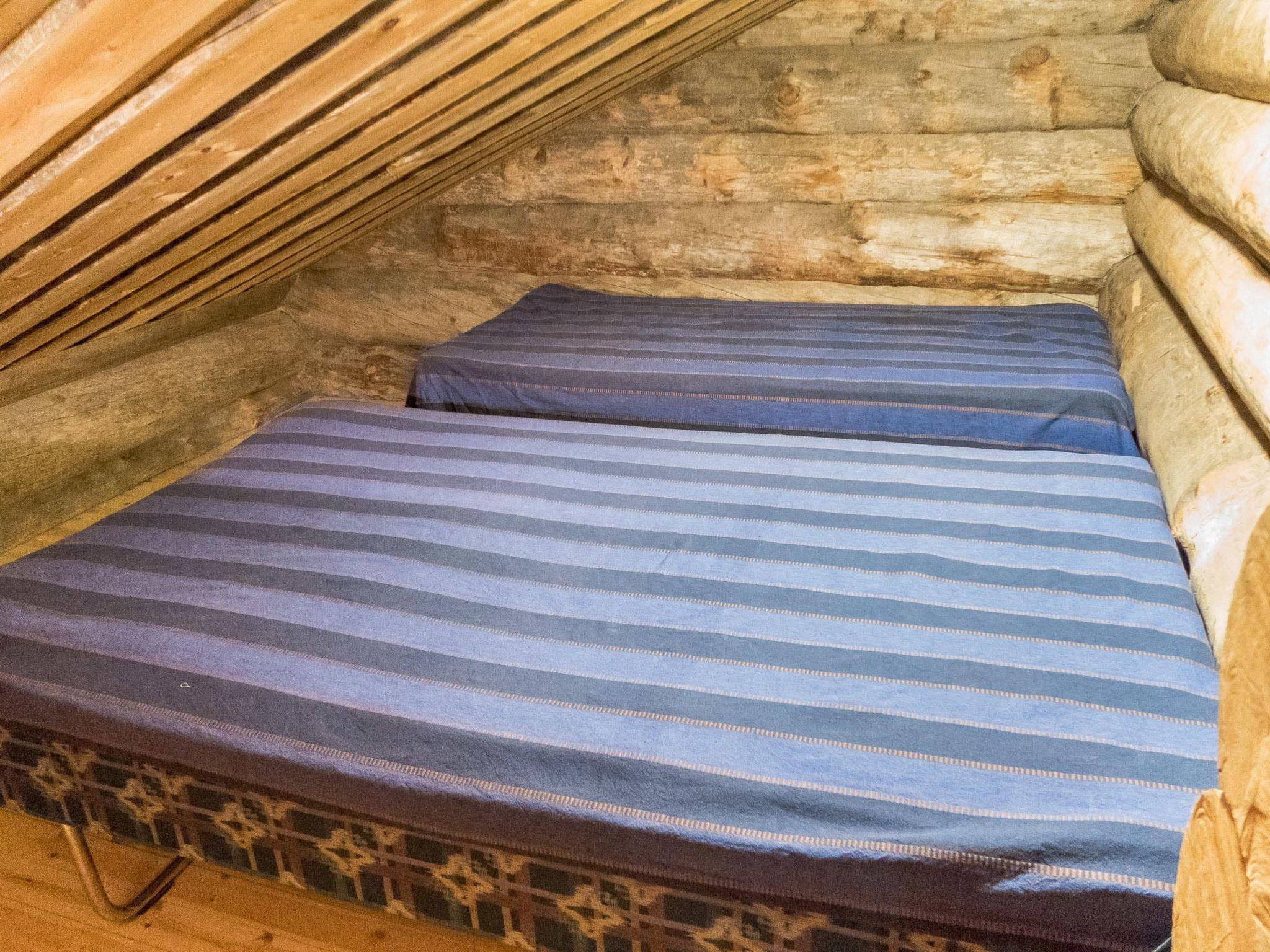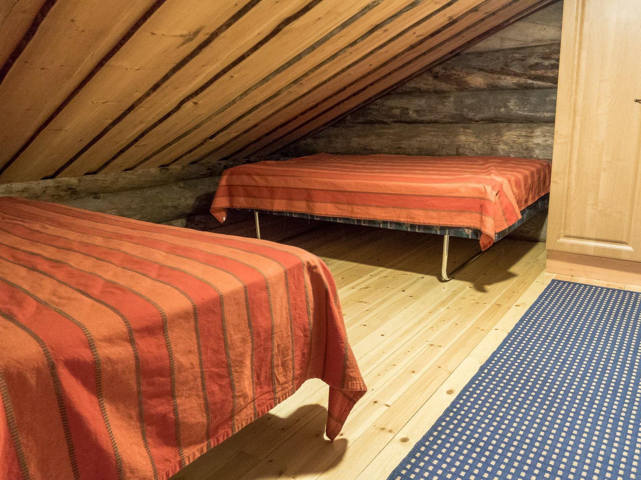 23km north of Kuusamo, Ruka 6km, Lake Iso-Veskajärvi 40 m, stony/mudy beach in natural condition. 2-storey log cottage, built in 2003. Downstairs there are 3 bedrooms, combined living room/kitchen, sauna, shower and toilet. Upstairs there are 1 bedroom and 5 small bedrooms and toilet.