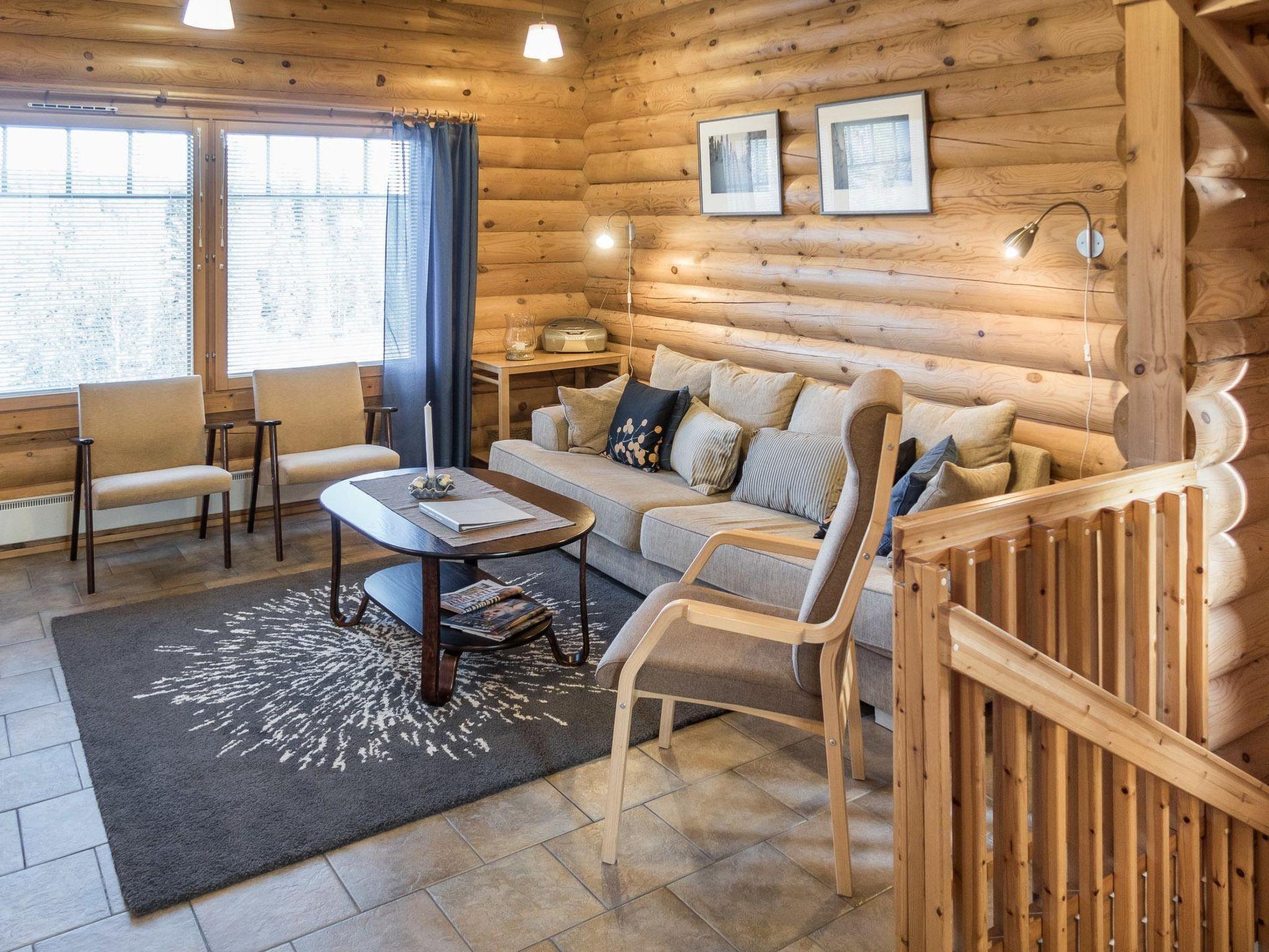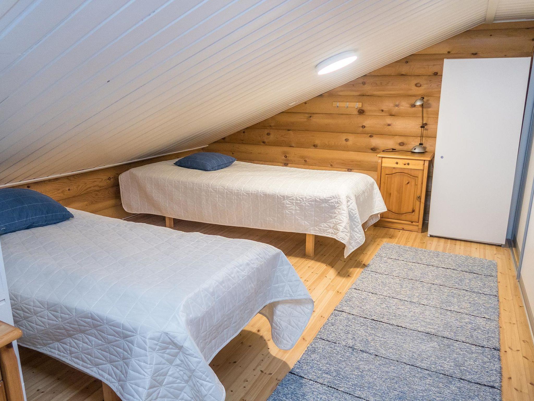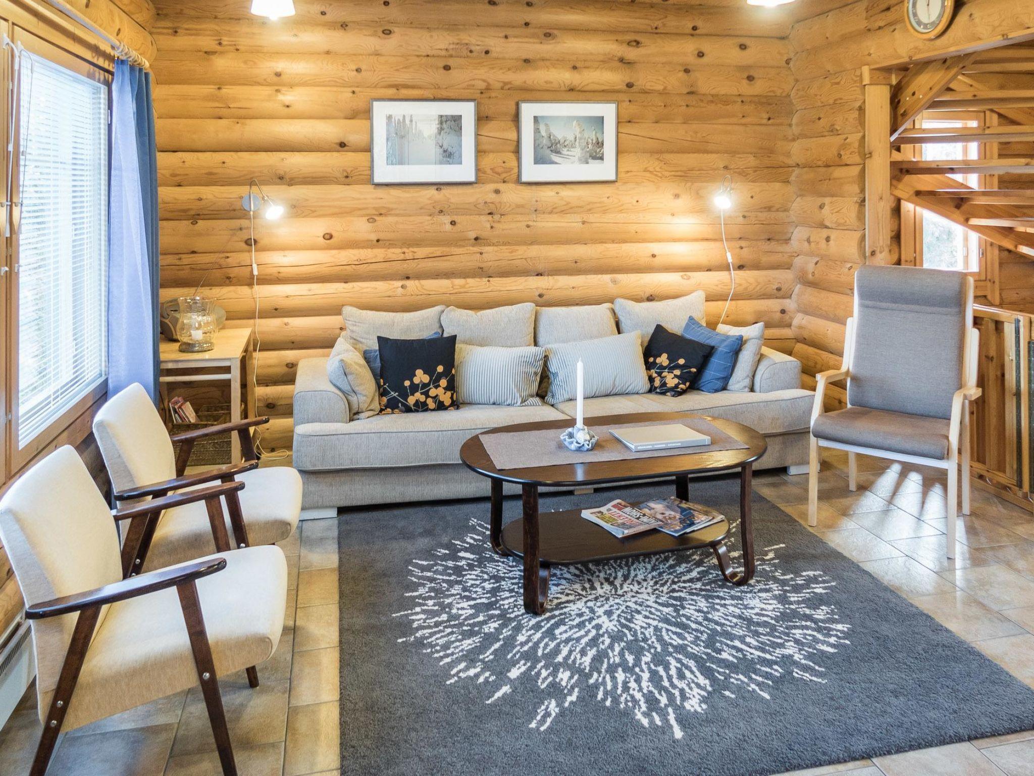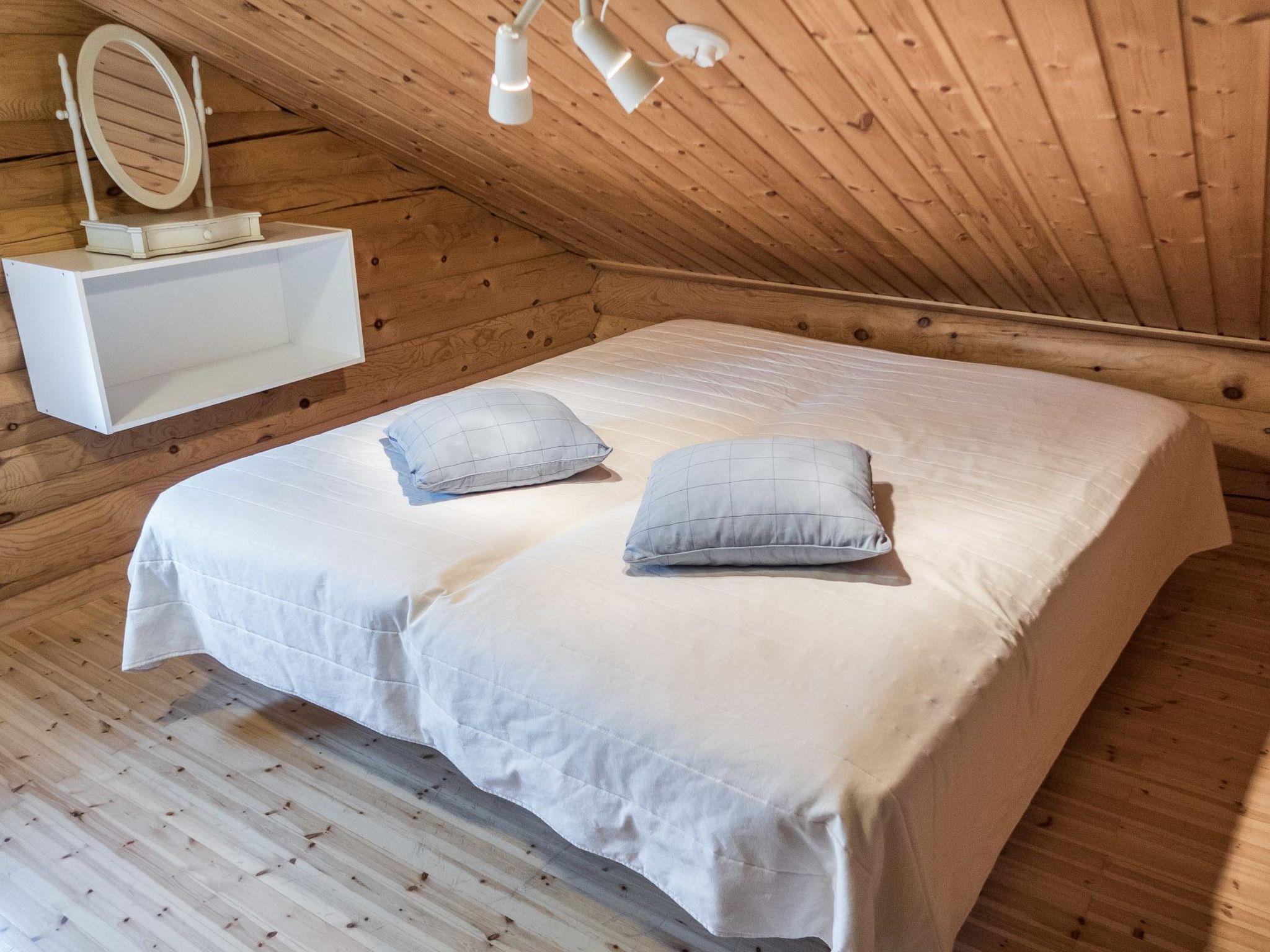 25 km north of Kuusamo, Vuosseli (Eastern Ruka) 500 m. Two-storey log house, additionally loft, built in 2002, area 114 m² + loft 24 m². Bedroom: 2 beds, alcove: 1 bed (120cm), alcove (folding door) on the loft: 2 beds, loft: 2 beds, living room: sofa, kitchen, electric sauna.