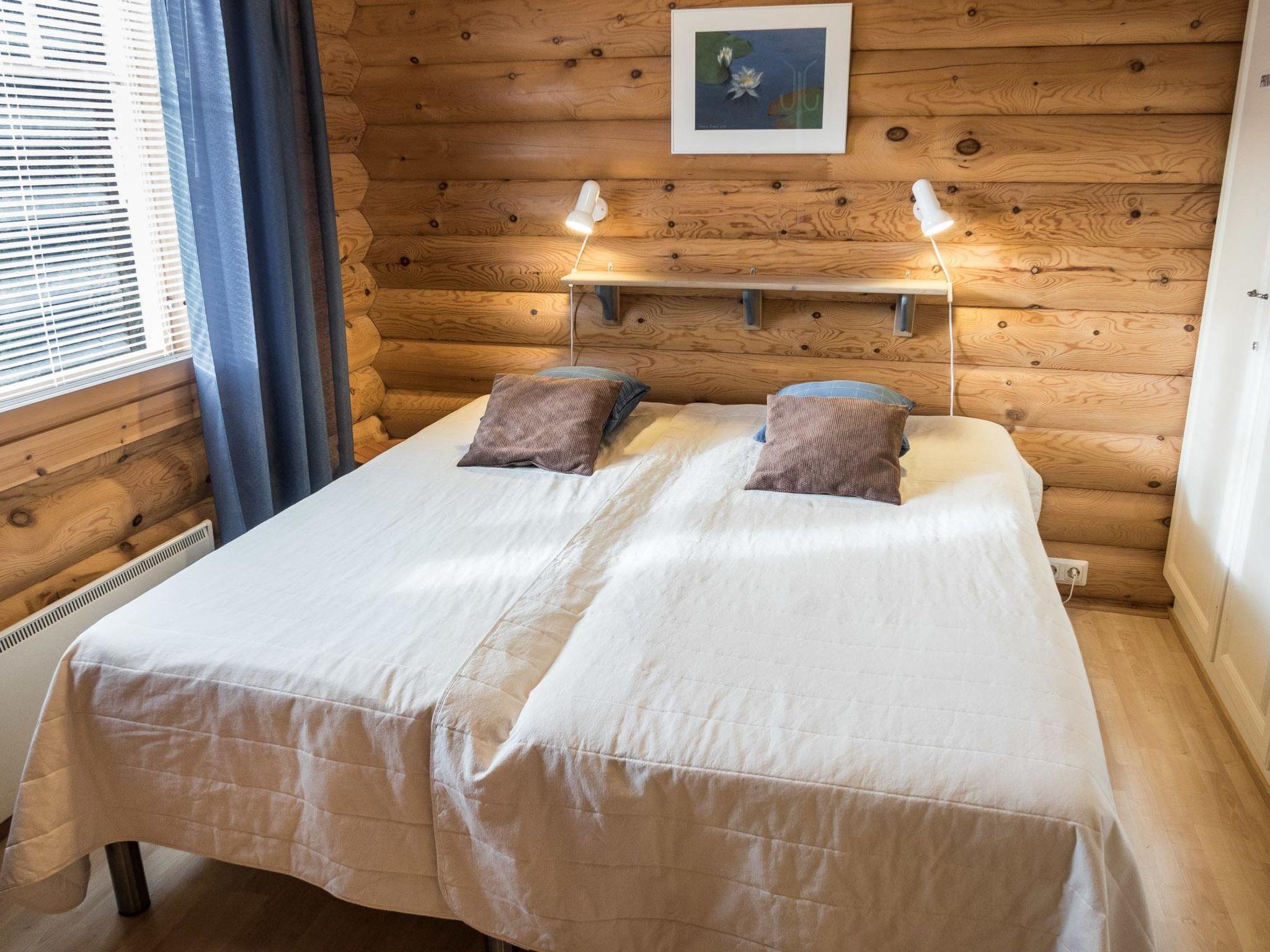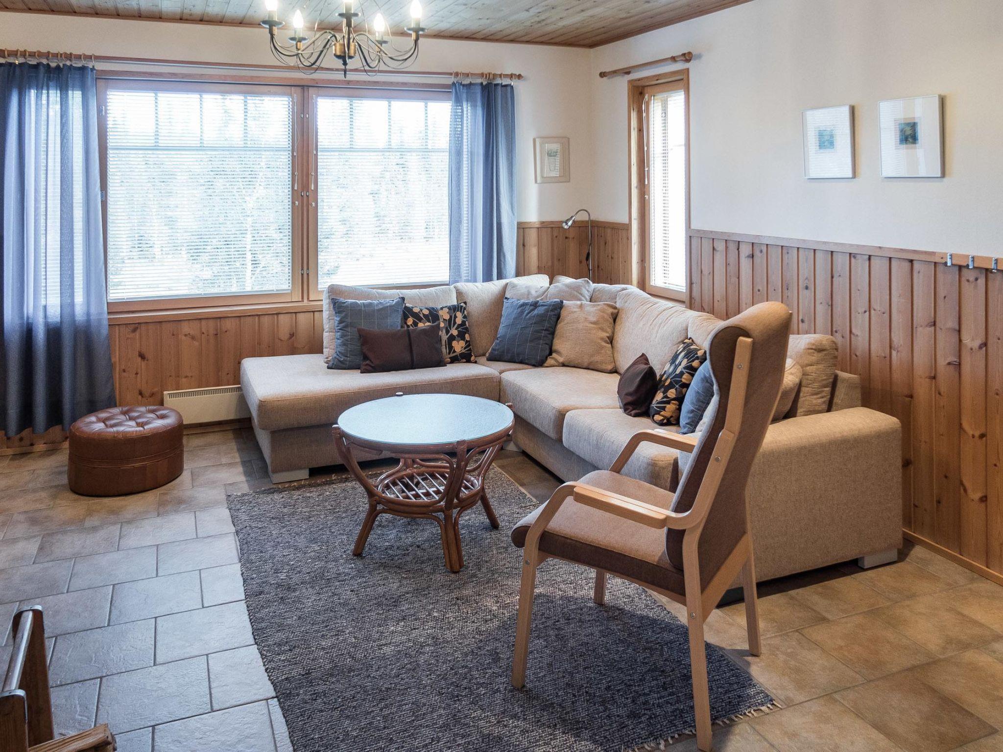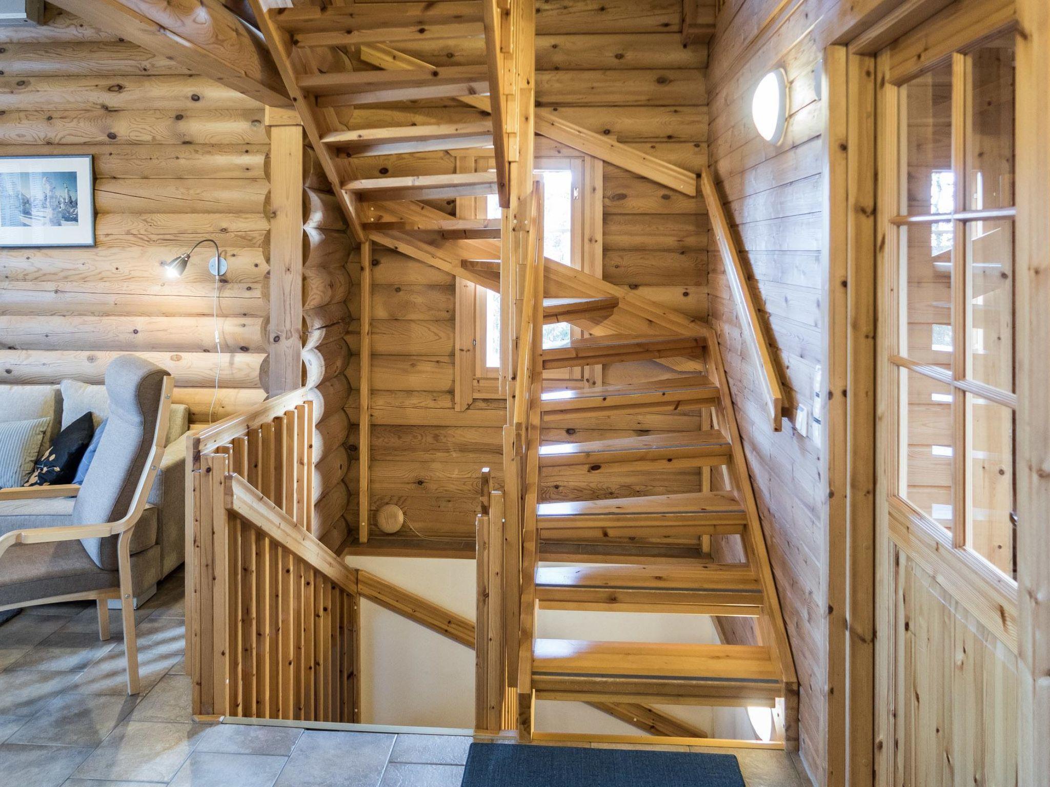 25 km north of Kuusamo, Vuosseli (Eastern Ruka) 500 m. Two-storey log house, additionally loft, built in 2002, area 114 m² + loft 24 m². Bedroom: 2 beds, alcove: 1 bed (120cm), alcove (folding door) on the loft: 2 beds, loft: 2 beds, living room: sofa, kitchen, electric sauna.
