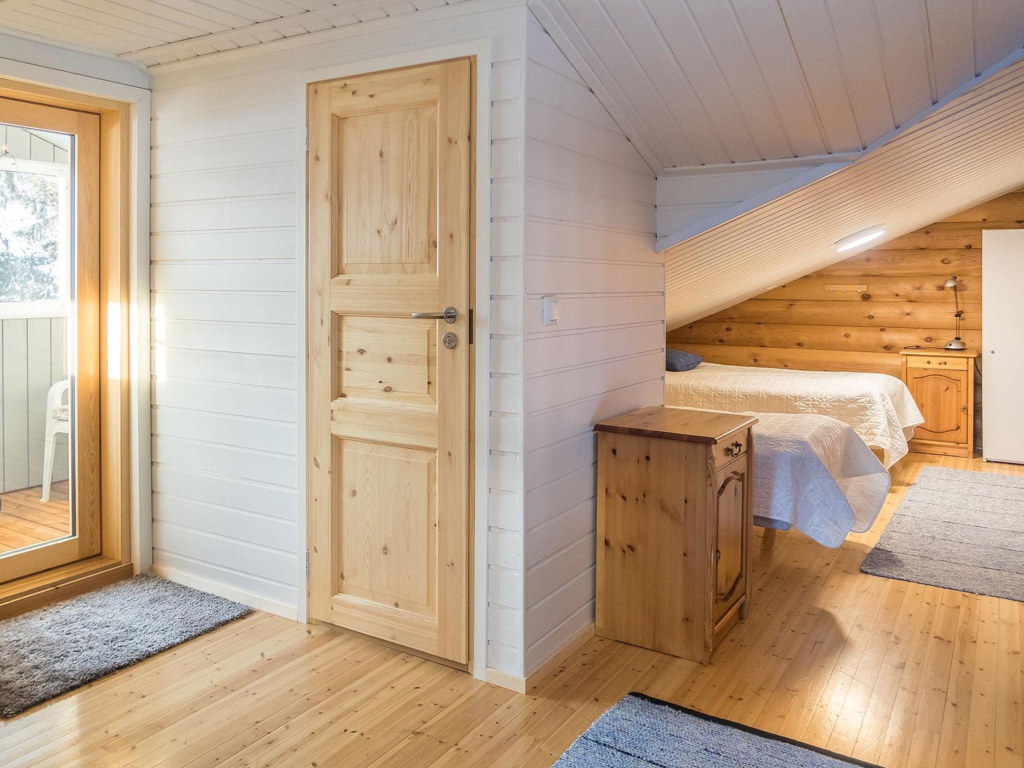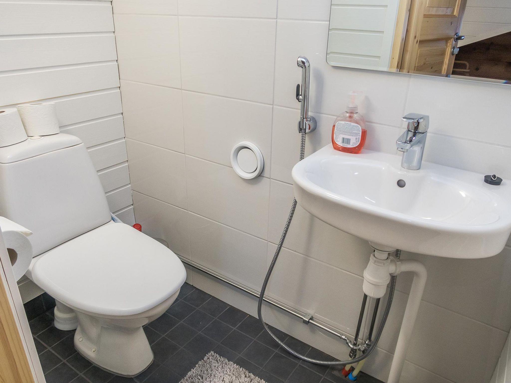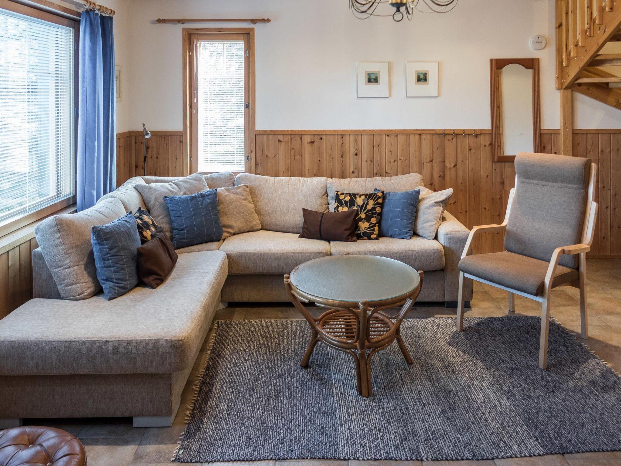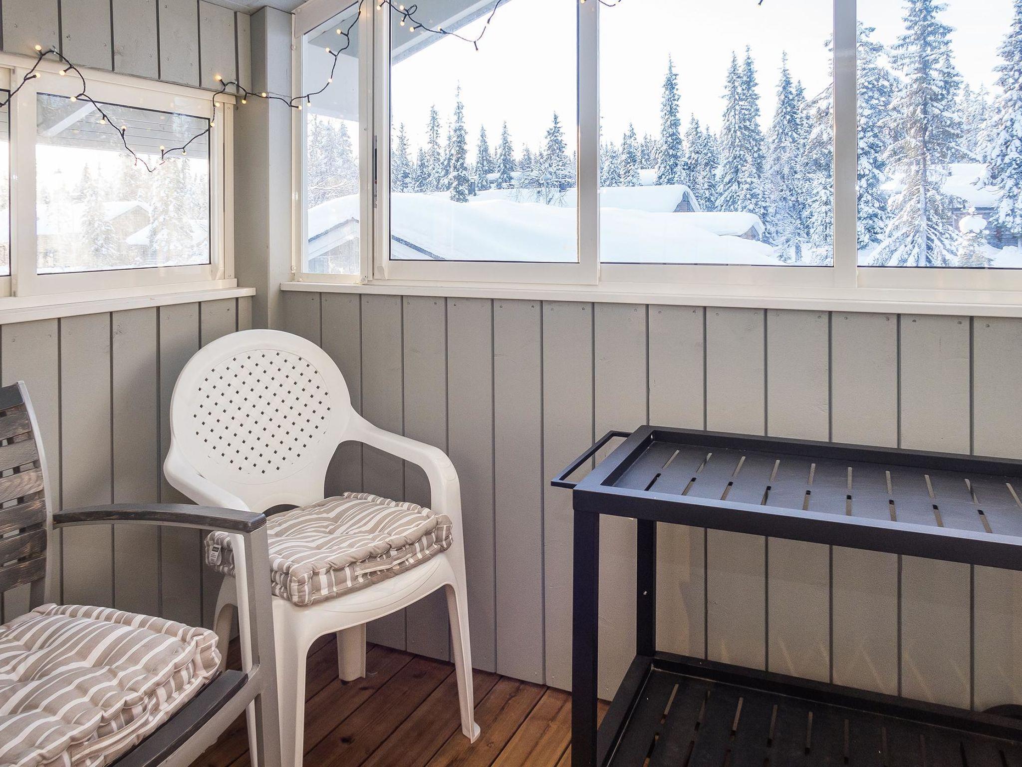 25 km north of Kuusamo, Vuosseli (Eastern Ruka) 500 m. Two-storey log house, additionally loft, built in 2002, area 114 m² + loft 24 m². Bedroom: 2 beds, alcove: 1 bed (120cm), alcove (folding door) on the loft: 2 beds, loft: 2 beds, living room: sofa, kitchen, electric sauna.