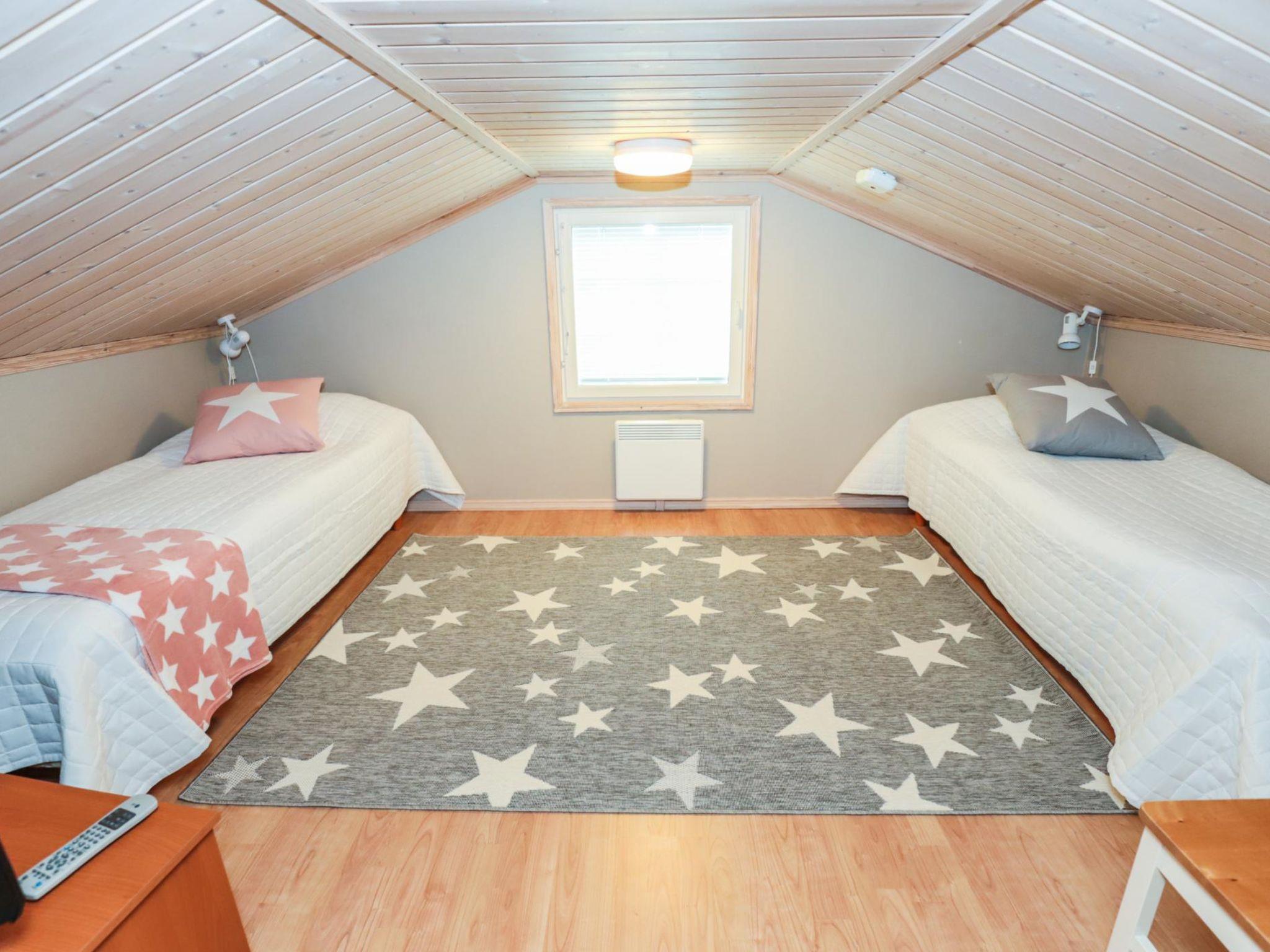 Combined livingroom / Kitchen. Downstairs two bedrooms, both with double beds, 2 lofts both with total of 4 single beds (2 beds /alcove). Loft has sloping ceilings, maximum height 160 cm, floorage 33 m², steep stairs to the loft, child safety gate at the top of the stairs.