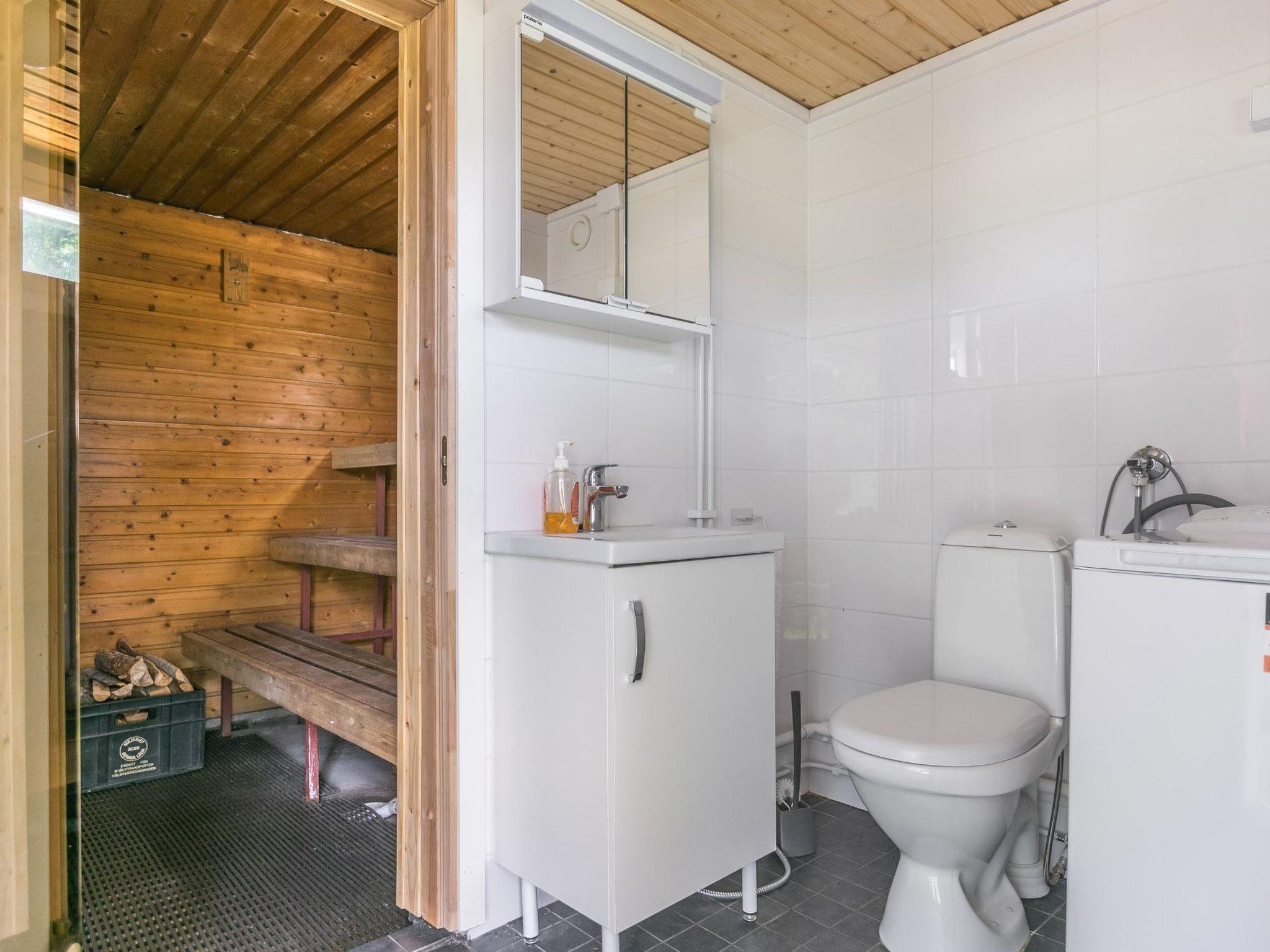 Wc and sauna, accessible via the terrace. A wood-burning stove in the sauna. There is also a washing machine in the toilet.
