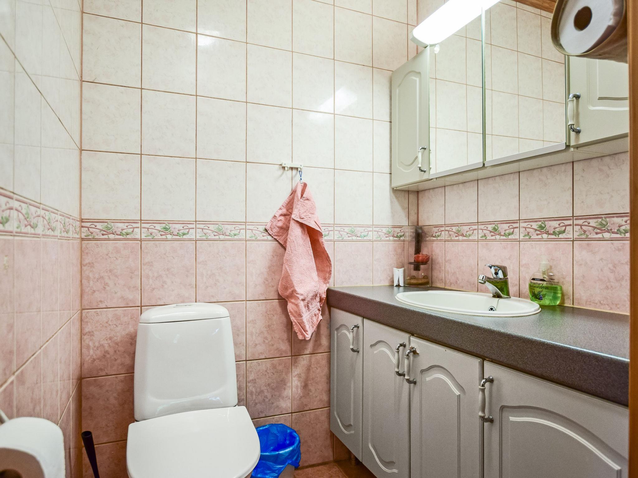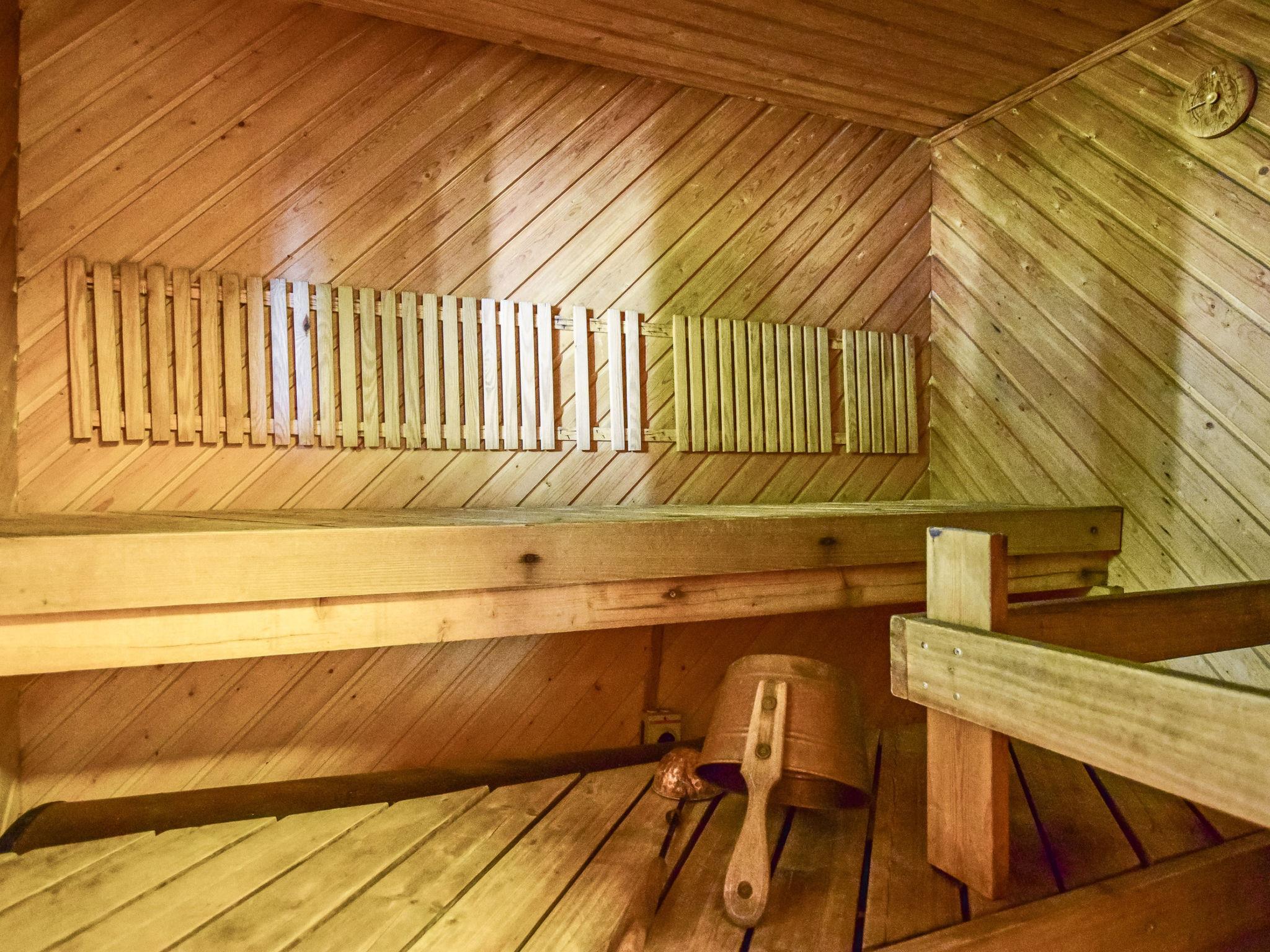 Log cottage 2002, living room/ kitchen 2 extra beds, bedroom double bed, upstairs bedroom 2 beds and lobby 4 extra beds, washroom, dressing room, sauna (elec. stove), open porch and balcony. Fireplace also has baking oven.