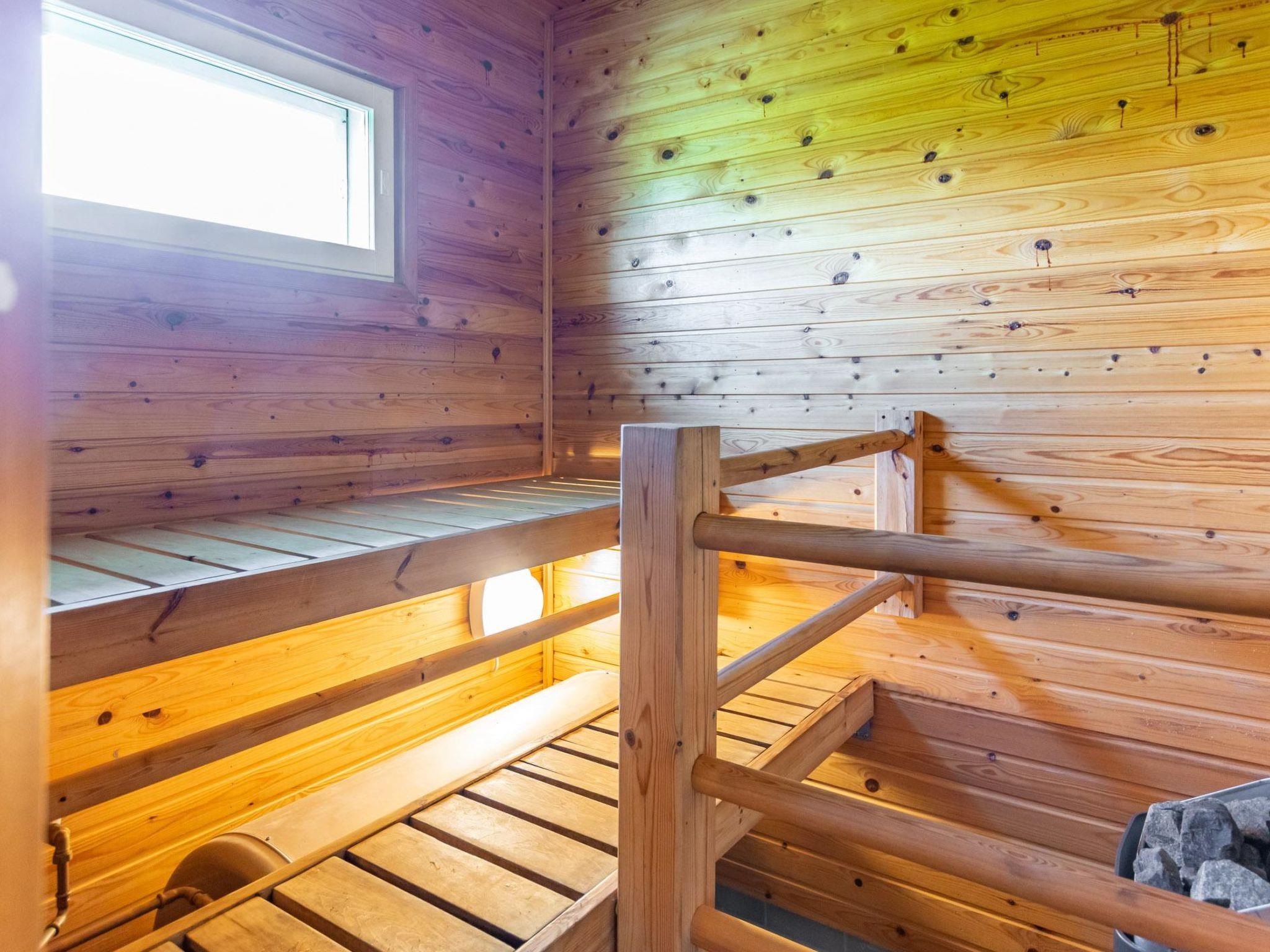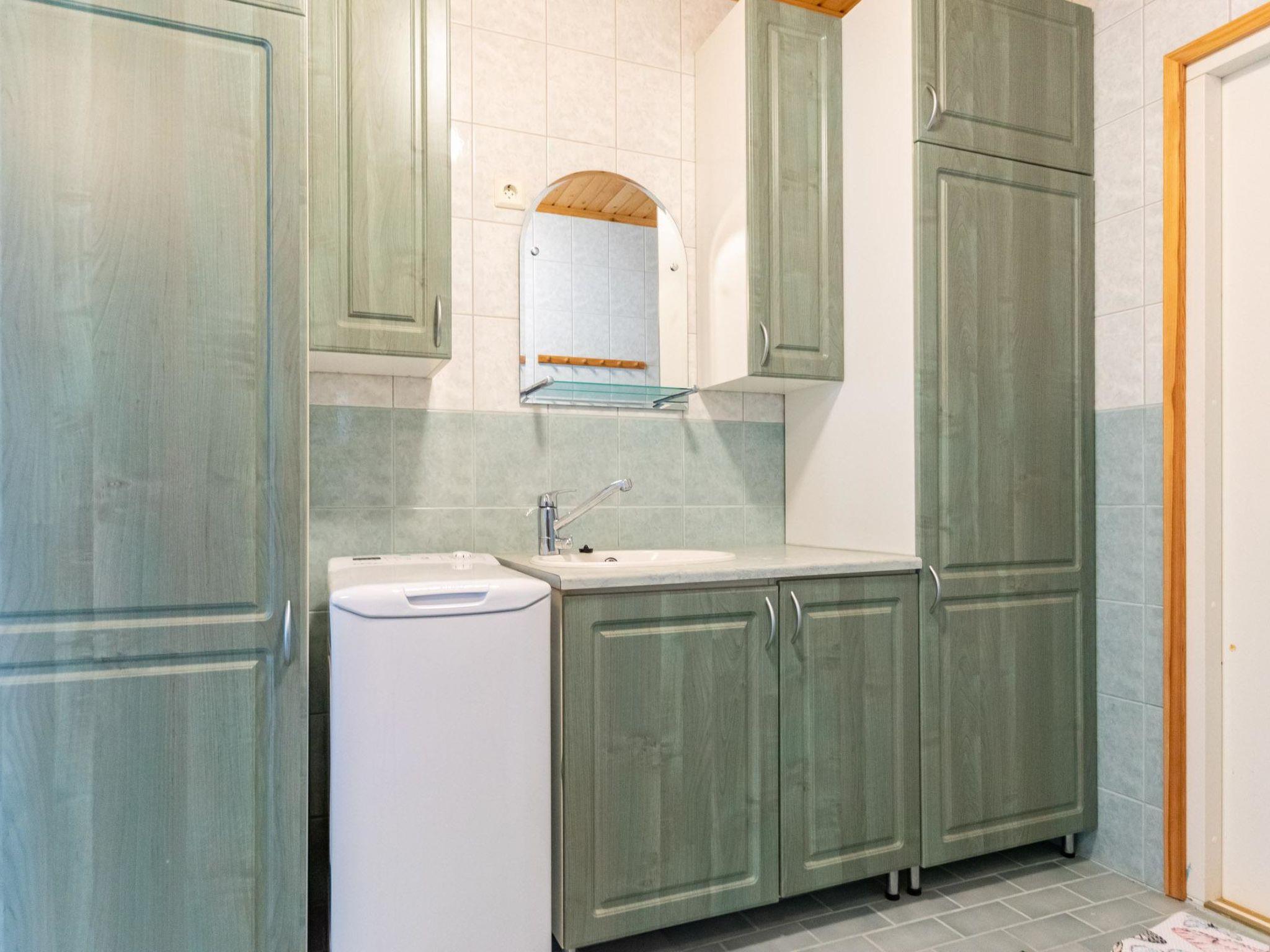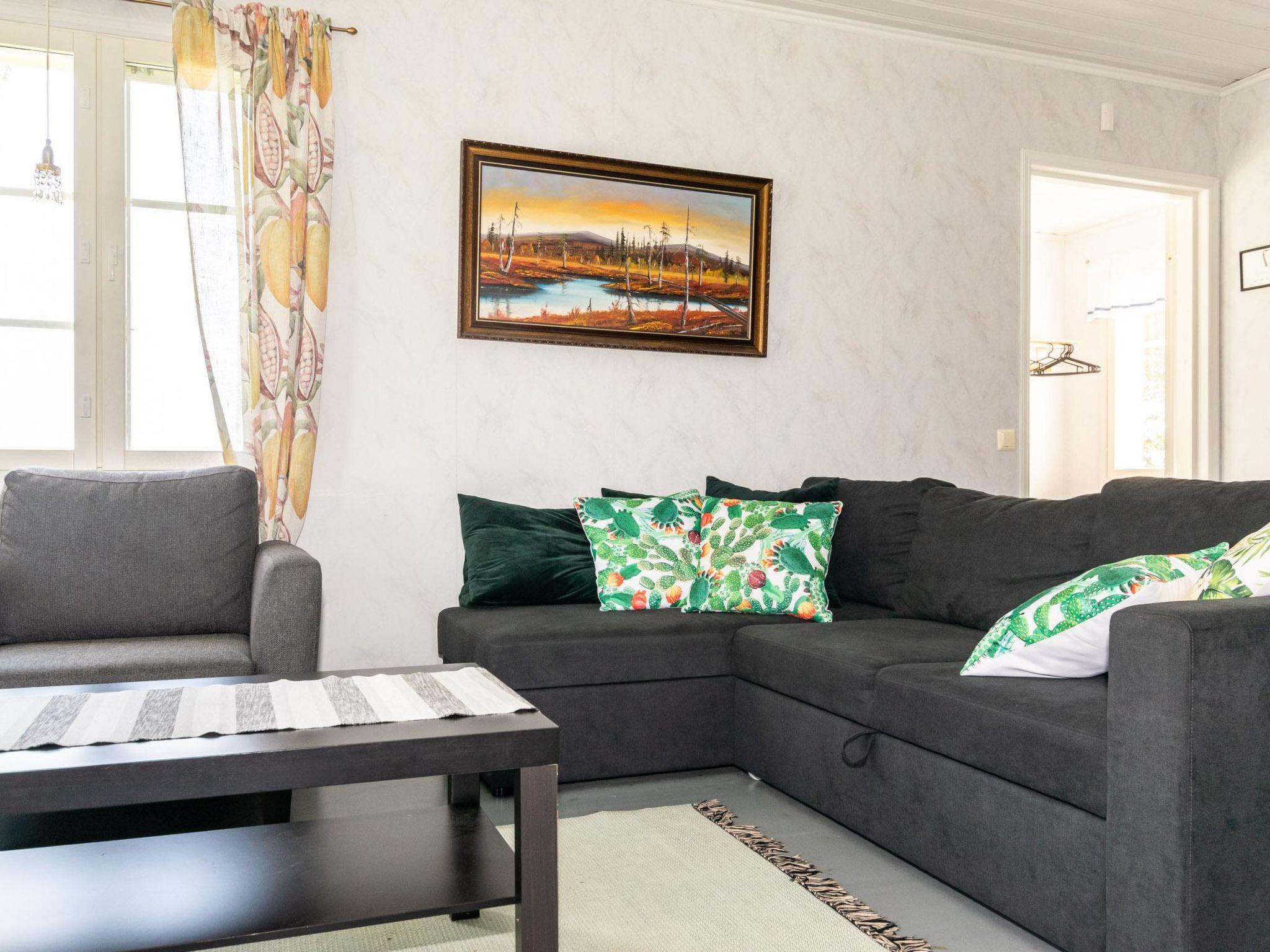The wooden cabin (2000) features a living room, kitchen, entrance hall, and two bedrooms, each with a double bed. The living room has a sofa bed that converts into a double bed (140 x 200 cm). There is a separate WC, bathroom, and sauna (electric stove). In the yard, there is also a lakeside sauna with a wood-burning stove. The lakesauna is only available from May to September, is not available during the winter. The water for the beach sauna is supplied from a water hose located on the wall of the cottage, which receives cold water from the municipal network.
