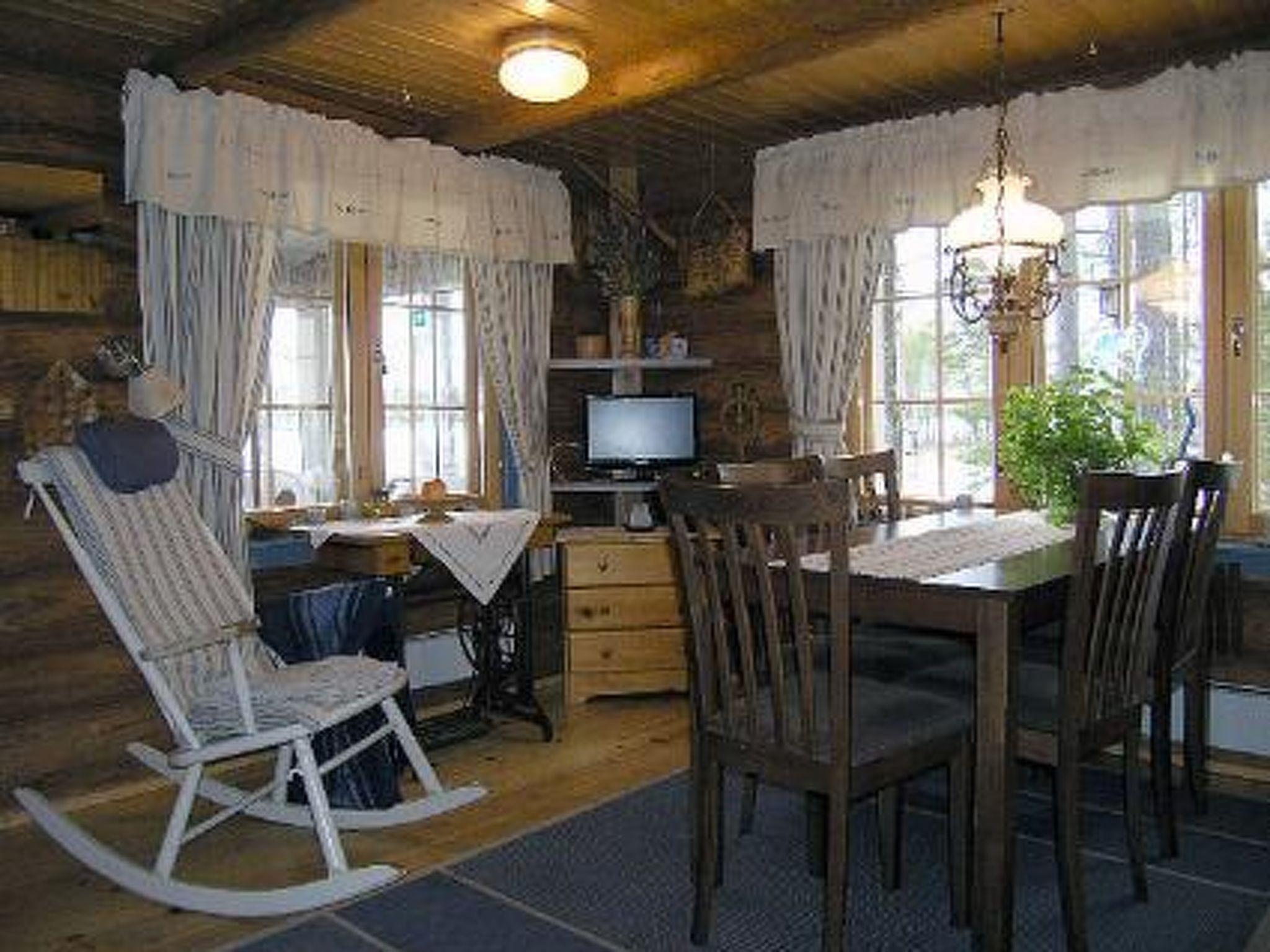 Two-storey log cottage 2006, on the ground floor entrance hall, spacious kitchen, bedroom with double bed, utility room and shower room, walk-in shower, toilet, glass veranda (15 m²) where dining table for 10 people, terrace.