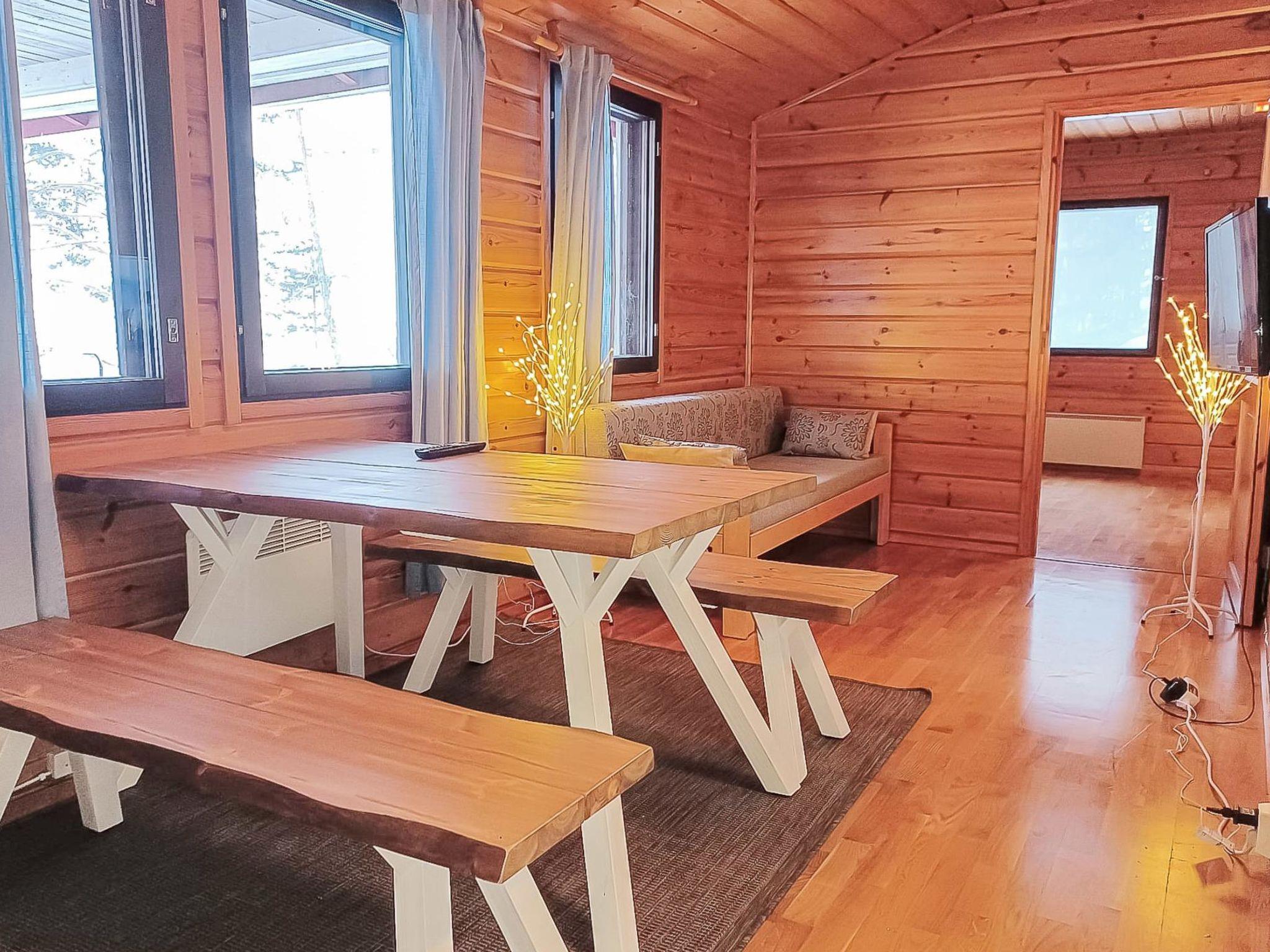 Wooden cabin with boarded outer walls (1993), living room (sofa bed 140x190 cm, bed for one), living room / kitchen, WC. Two bedrooms, each with two beds. Sauna (wood-burning sauna stove), washroom with two showers.
