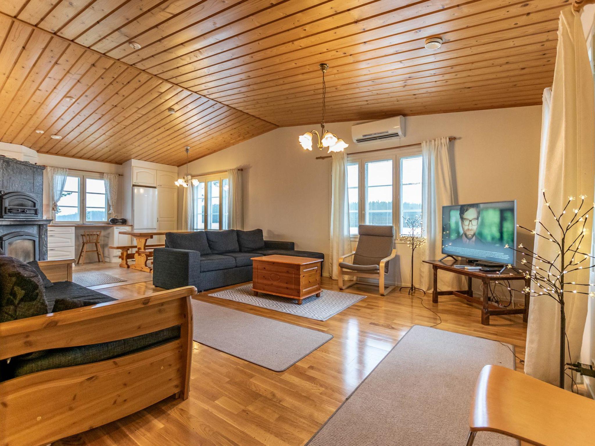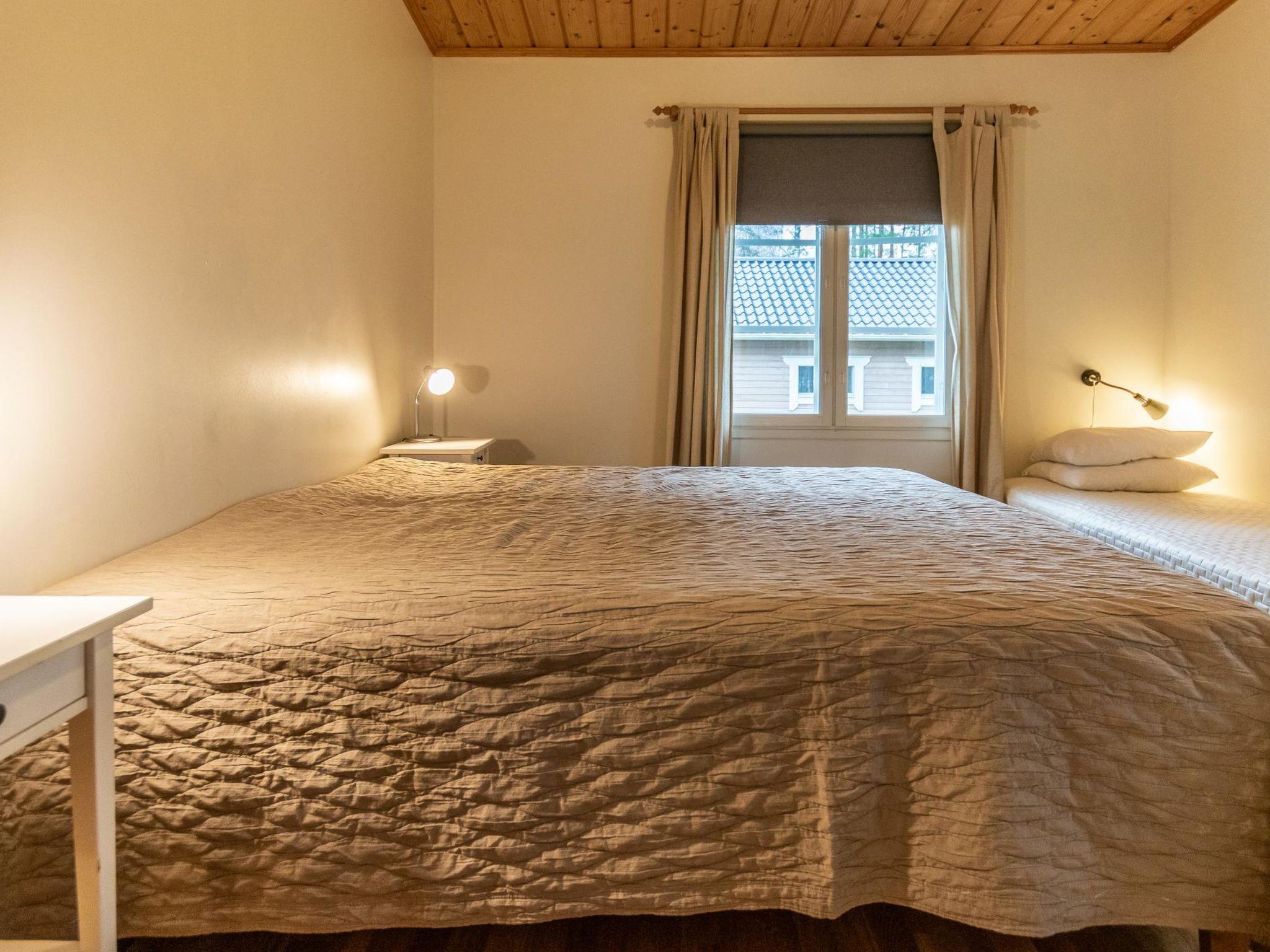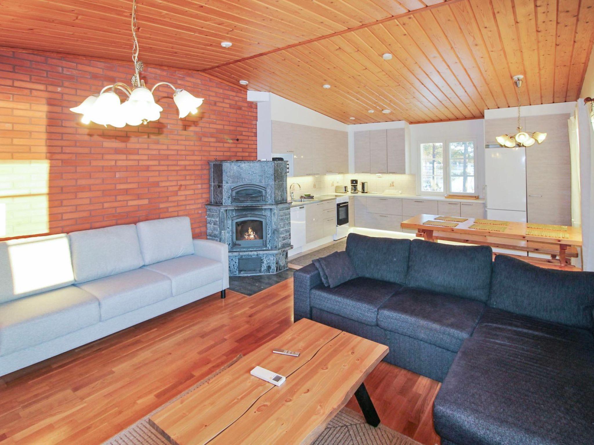Well-equipped and spacious wooden cabin with boarded outer walls (2004), spacious living room (sofa bed 140x200 cm, bed for two) and living room/kitchen with well-equipped kitchen facilities. Two bedrooms, bedroom 1: three beds, bedroom 2: three beds. Separate WC, washroom with two showers, sauna (wood-burning sauna stove). There is a carport in the yard.