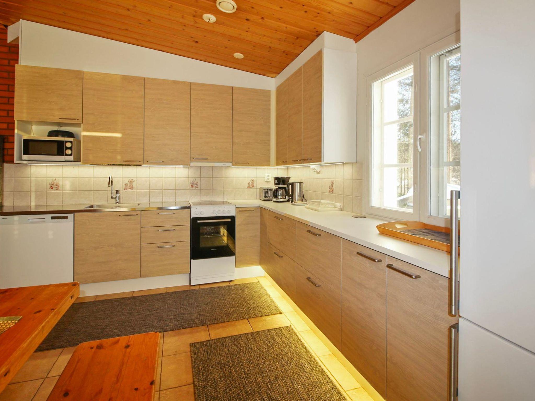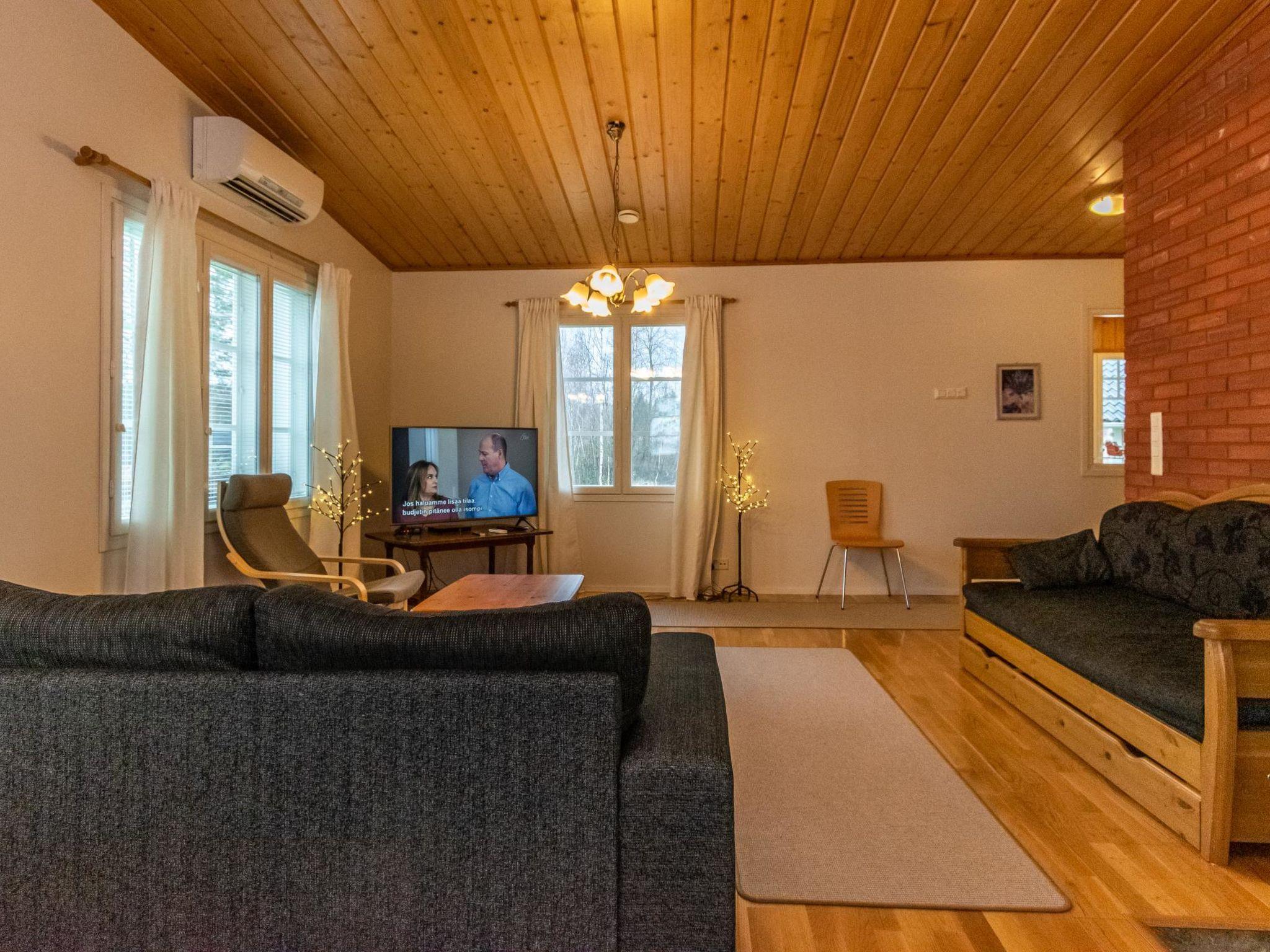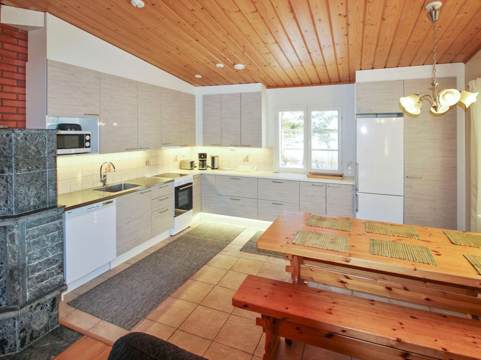 Well-equipped and spacious wooden cabin with boarded outer walls (2004), spacious living room (sofa bed 140x200 cm, bed for two) and living room/kitchen with well-equipped kitchen facilities. Two bedrooms, bedroom 1: three beds, bedroom 2: three beds. Separate WC, washroom with two showers, sauna (wood-burning sauna stove). There is a carport in the yard.