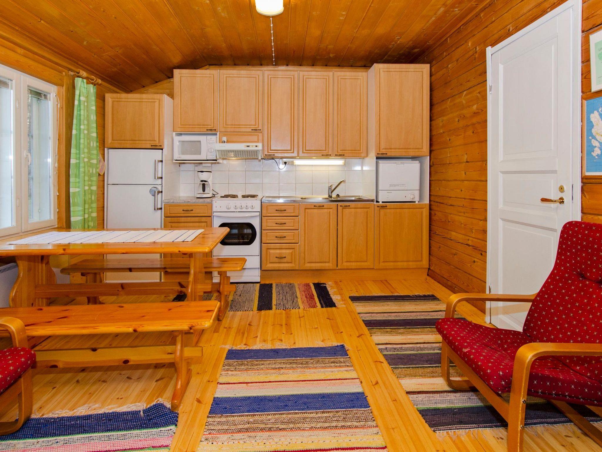 Log cottage 1992, renovated 2005, bedroom with 2 beds, kitchen-living room with convertible sofa, washroom, sauna (wood heated stove), terrace. Separate outdoor building with 2 beds and baby crib, only for summer use. The kitchen equipment includes kettle and toaster.