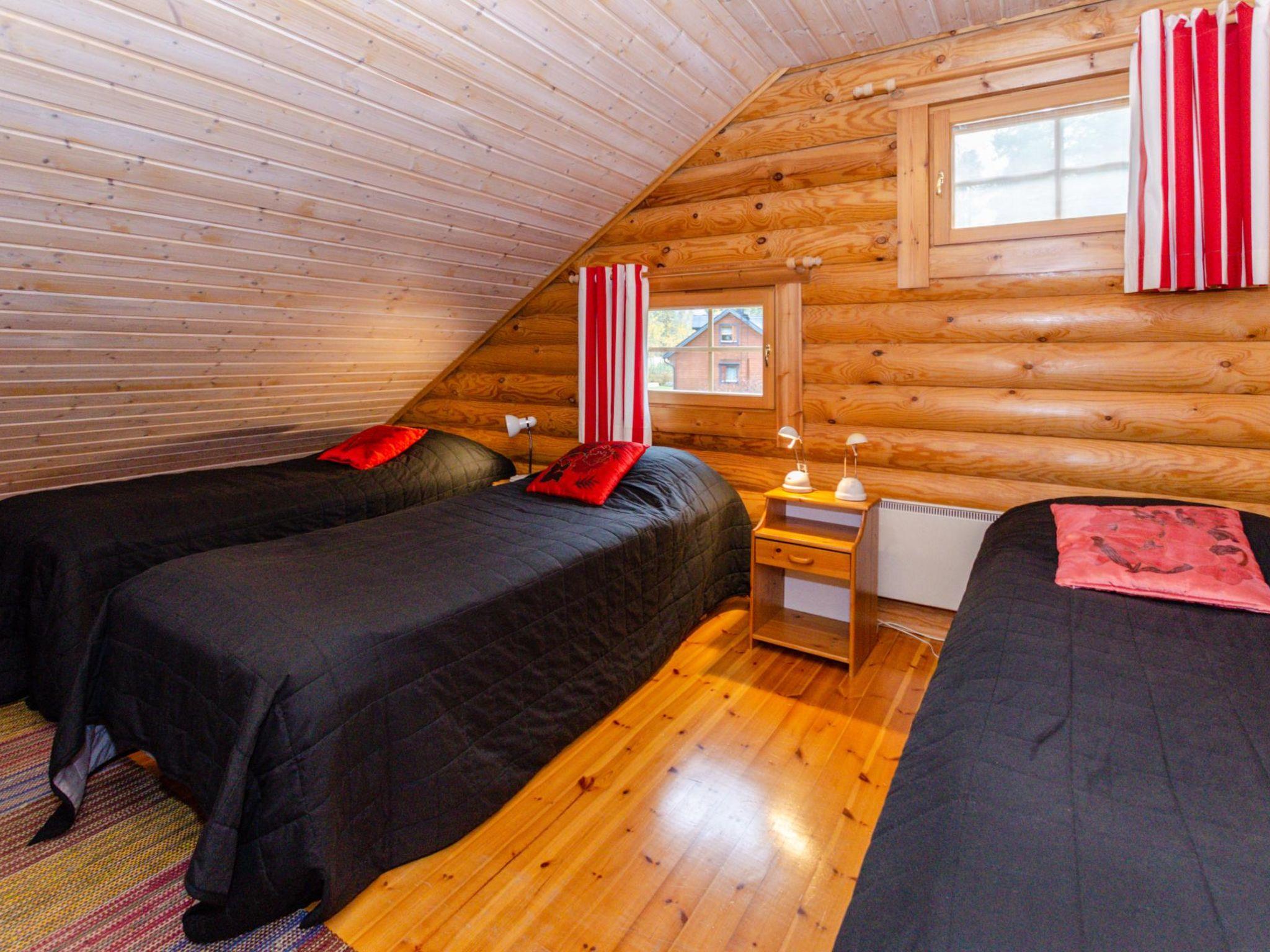 70 km north of Joensuu, L.Pielinen (871,2 km2) 60 m, common shore with shallow sand bottom and some rocks (also lot of boats on the beach), own boat. Log cottage 2001, kitchen-living room, bedroom with double bed, sleeping gallery with convertible sofa, bedroom with three beds, washing room, sauna (elec. stove), terrace, balcony.