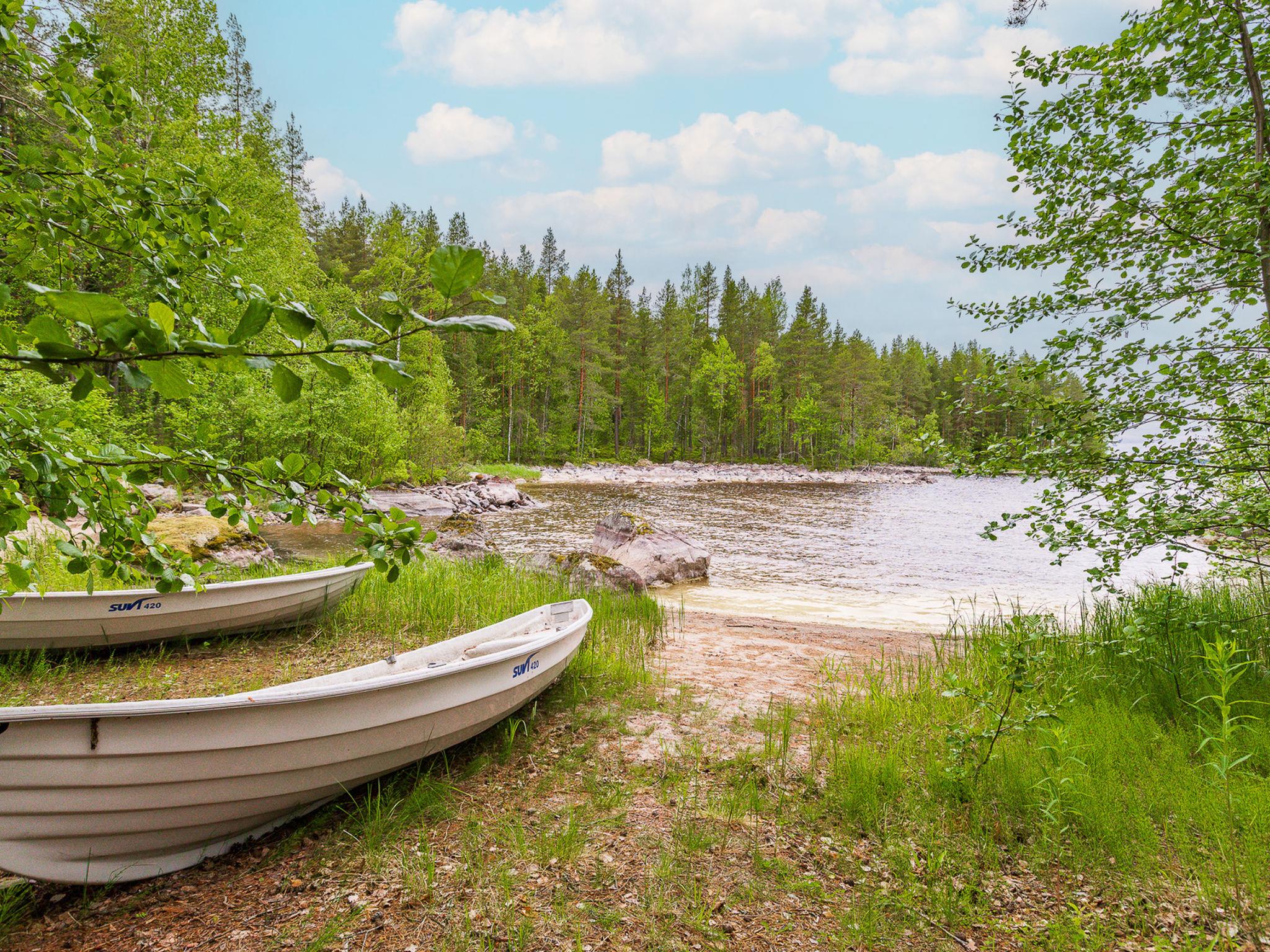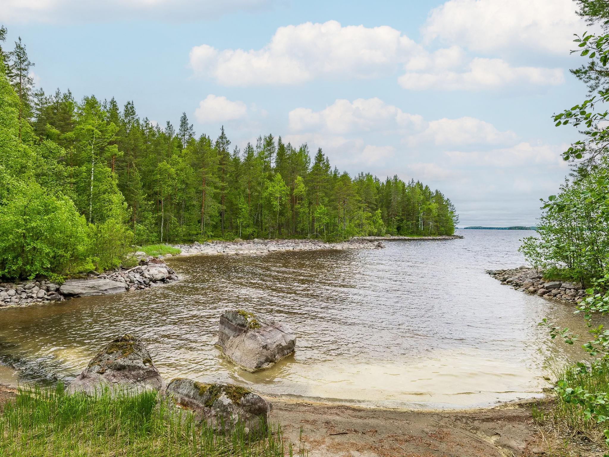 77 km north of Joensuu, Lake Pielinen (871,2 km2) own beach with deep and rocky/sandy bottom, own boat and jetty. Log cottage 2006, kitchen-living room with divan, bedroom with two beds, bedroom with two beds, bedroom with two beds, house hold room – dressing room, washroom, sauna (elec. stove) and terrace. Steep slope to the shore. There is an own, separate sauna by the shore with dressing/fireplace room. Water for the sauna fetched from the lake or inside the cottage.