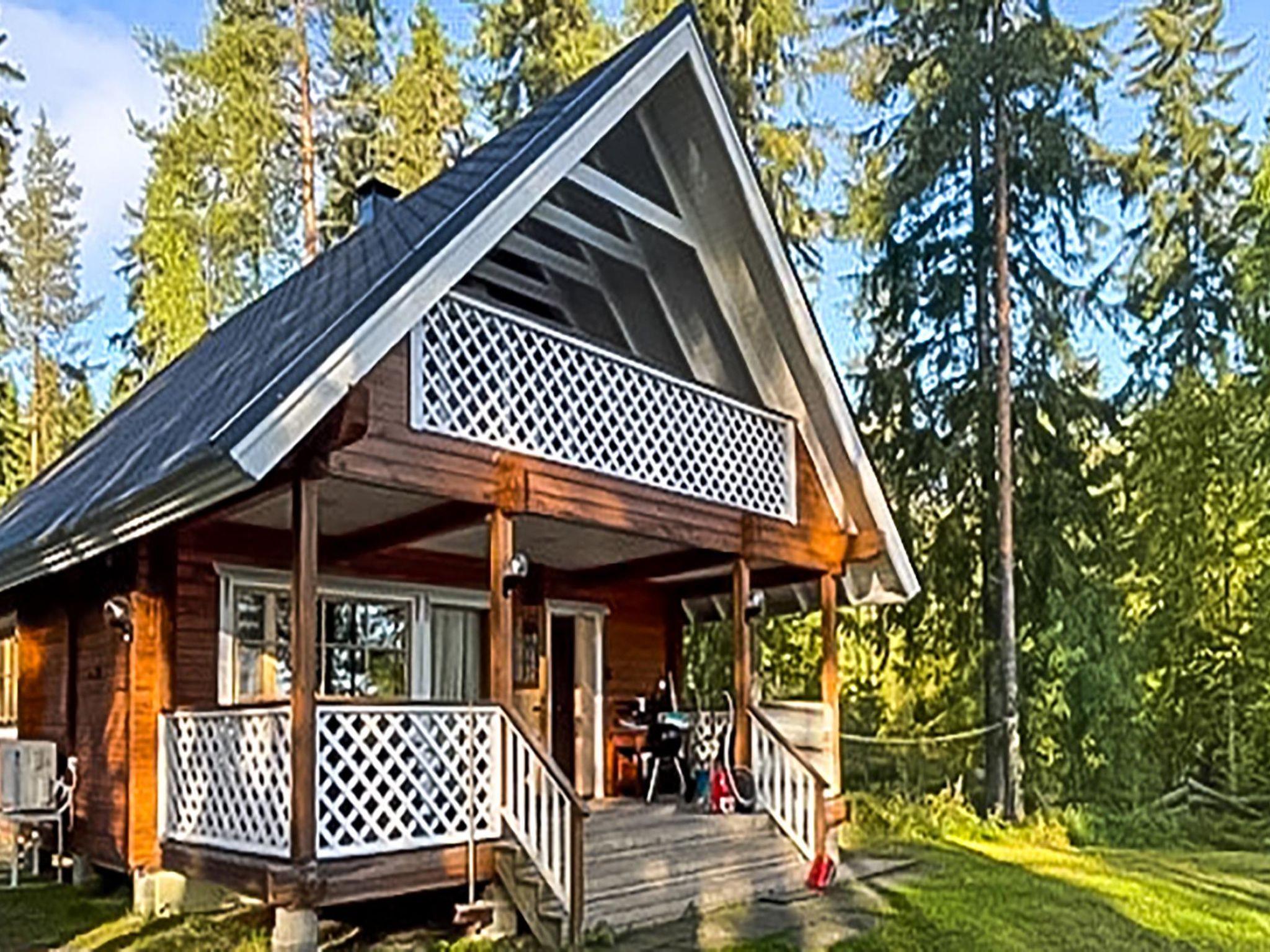 116 km north of Joensuu, 18 km northwest of Lieksa, Lake Viekijärvi 20 m (24,81 km²), shallow sandy shore facing northeast, own shore, own boat. Log cottage 2006, kitchen-living room, bedroom with double bed, upstairs (25 m²) 4 beds, washroom, electric sauna, spacious terrace, balcony.