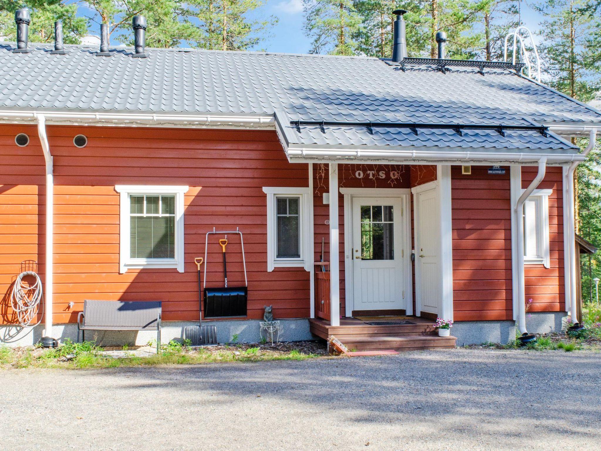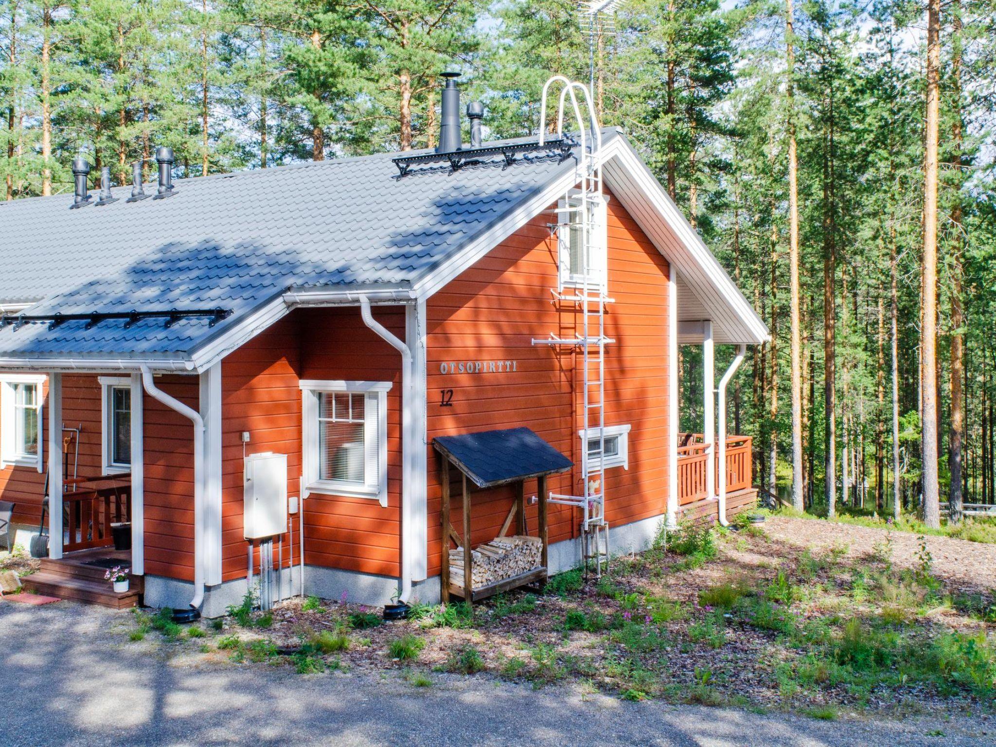 77 km north of Joensuu, Small lake Koirilampi. Wood semi-detached house 2008, kitchen-living room with convertibal sofa, 2 bed rooms with with double bed in each, upstairs bed room with 2 beds, washroom, sauna (elec. stove), terrace. Upstairs also toilet with a shower.