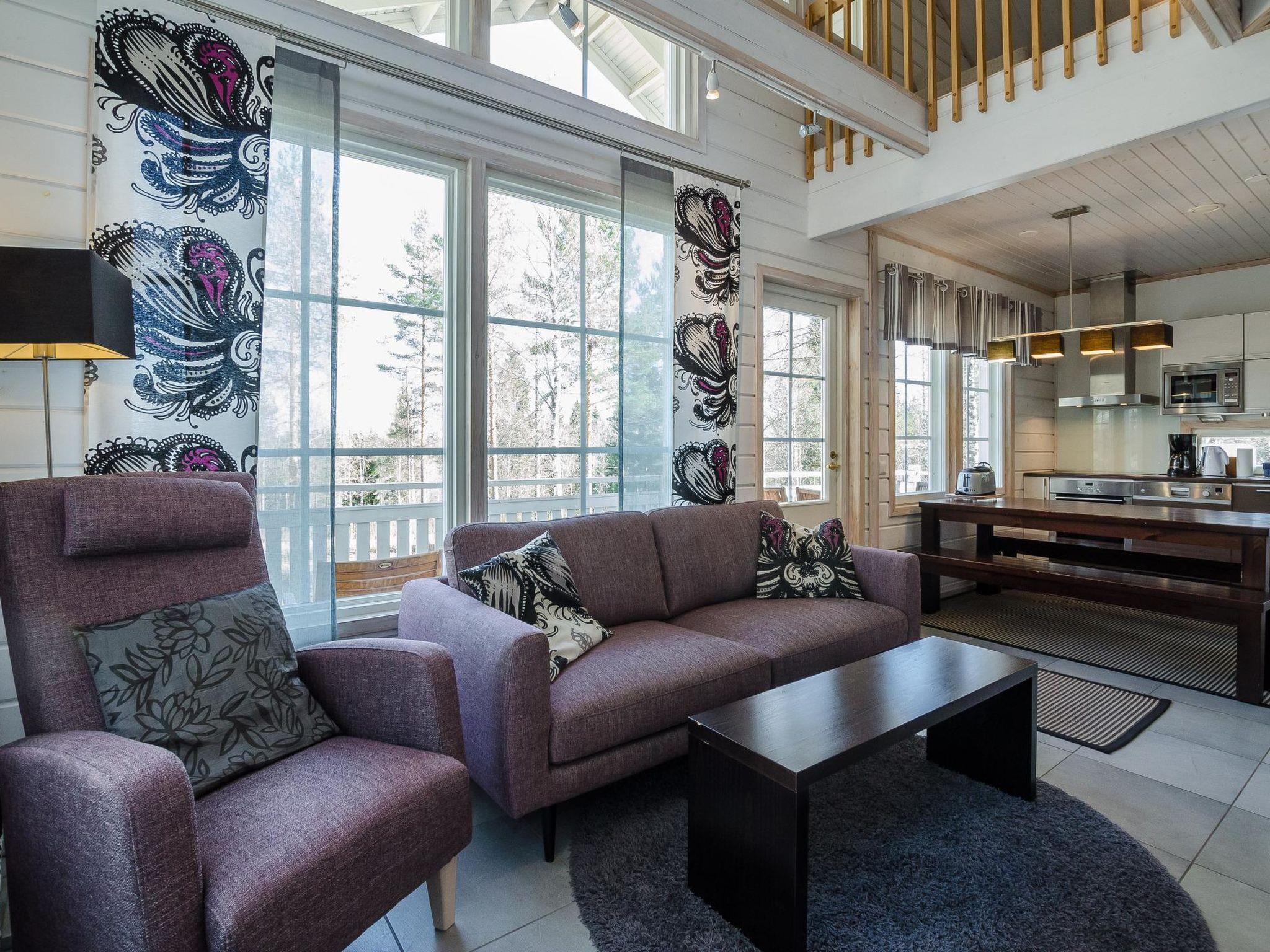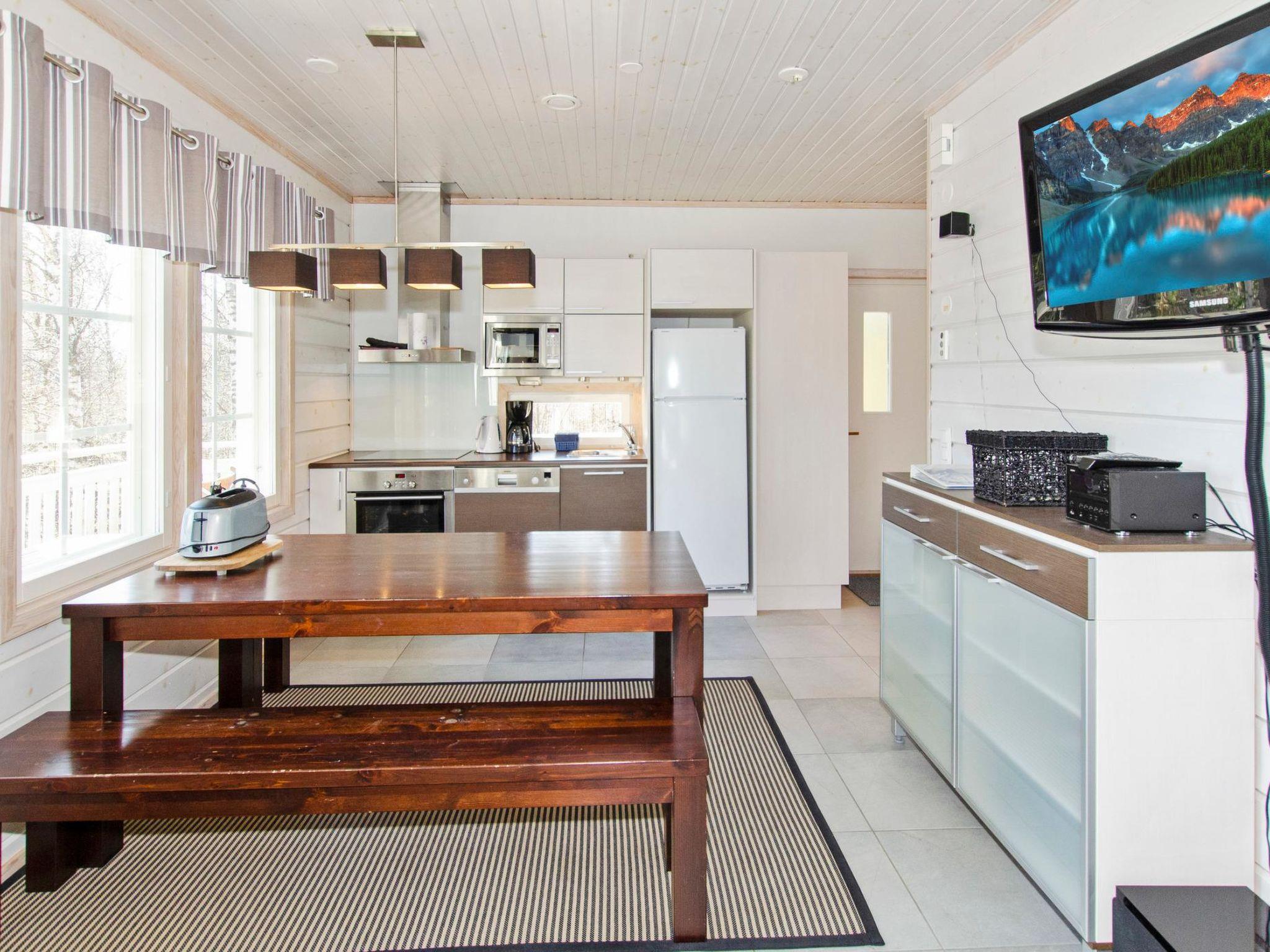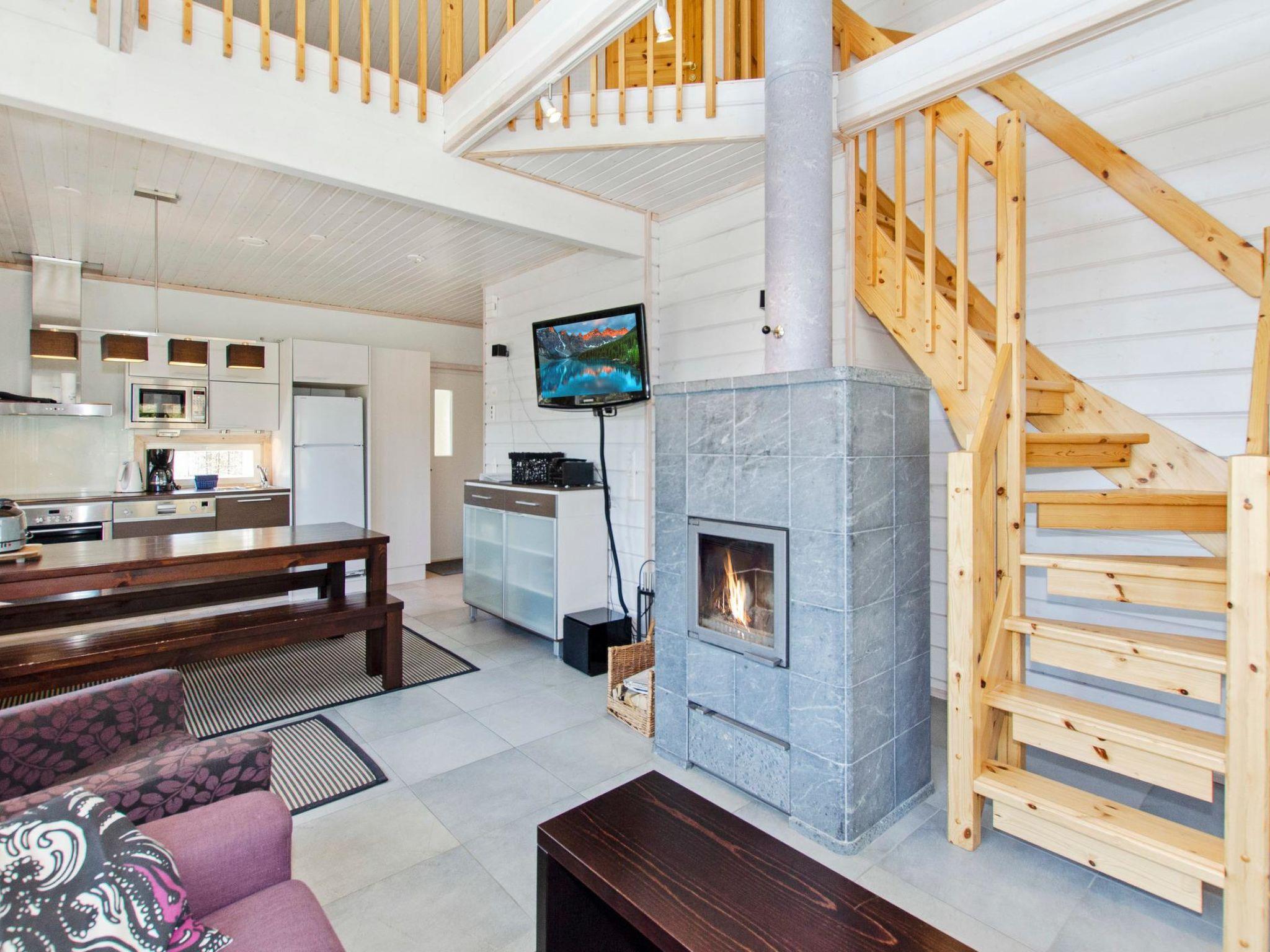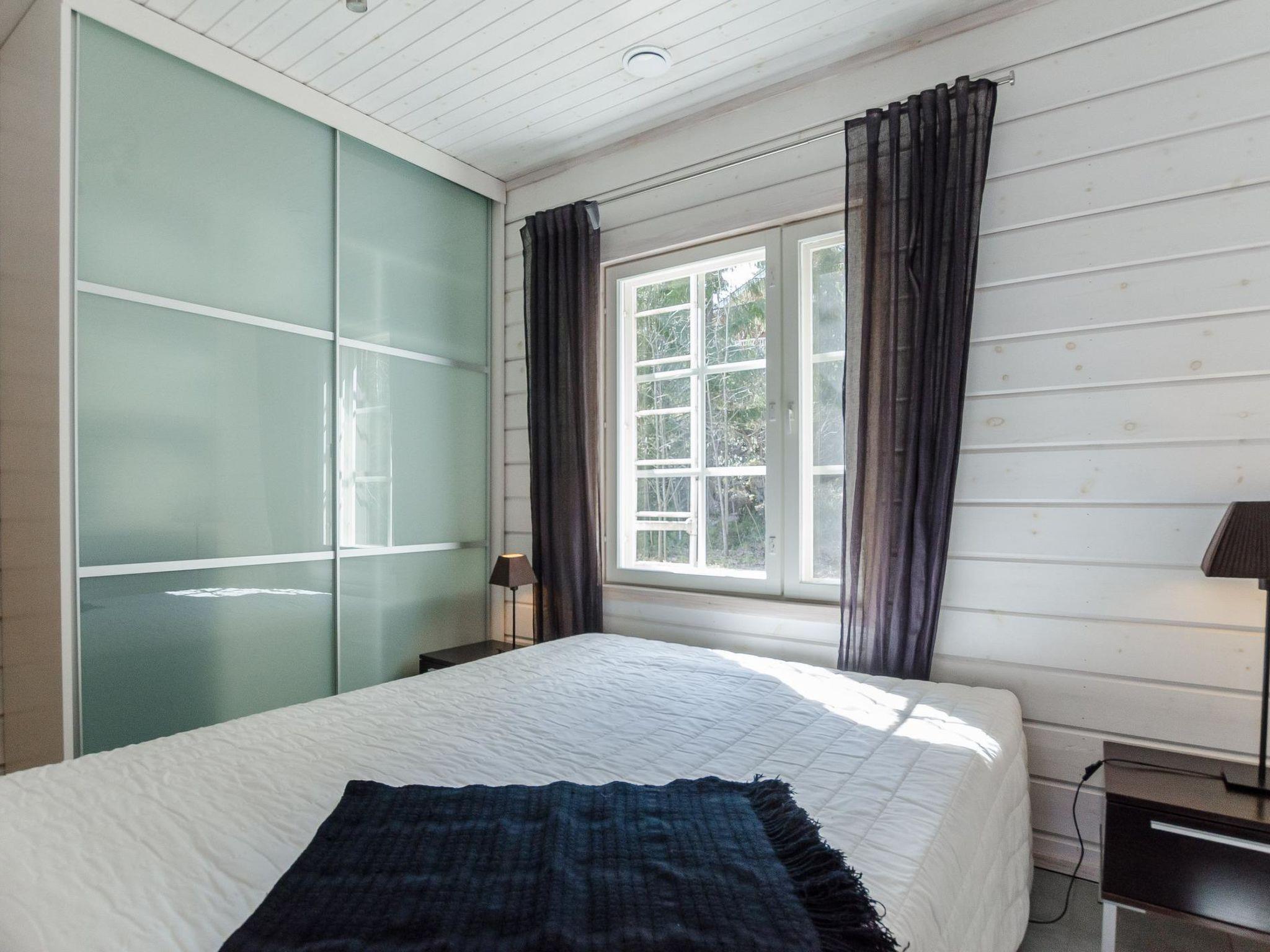 Wood cottage 2008, kitchen-living room, 1 bed room down stairs with double bed and one bed room upstairs with 2 beds, sleeping gallery with sofa bed, washroom, sauna (elec. stove), terrace.