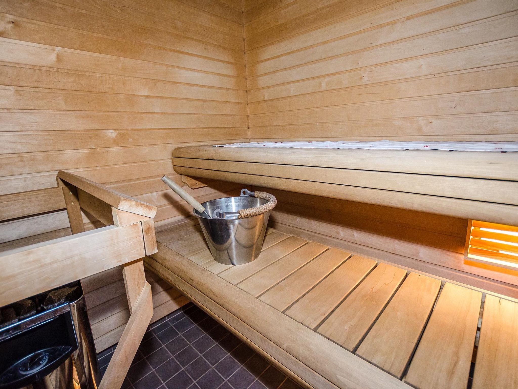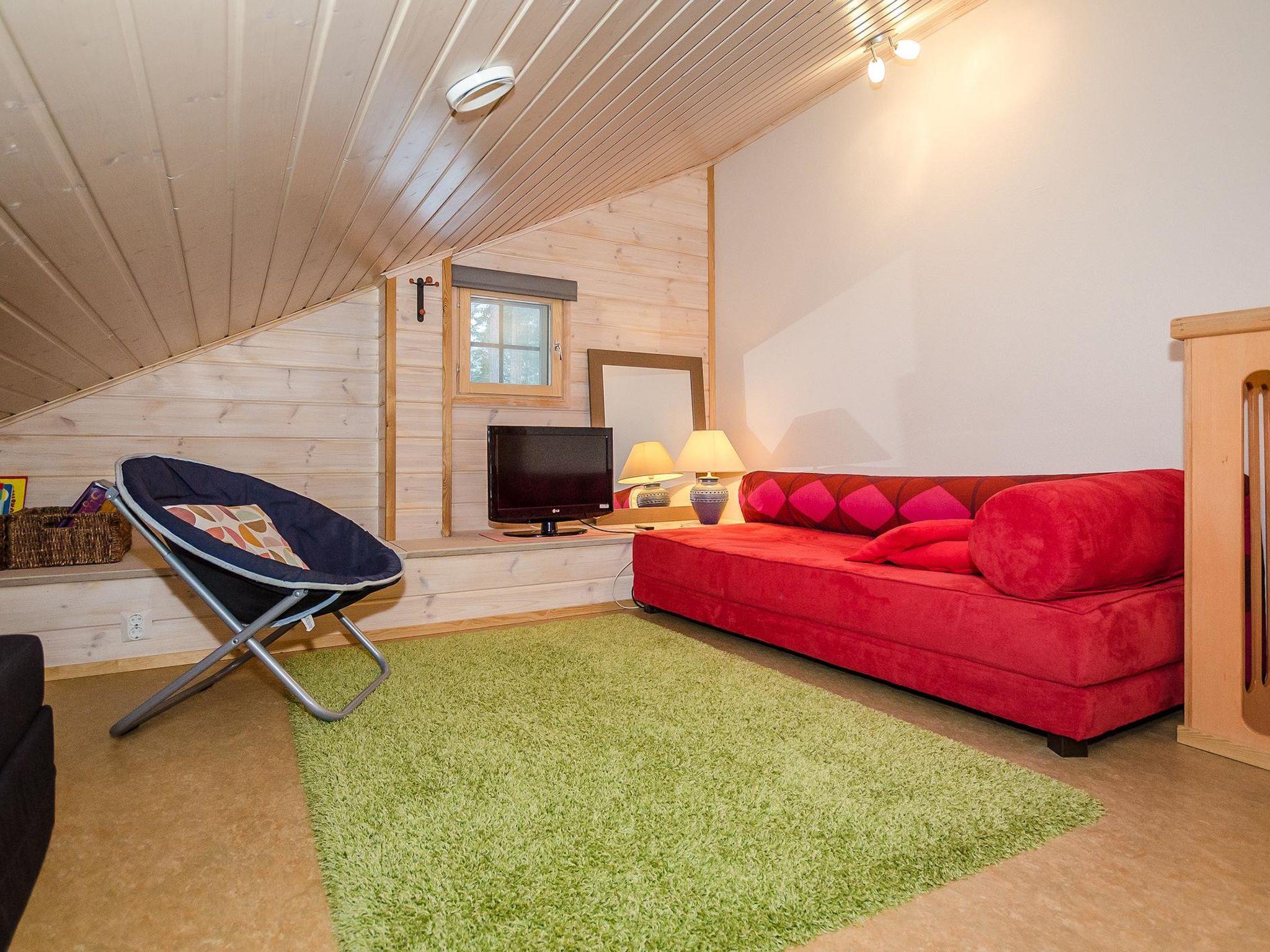 Living room, kitchen, one bedroom with double bed, sleeping gallery with 2 beds and sofa bed for 1-2 persons, washroom, sauna (elec. stove), terrace, carport.