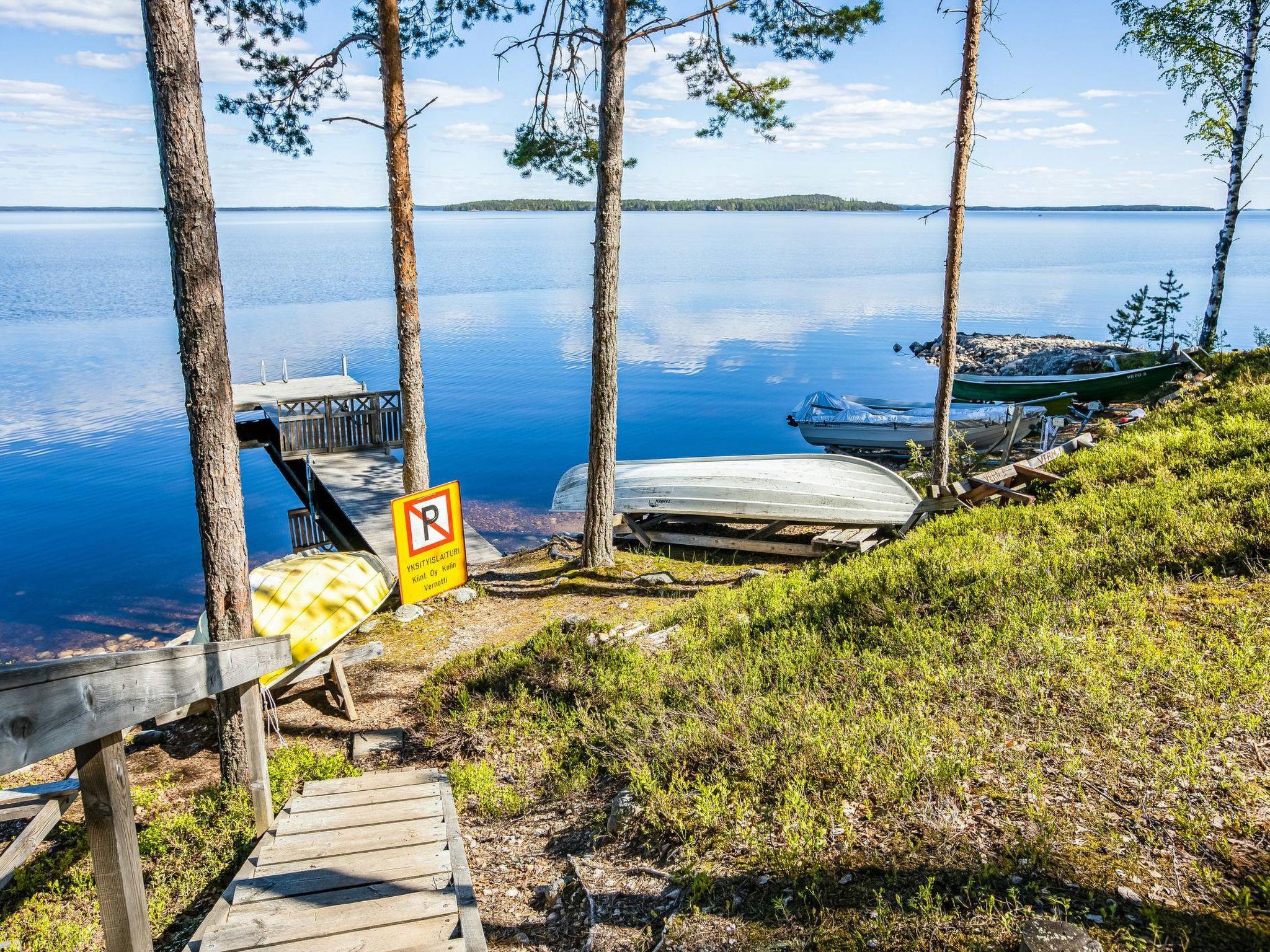 77 km north of Joensuu, Lake Pielinen 70 m (871,2 km²), common beach with gently deepening sandy and partly stony bottom. Own boat. Common jetty and beach with 4 different Vernetti cottage. Log cottage 1990, kitchen, living room, bedroom with double room, small bedroom with folding door with 1 bed, upstairs bedroom (18 m²) with 4 beds, washroom, sauna (elec. stove), terrace.