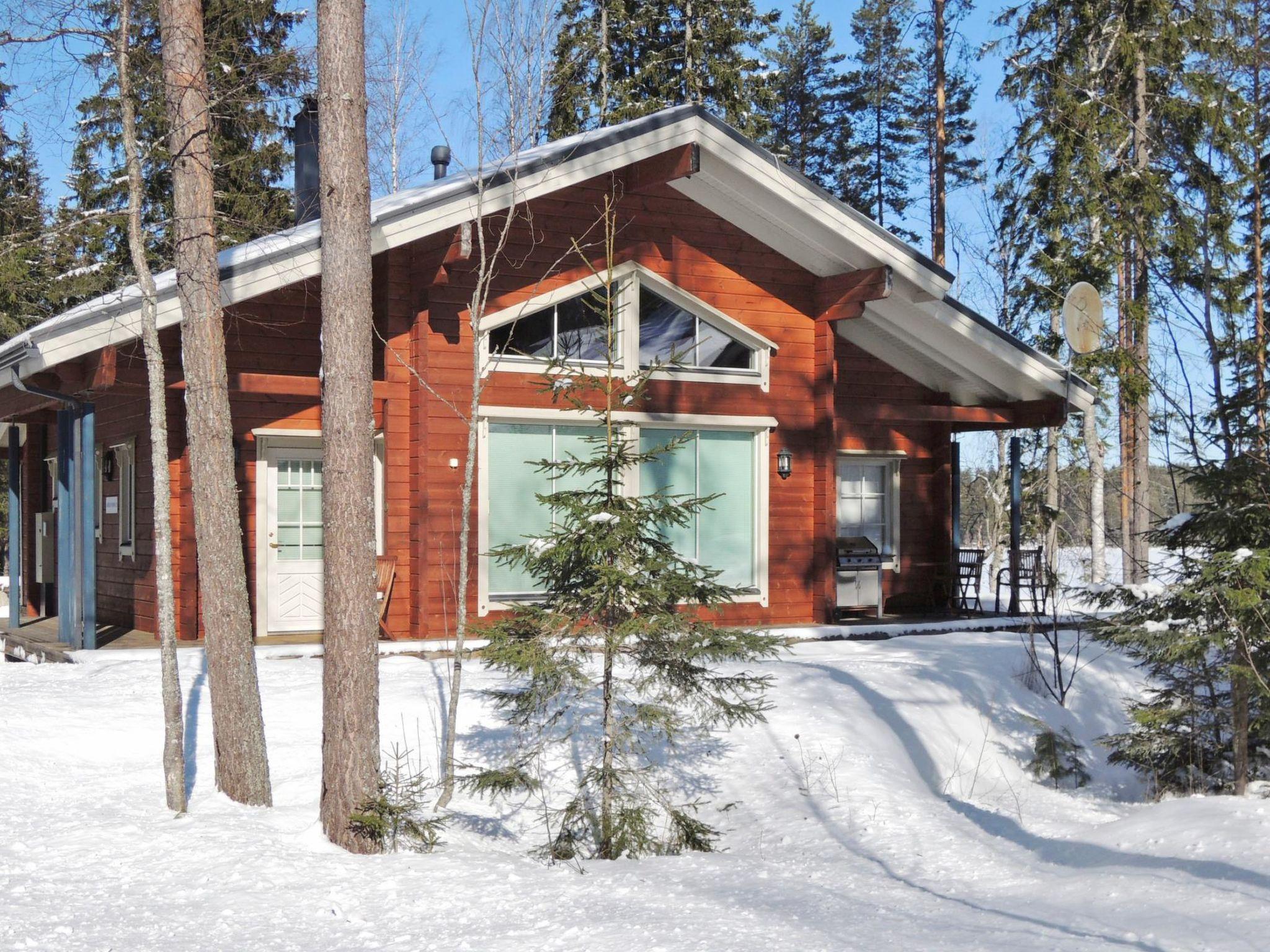 72 km north of Joensuu, Lake Pielinen 40 m (871,2 km2), common shore and common boat with cottage Amero Purnu 1, gently deepening rocky bottom. Log cottage 2007, kitchen-living room, two bedrooms with double beds, upstairs sleeping gallery with 2 beds and convertible sofa, dressing room, washroom, sauna (elec. stove), veranda and terrace.
