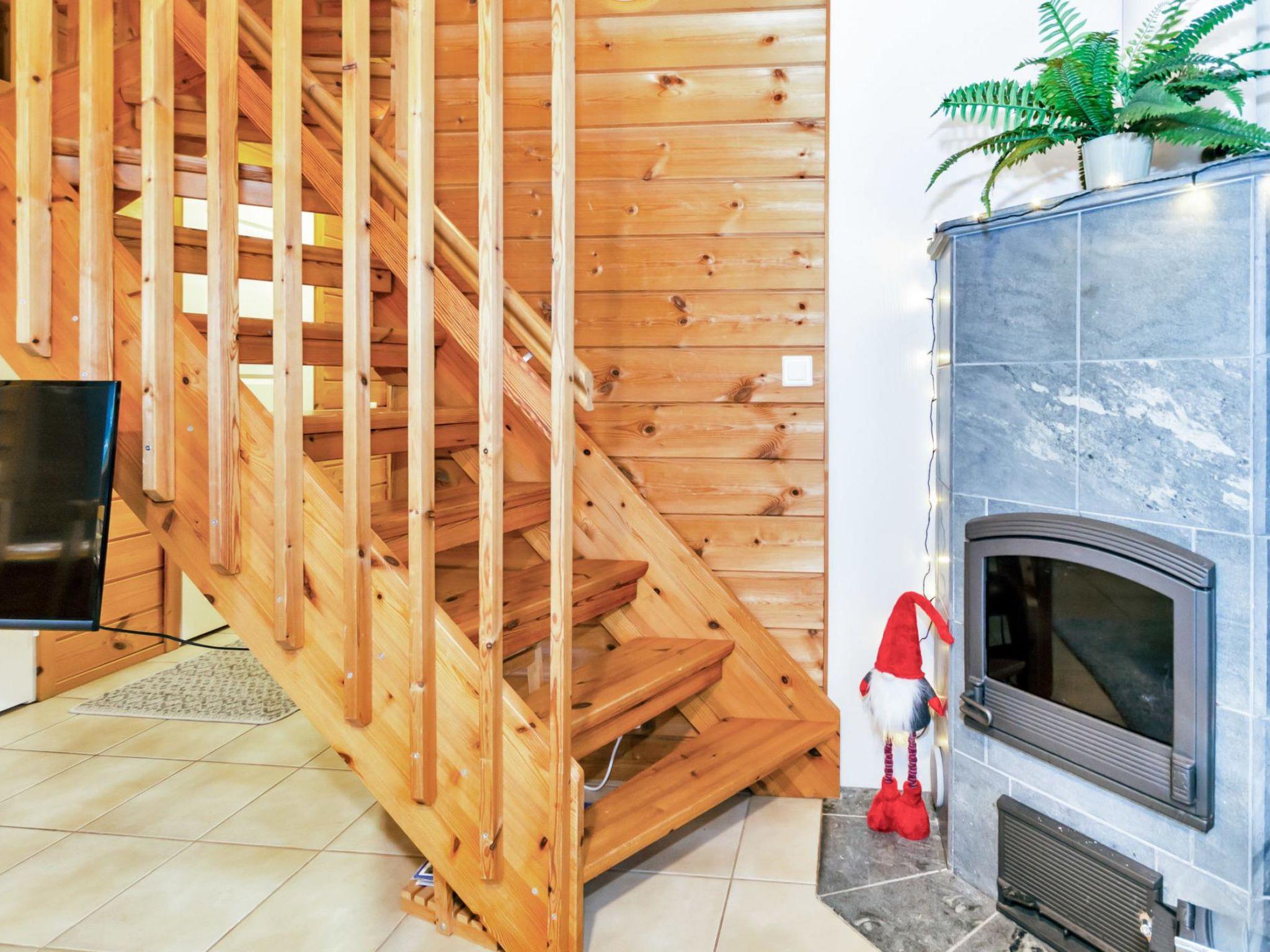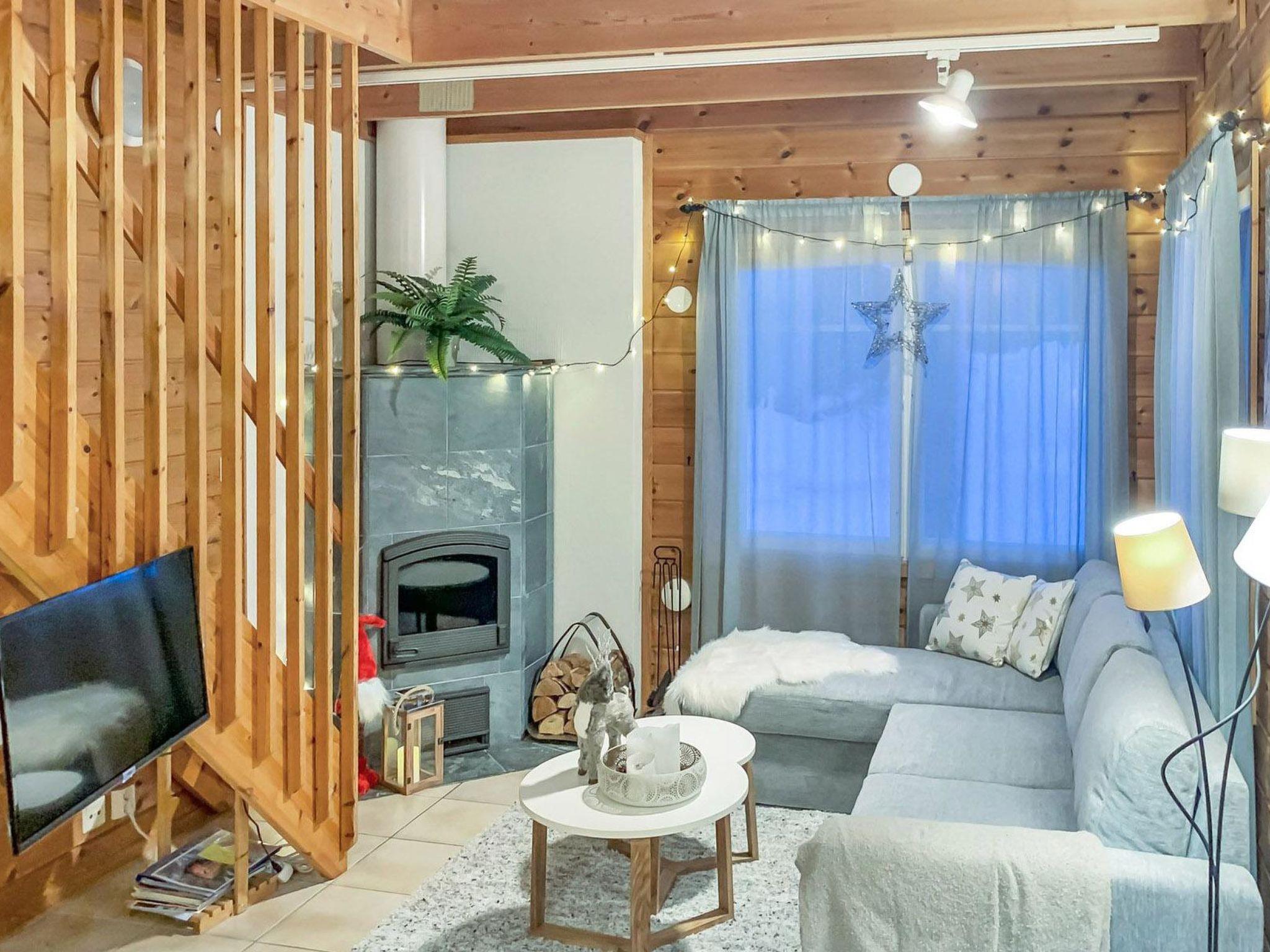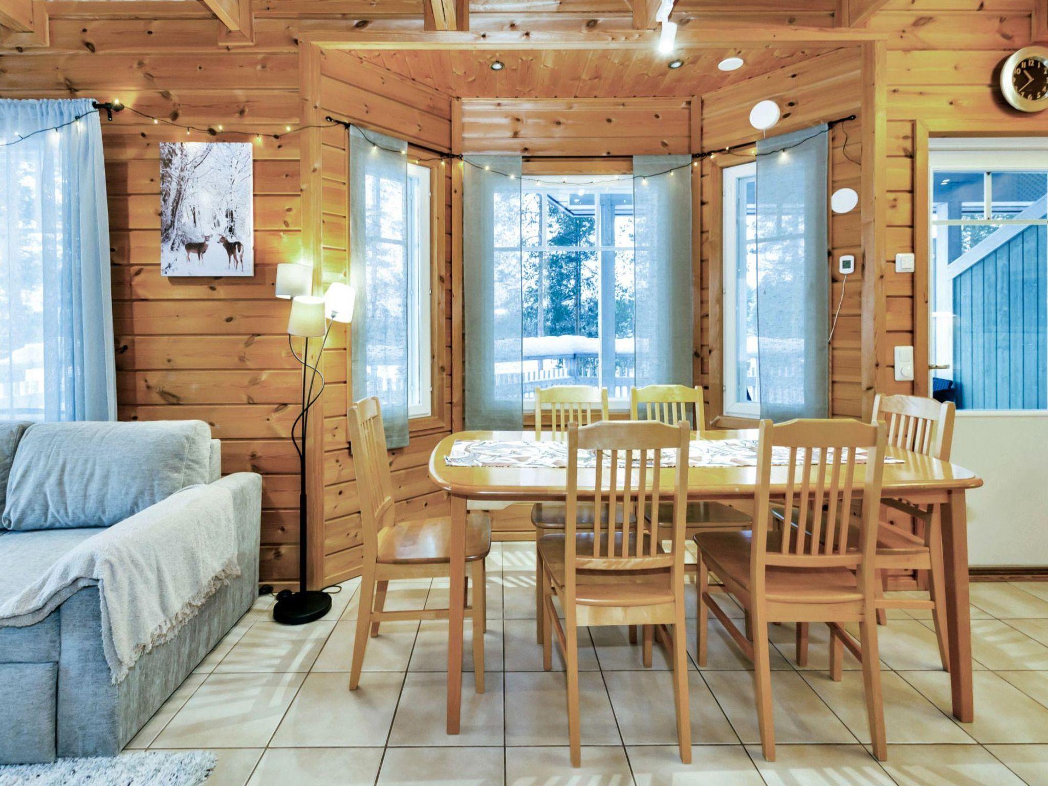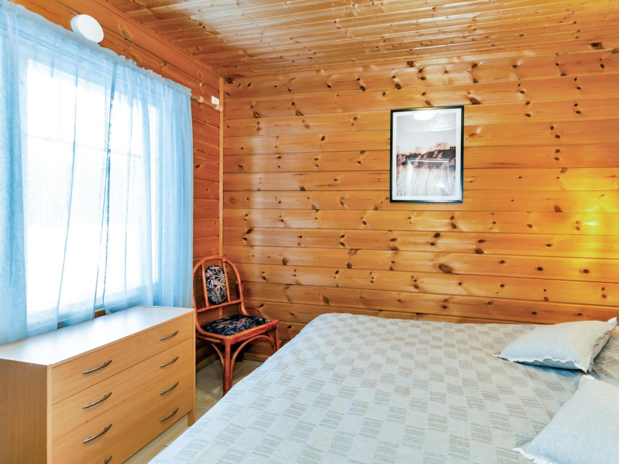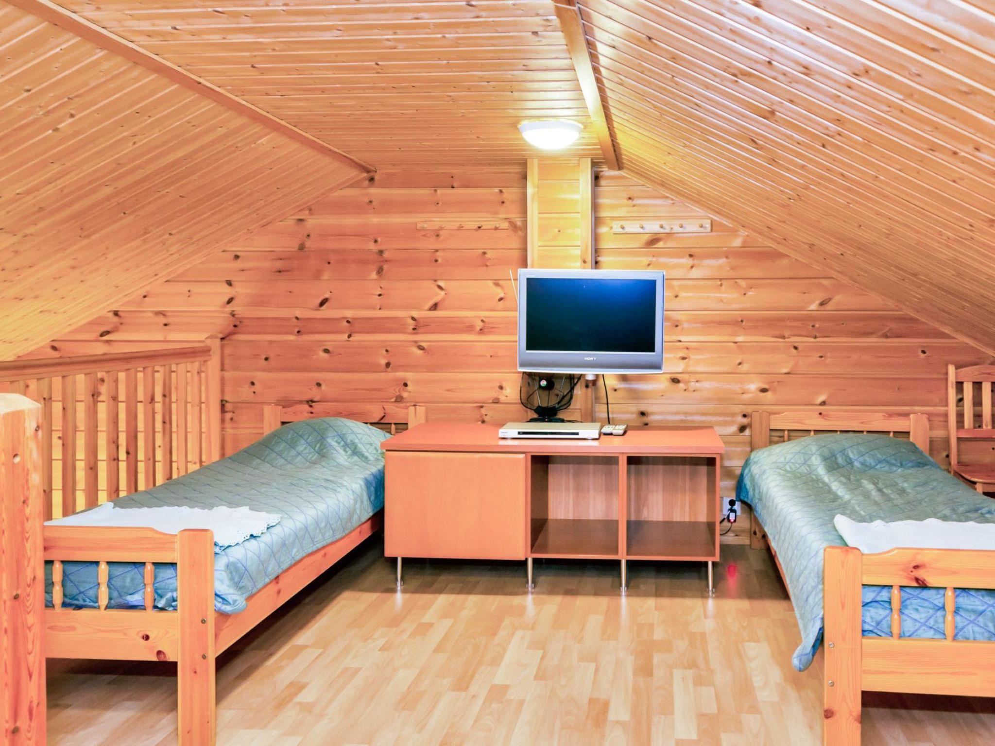 77 north of Joensuu, Pond Käränkälampi 50 m (length 2 km, width 1,5 km), common beach with shallow bottom 90 m, Wood semi-detached house 2005, kitchen-living room, small bedroom (with door, but no window) with 120 cm width double bed, bed room with 2 beds, sleeping gallery with four beds, washroom, sauna (elec. stove) and terrace. Wi-Fi 4G and Nespresso coffee machine..