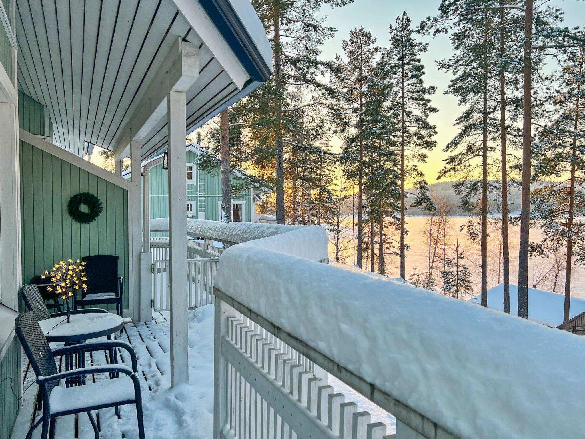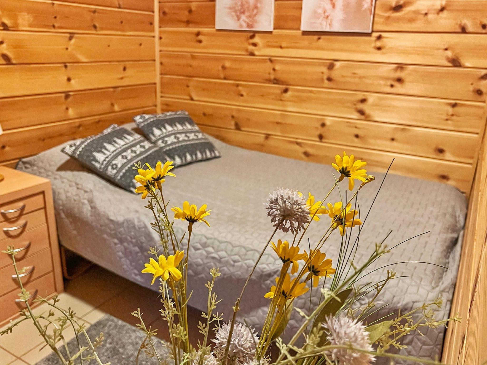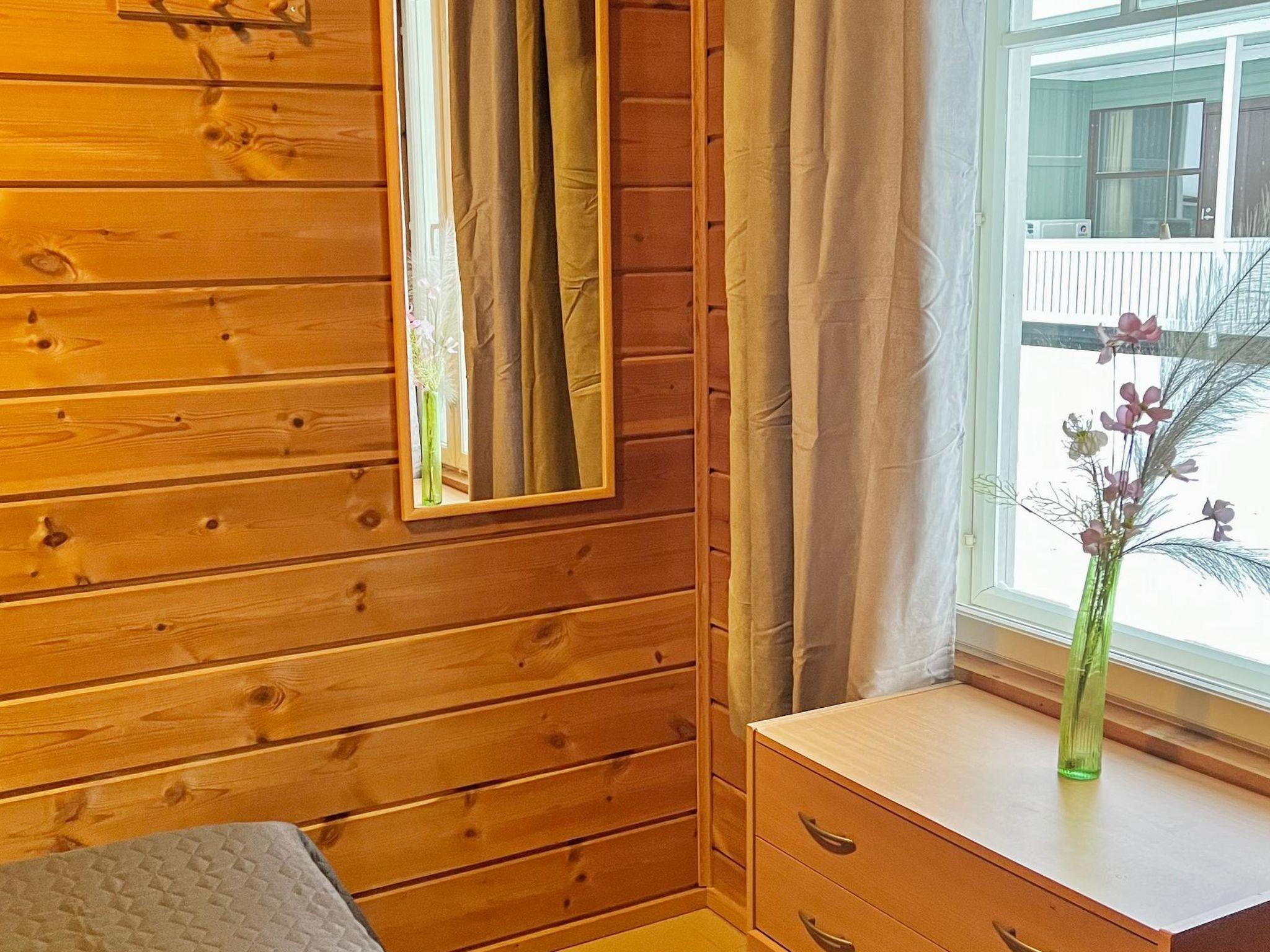 77 north of Joensuu, Pond Käränkälampi 50 m (length 2 km, width 1,5 km), common beach with shallow bottom 100 m, Wood semi-detached house 2005, kitchen-living room, small bedroom (with door, but no window) with 120 cm width double bed, bed room with 2 beds, sleeping gallery with four beds, washroom, sauna (elec. stove) and terrace. Wi-Fi 4 G.