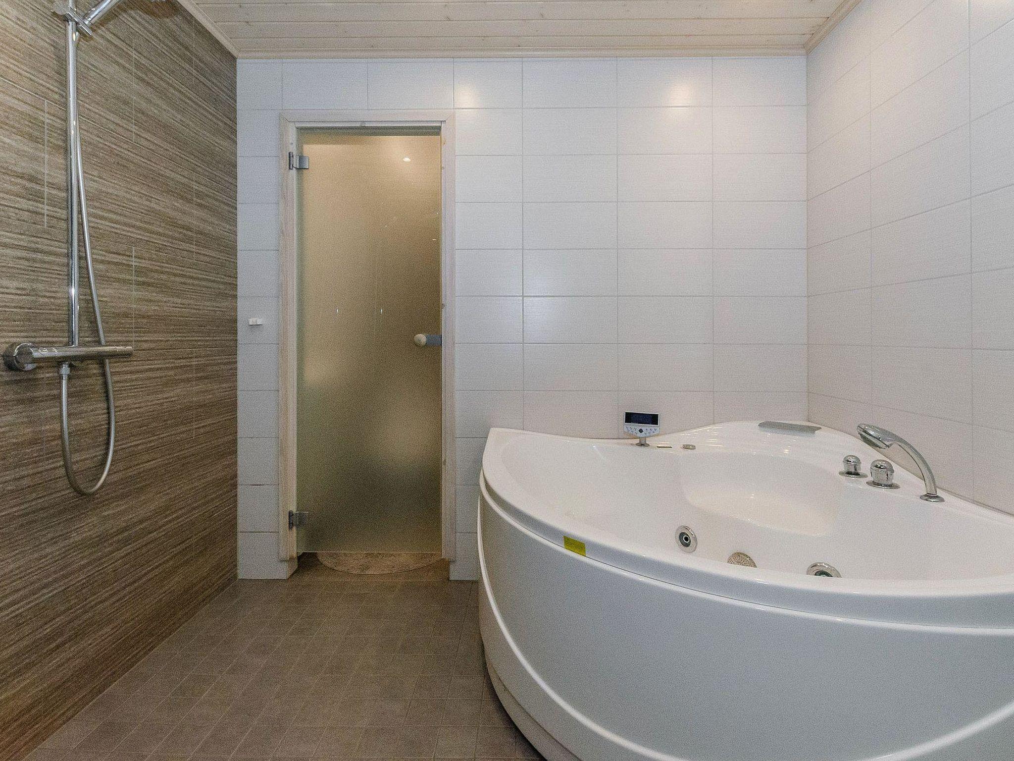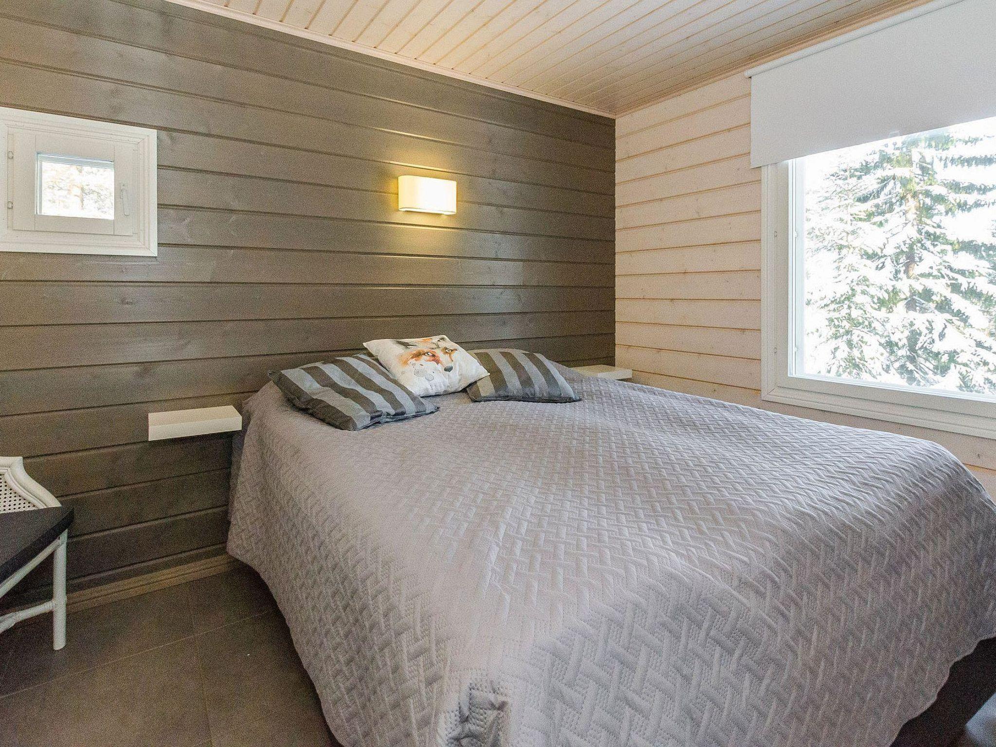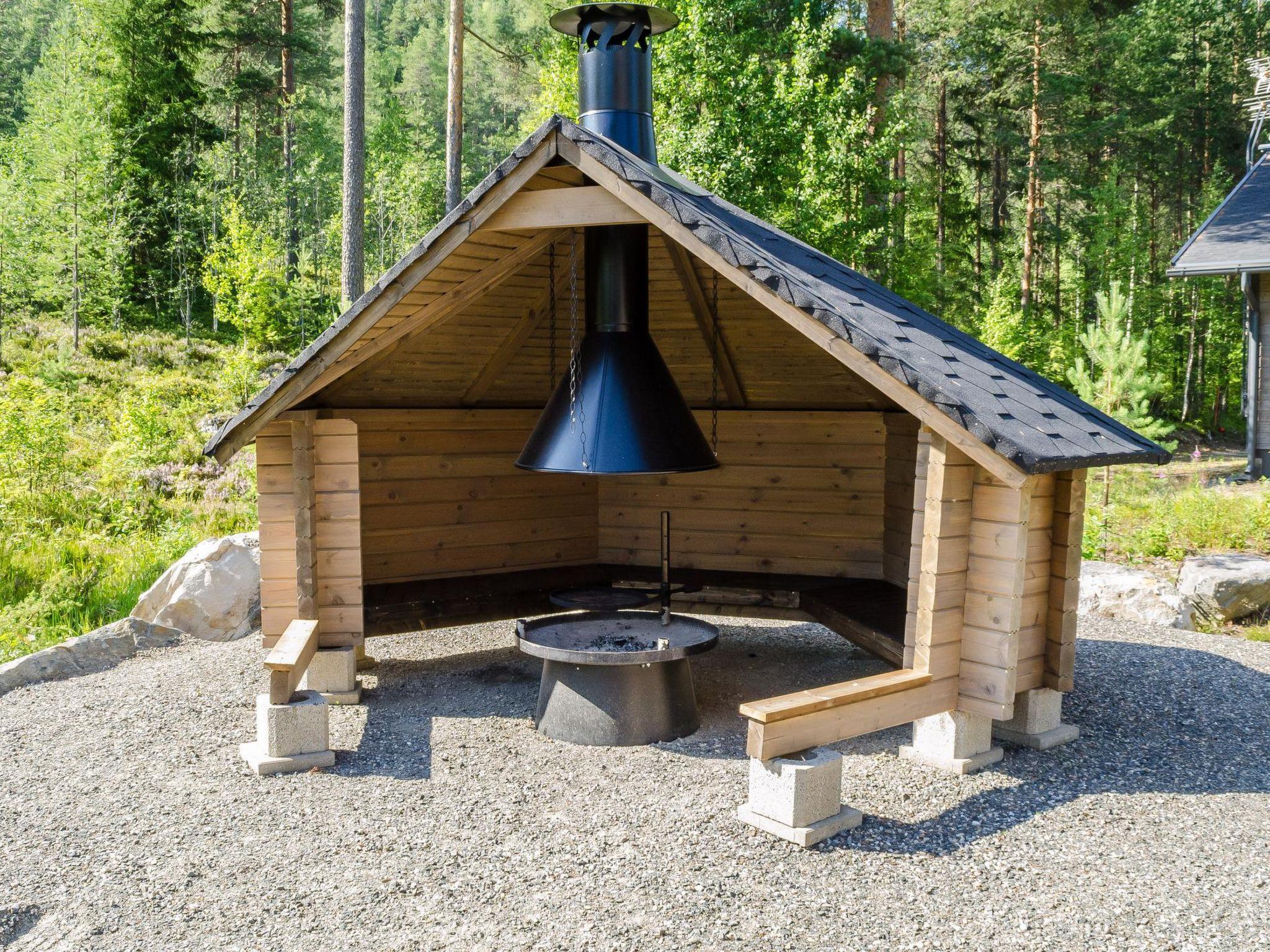 Wooden cabin, built in 2013. Living room/kitchen, two bedrooms on the ground floor, each with double beds. The loft has 2 beds and a pull-out sofa for 1 person. There is also a dressing/laundry room, washroom with a hydro-massage bath, electric sauna, open porch, and a terrace.