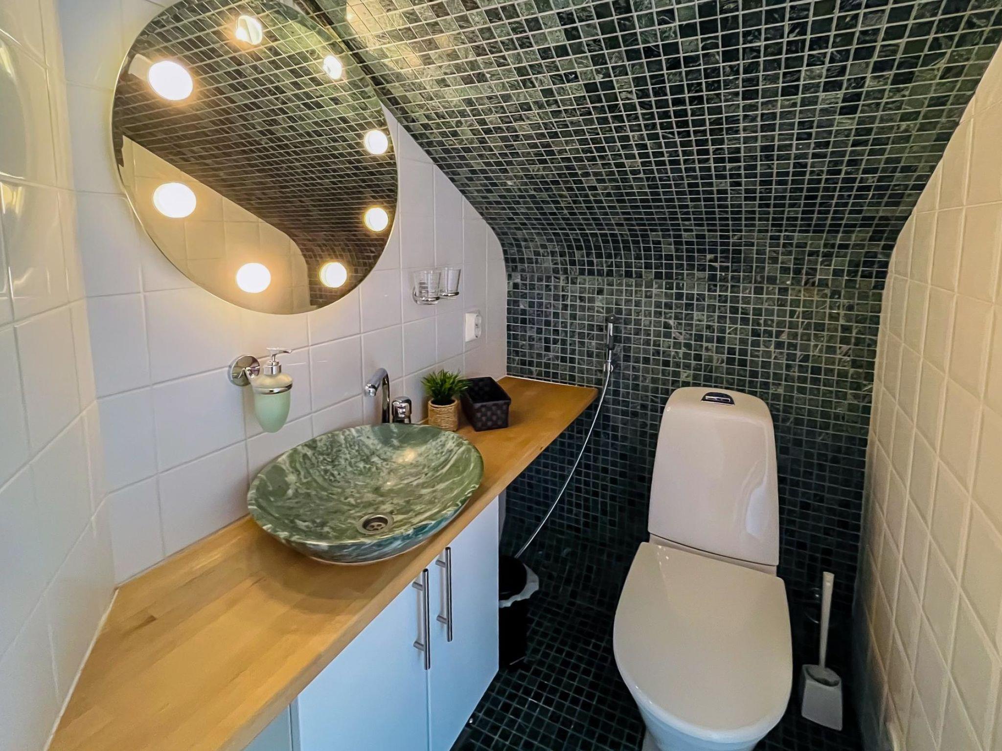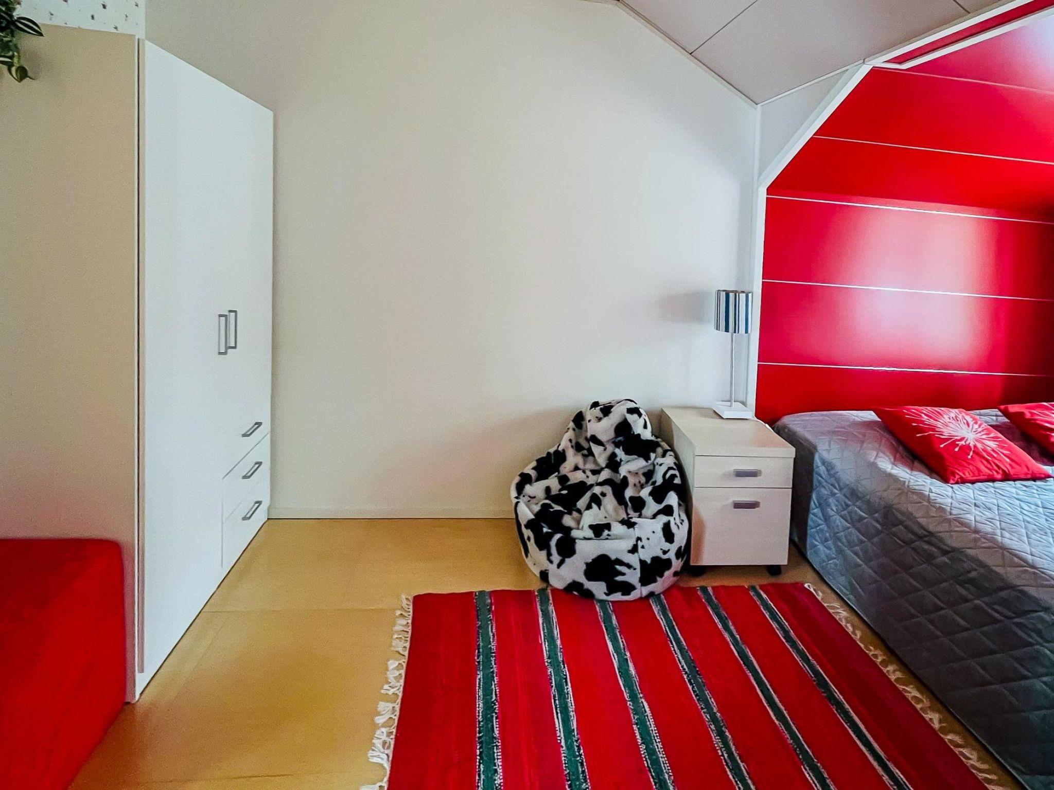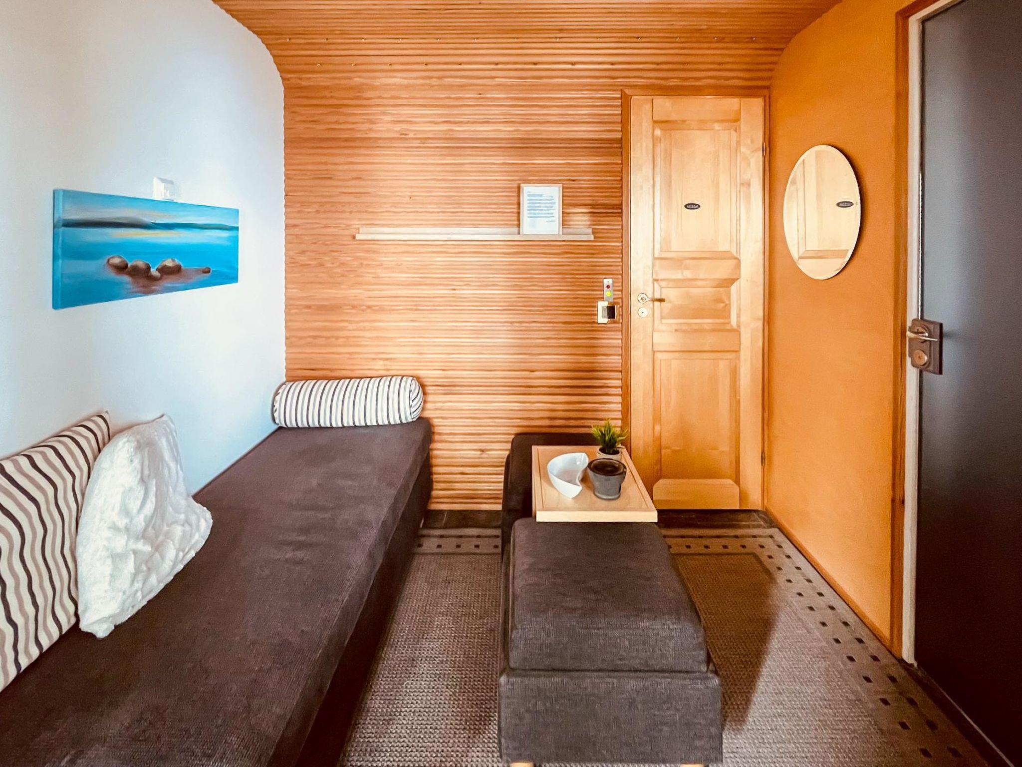 The well-equipped kitchen has 2 induction hobs, 2 gas burners, and an electric oven. For enthusiastic cooks, there is also a wood-fired baking owen by the fireplace, which you can use also as a pizza owen. The living/dining area has a smart TV, which can be used to receive Finnish TV channels as well as various streaming services and media libraries. The bedroom on the ground floor has 2 single beds and the three bedrooms on the upper floor each have 2 beds. The beds on the upper floor are set up as double beds but can also be separated and used as single beds. All bedrooms are equipped with a wardrobe. Upstairs there is also a lounge and a roof balcony with breathtaking views over the Pielinen. The TV upstairs is not connected to the terrestrial antenna, but has HDMI connections so you can connect the vacation home's Blu-ray player or your own device (e.g., laptop, game console). 4G Wi-Fi is available in the house. The sauna is electrically heated and has windows with beautiful views of the forest and the Pielinen.