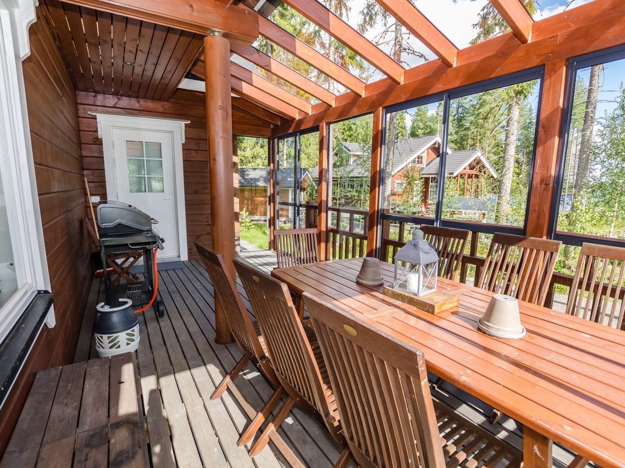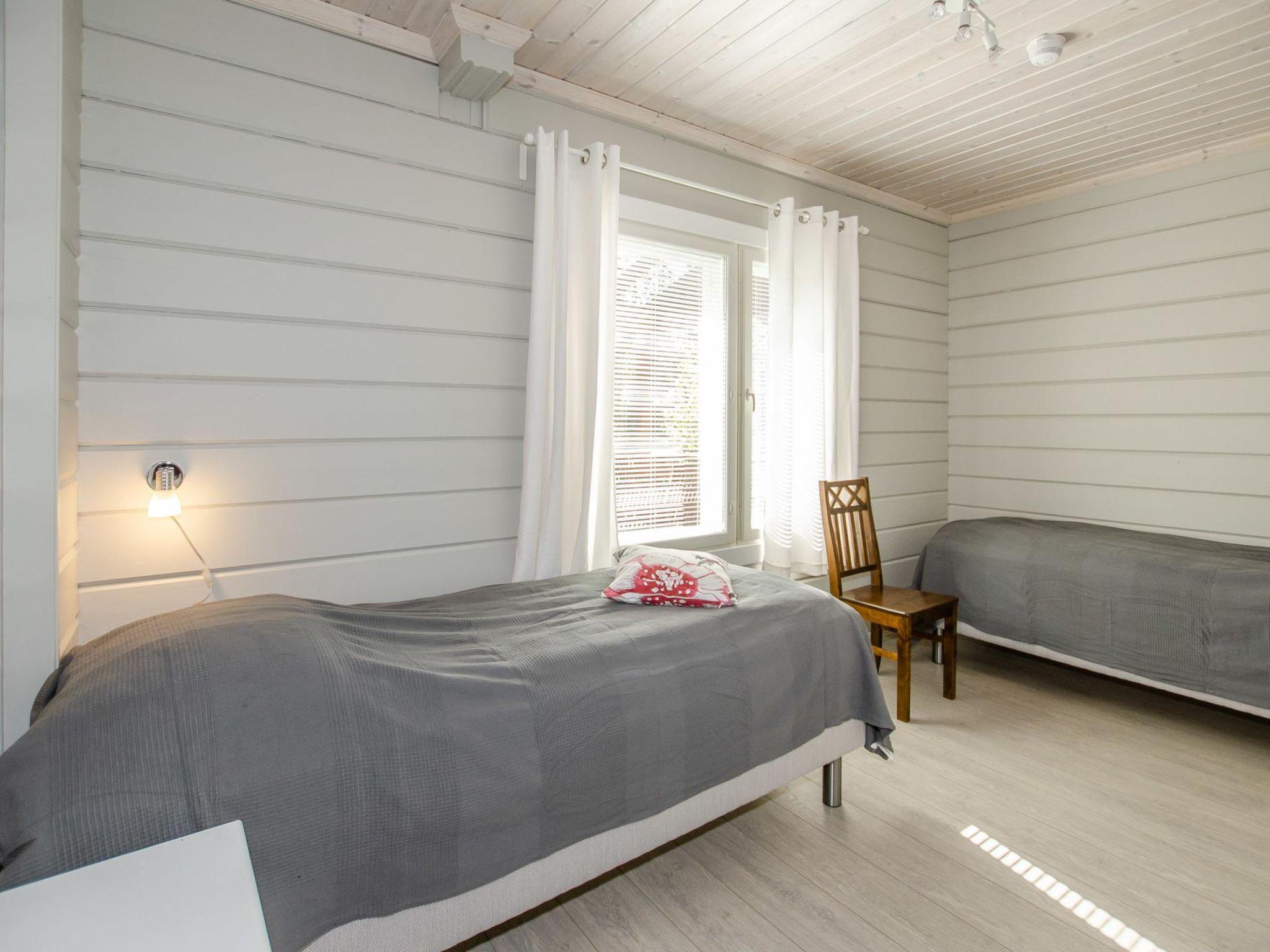 Log cabin 2020, living room/kitchen, bedroom with double bed, bedroom with 2 beds. On the upper floor bedroom with double bed and another bedroom with 2 beds and loft. Combined dressing and utility room, washroom, electric sauna, open veranda and terrace.