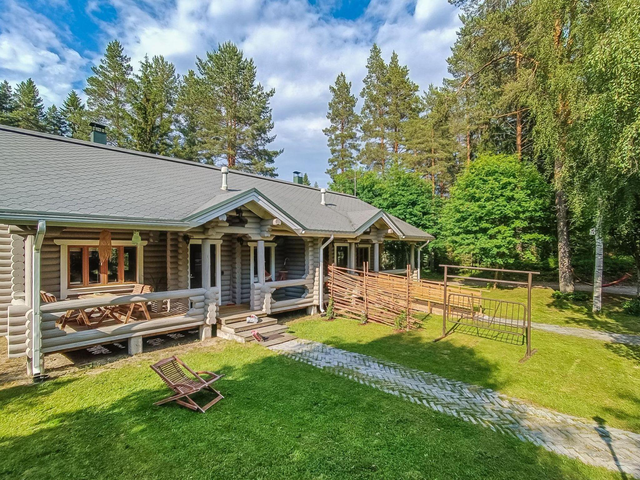 72 km to the north from Joensuu, lake Pielinen 250 m (871.2 km²), shallow public beach of the Purnuniemi holiday cabin area, which is full of boats. On the beach, there is a shared boat with the Purnutar A apartment. Apartment in a log-built semi-detached house 2000, living room-kitchen, bedroom with double bed, small bed room with 2 beds, spacious loft with 2 beds and mattress, washroom, electric sauna, terrace.