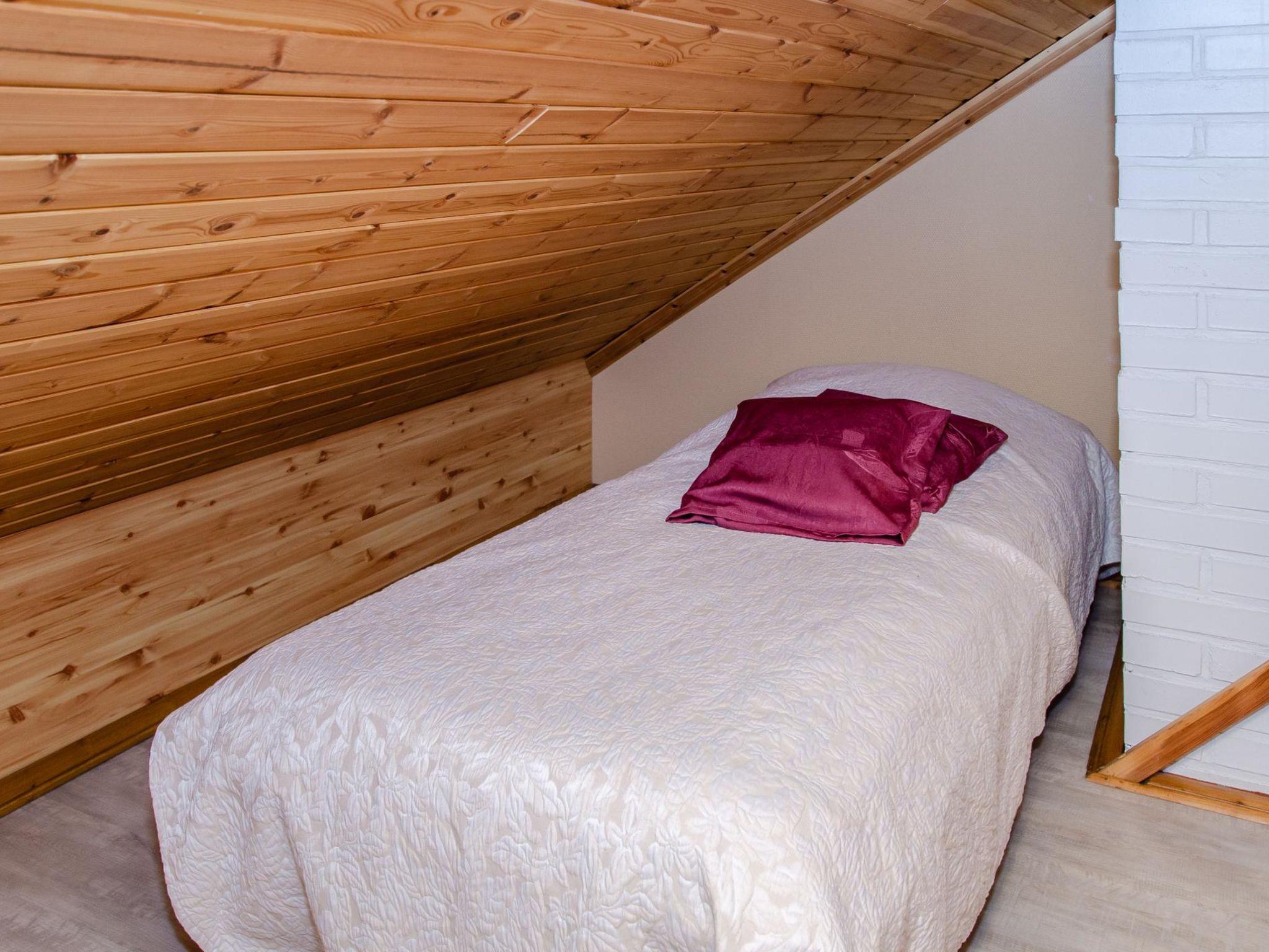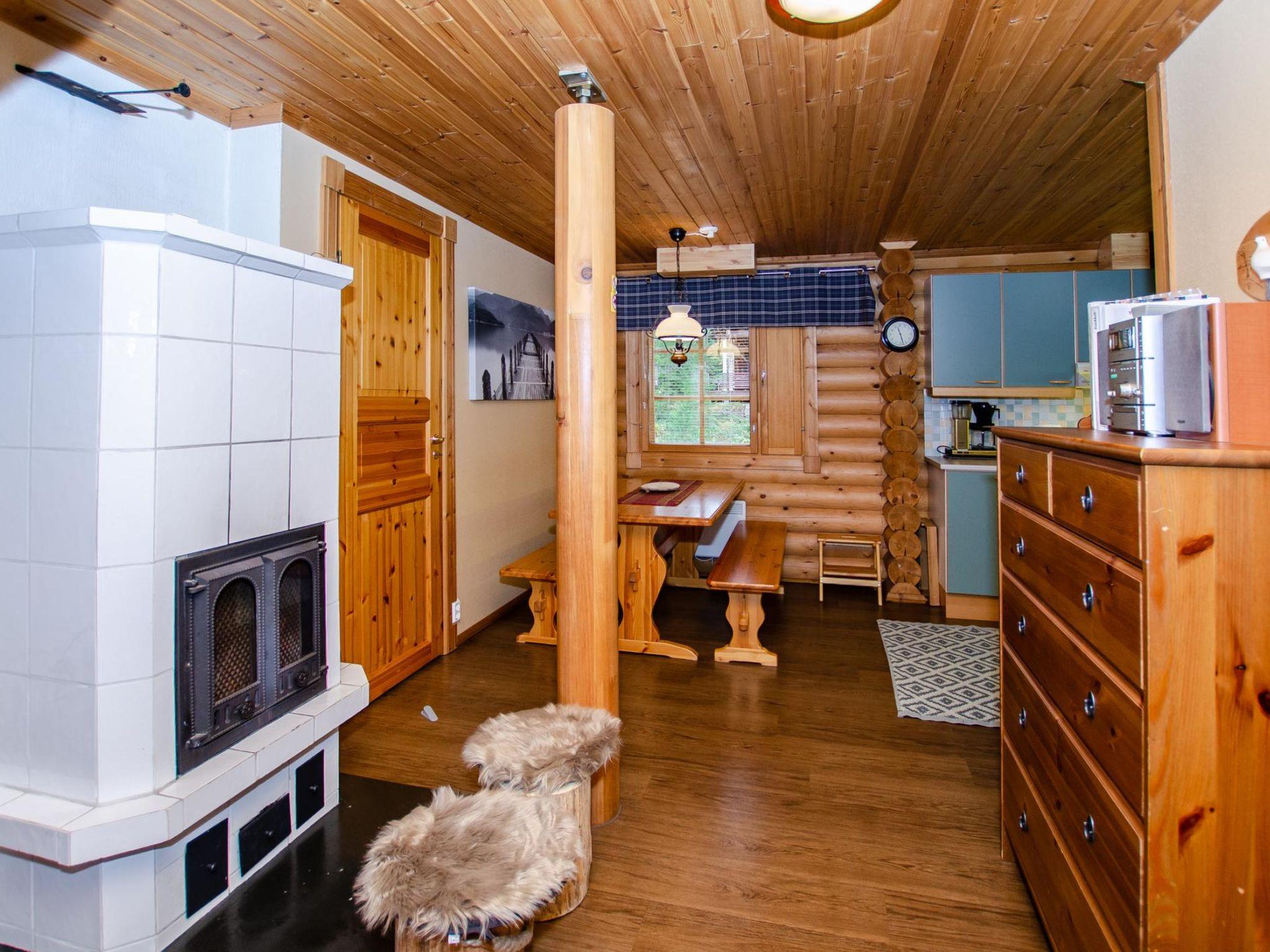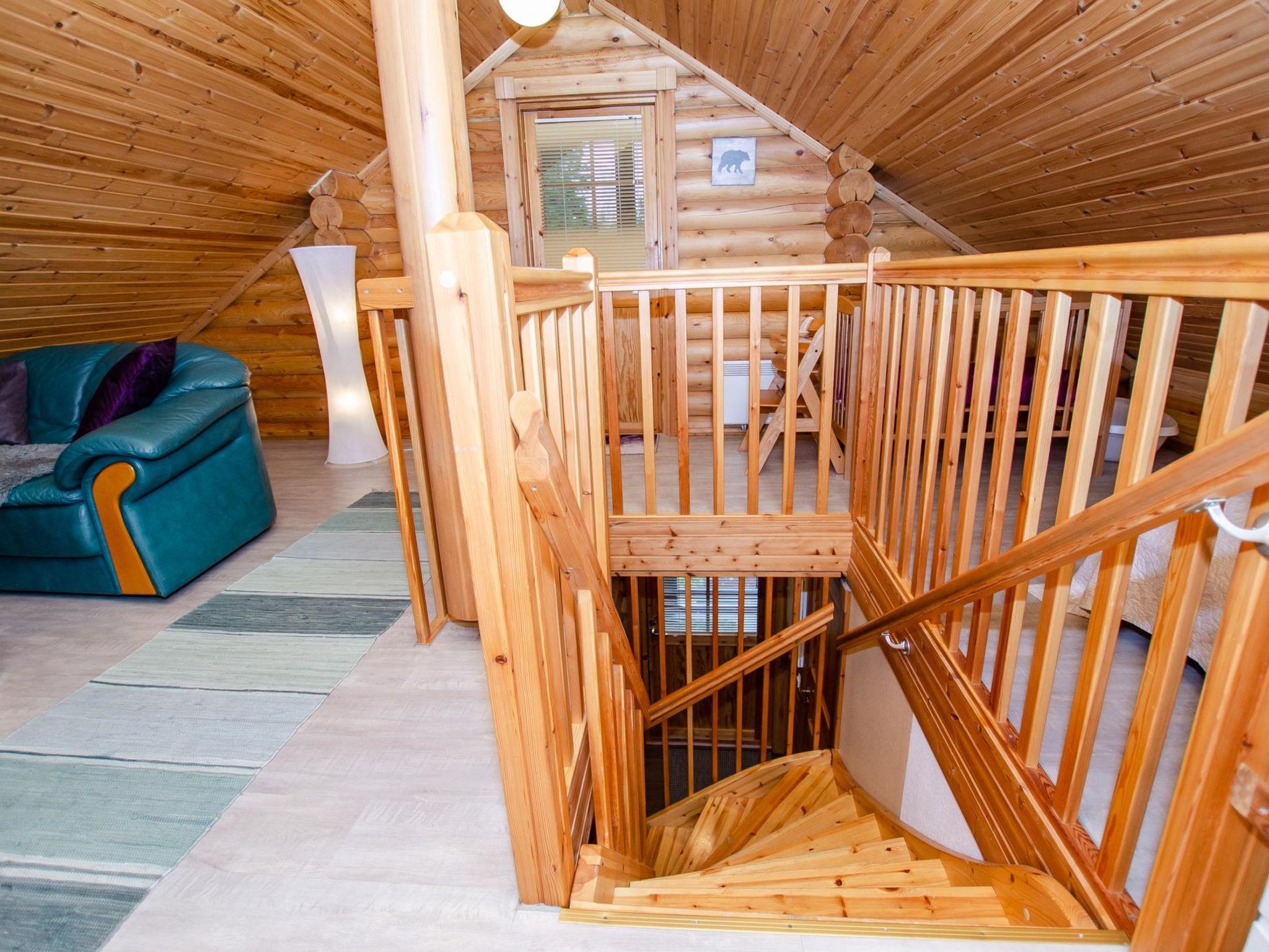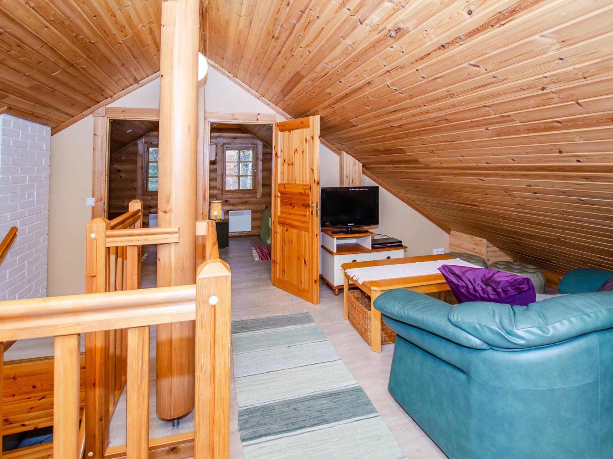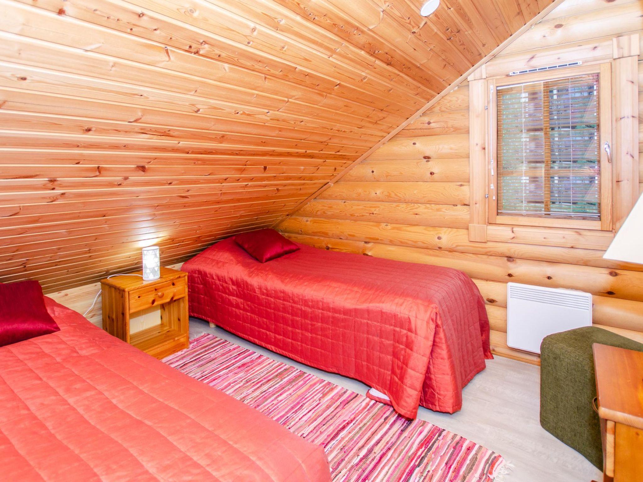 71 km north of Joensuu, Lake Pielinen 200 m (871.2 km²), shallow sandy beach shared by the Purnuniemi cottage area, with many boats from the cottages in the area. There is no boat in this cottage. Log cabin 2003, living room-kitchen, downstairs bedroom with 2 beds, upstairs 2 bedrooms, each with 2 beds, lounge loft (22 m2) 1 bed, bathroom, sauna (wood-heated), terrace, balcony.