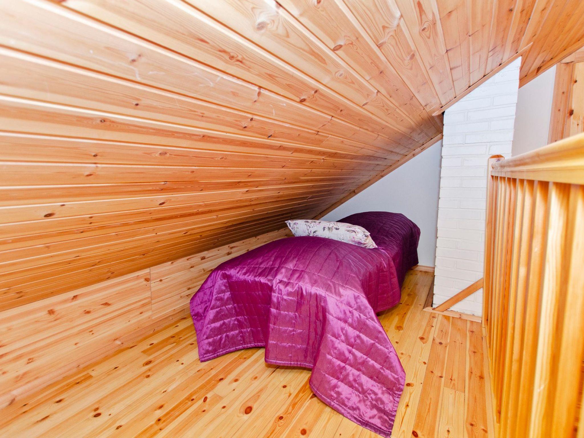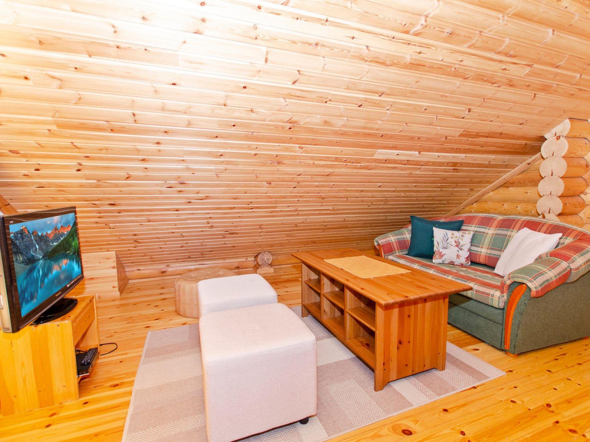 71 km north of Joensuu, Lake Pielinen 200 m (871.2 km²), shallow sandy beach shared by the Purnuniemi cottage area, with many boats from the cottages in the area. There is no boat in this cottage. Round log cabin 2003, living room-kitchen, downstairs bedroom with 2 beds, upstairs 2 bedrooms, each with 2 beds, lounge loft (22 m²) 1 bed, bathroom, sauna (wood-heated), terrace, balcony. On the covered terrace there is a large 6-person corner sofa where you can sit comfortably while enjoying the outdoors.