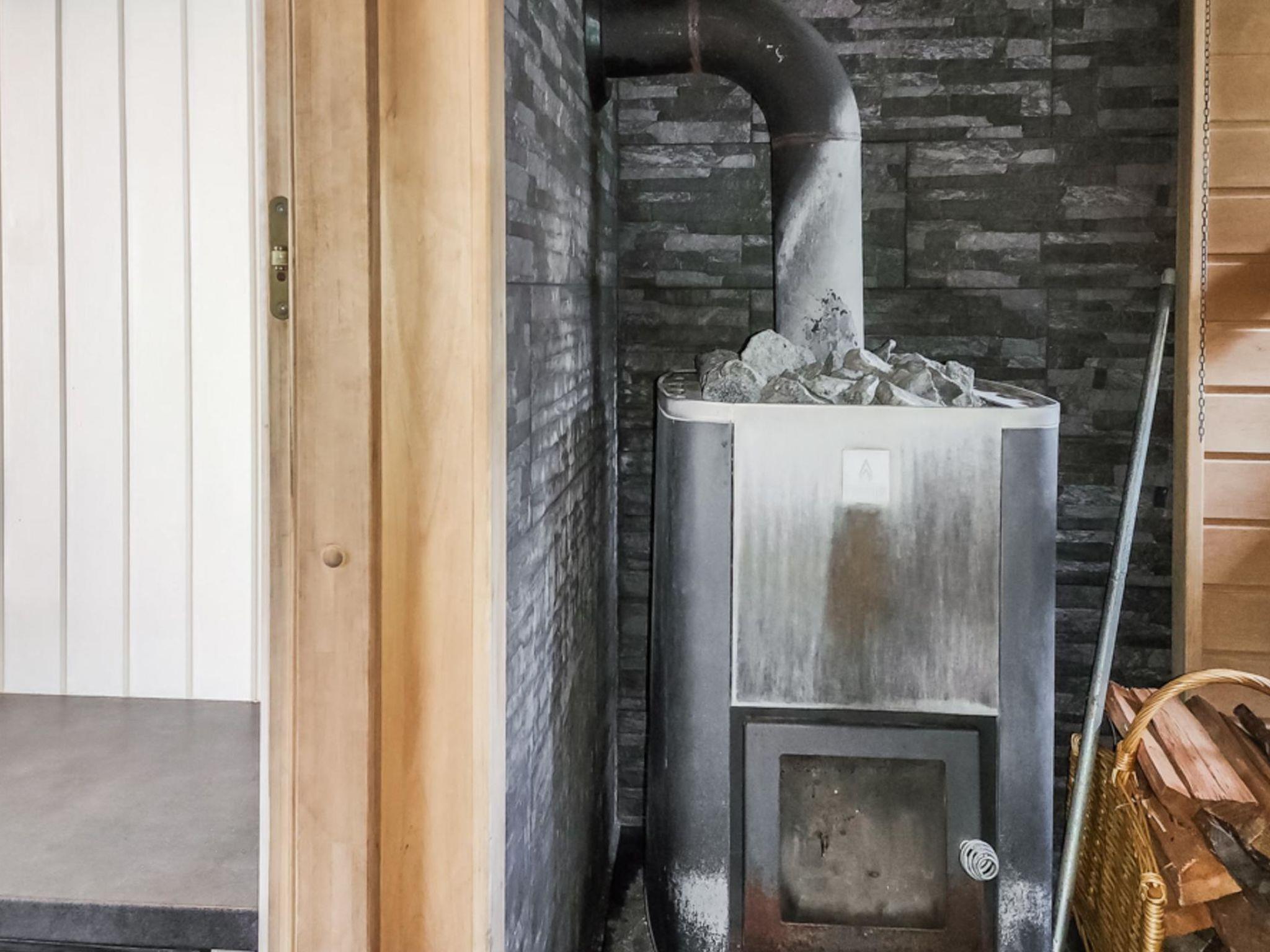 Wood-heated sauna and a shower-equipped bathroom.
