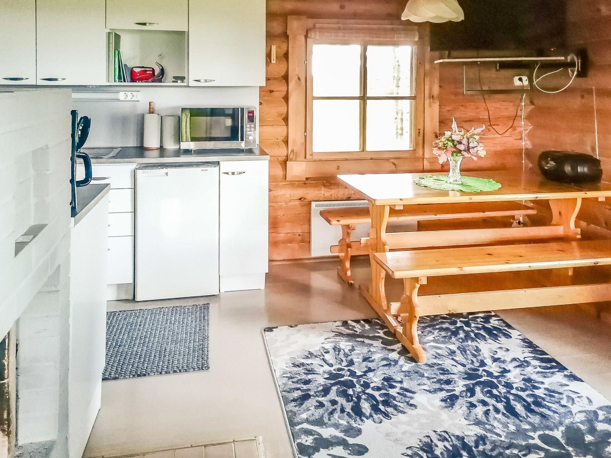 Log cabin 1990, living room/kitchen 1 sofa (for two persons), bedroom with 2 beds, dressing room, sauna (wood sauna stove), glazed veranda. Entrance to sauna and toilet via veranda.