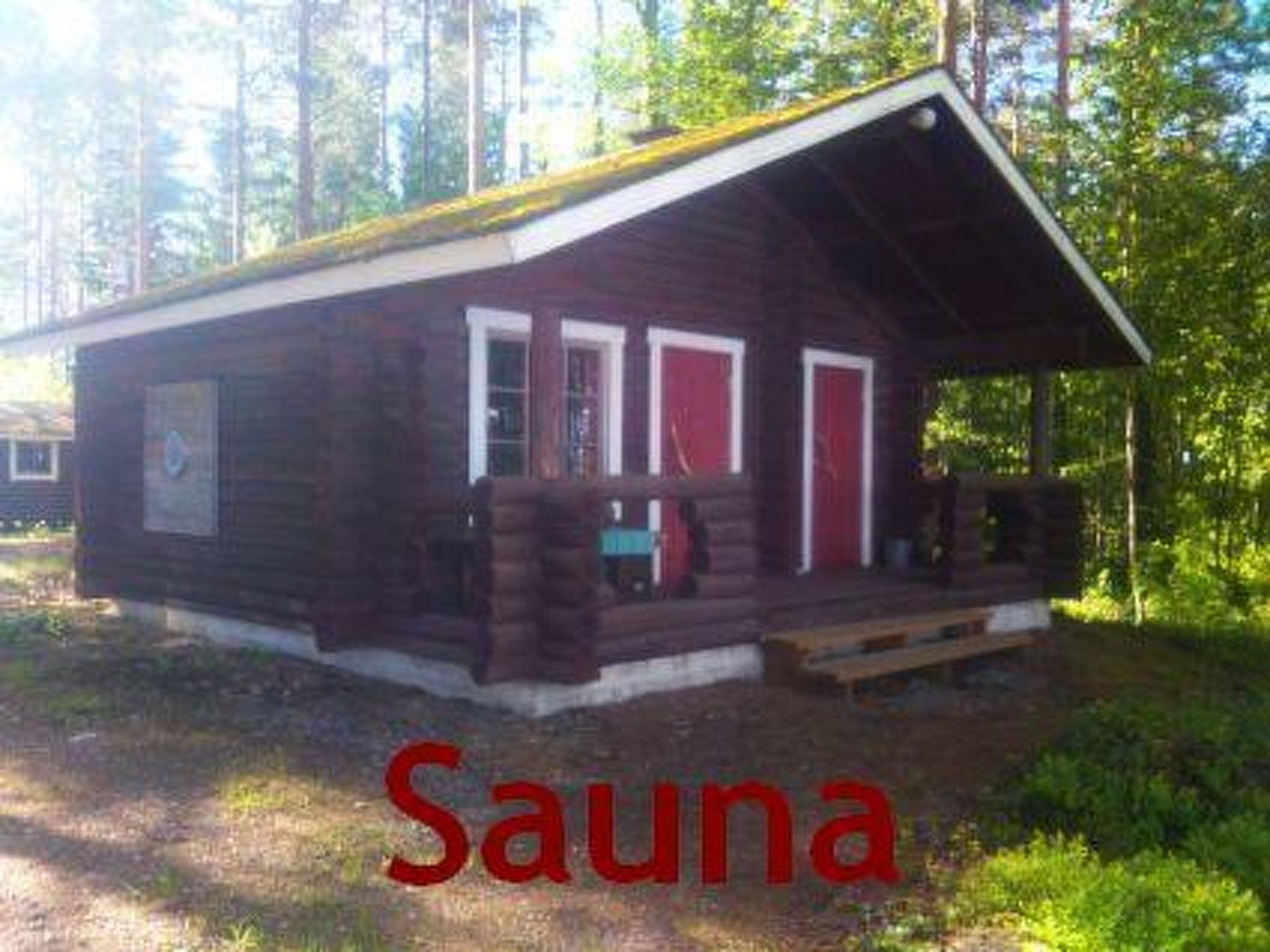 35 km southwest of Joensuu, Lake Orivesi 30 m (536 km2) own shallow beach with hard sanded bottom, own boat and jetty. Log cottage 1997, kitchen-living room with convertible bunk bed, sleeping alcove with double bed, washroom, sauna (wood heated stove), terrace. Own, separate sauna building (24 m2) with dressing room and fireplace room with two beds and electricity.