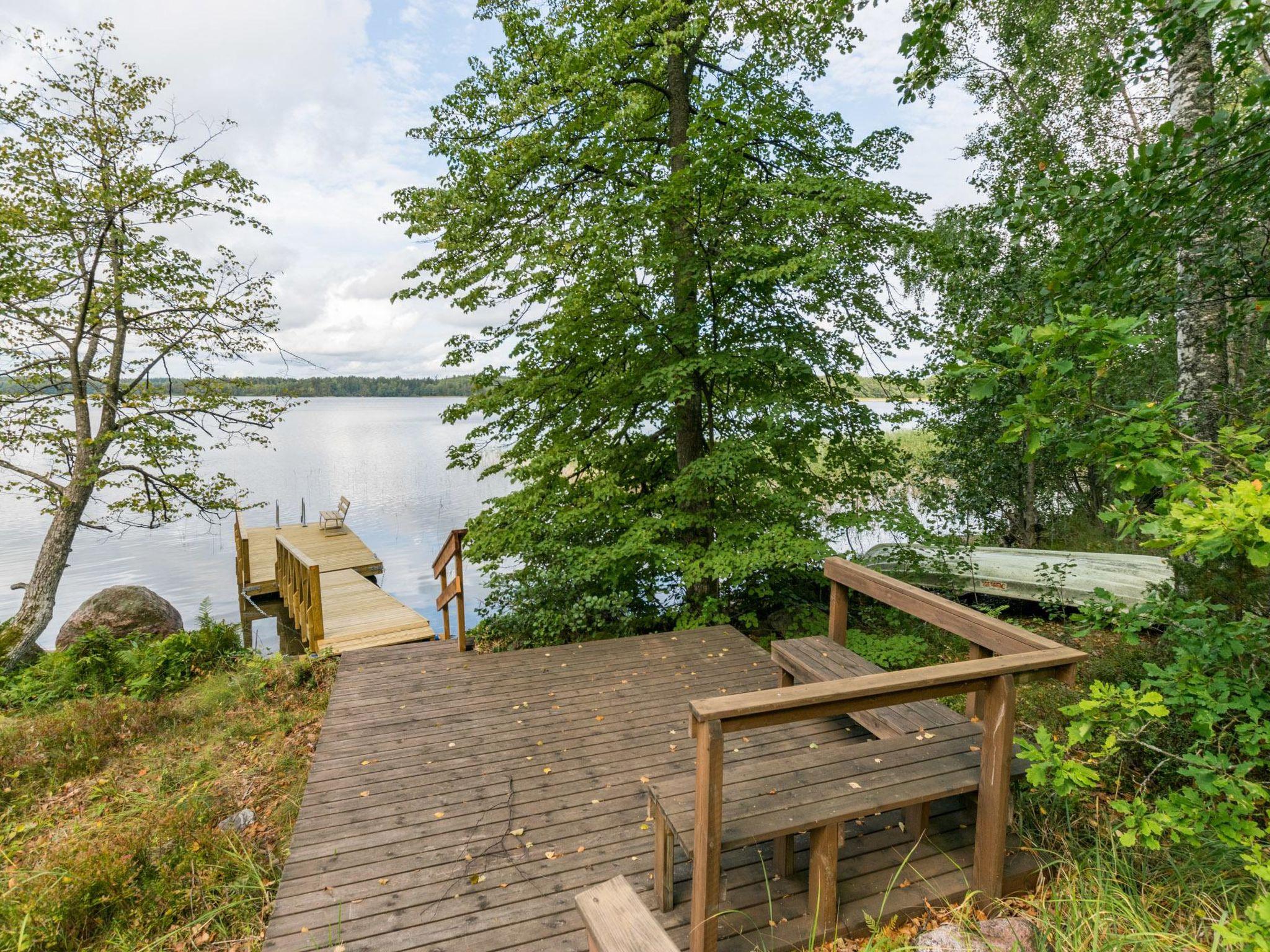 90 km west of Helsinki, lake Lohjanjärvi 60 m (largest lake in district Uusimaa, 10 x 10 km), shallow sanded gravel bottom, deeper clay, sturdy dock and rowing boat.