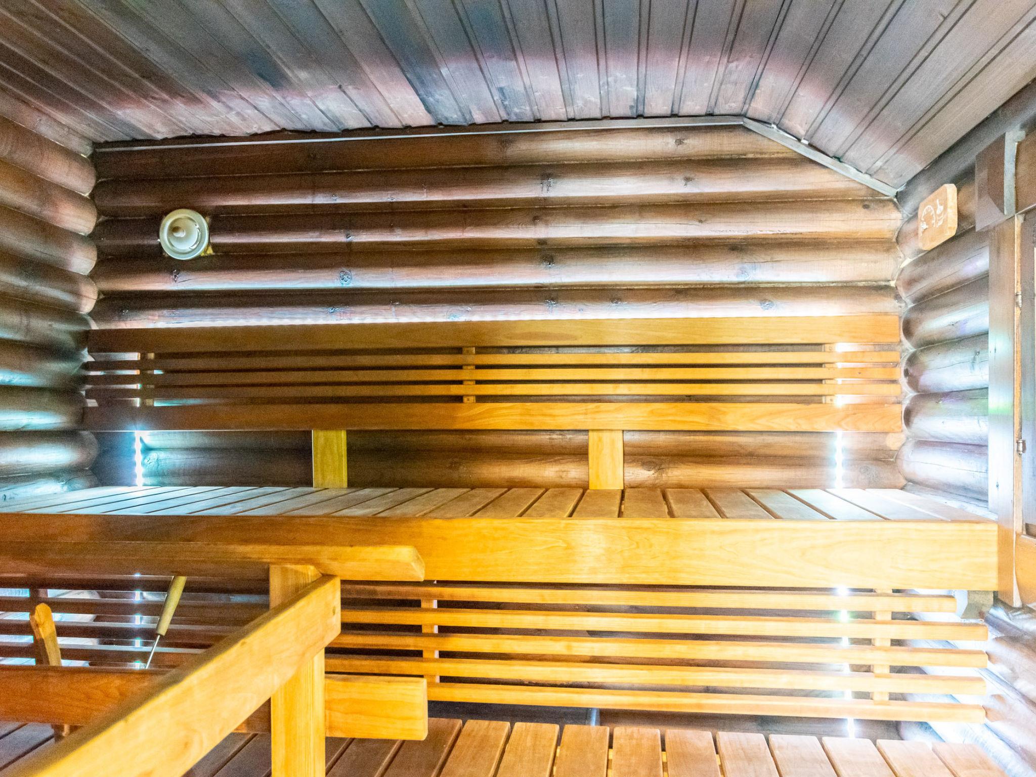 At the beach, there is a wood-heated lakeside sauna, which includes a separate living room (with sofas and a fireplace) and a terrace with a hydro massage bath. The private sandy beach is shallow at the shore but deepens quickly. Private pier and a rowing boat.