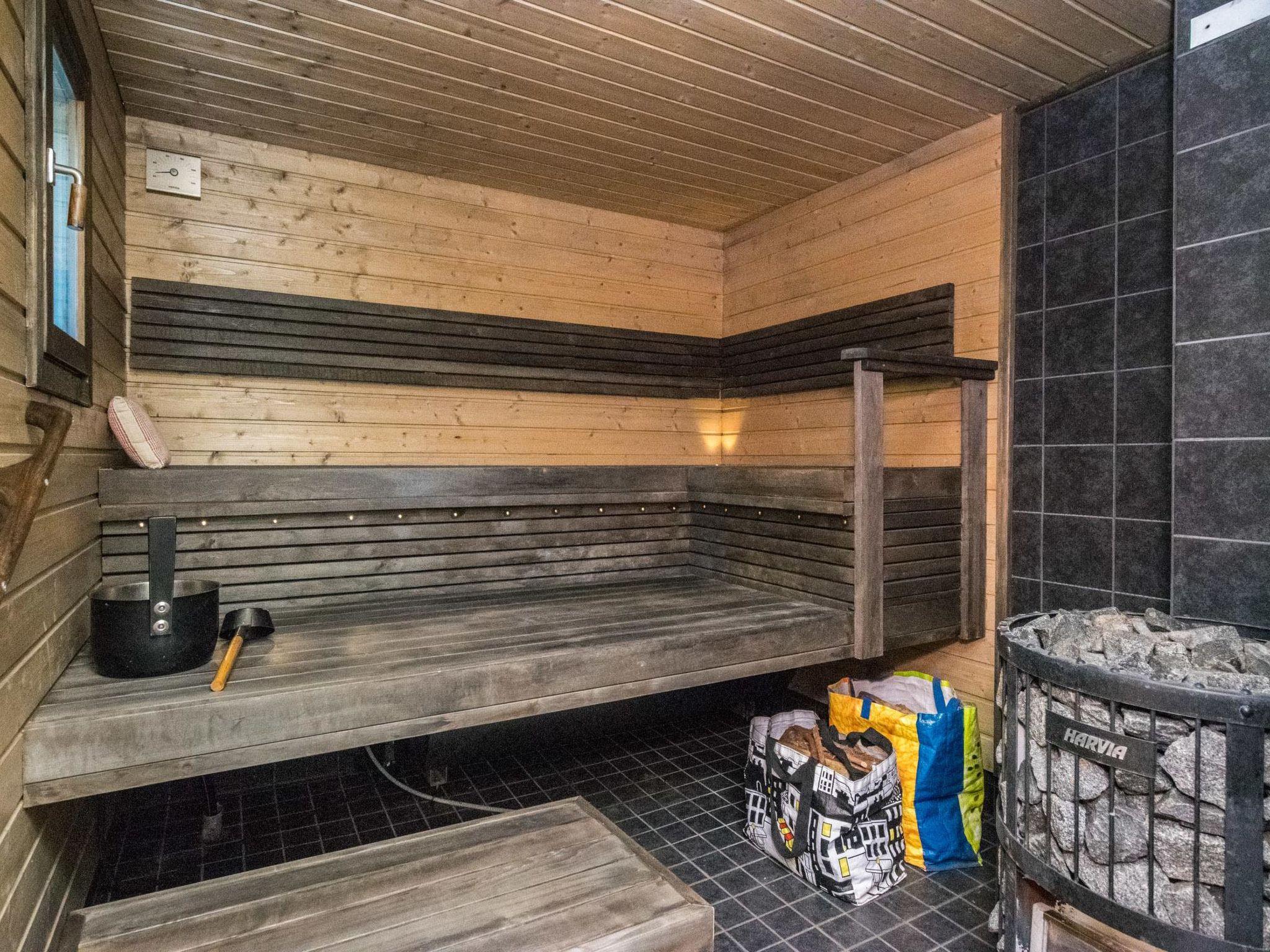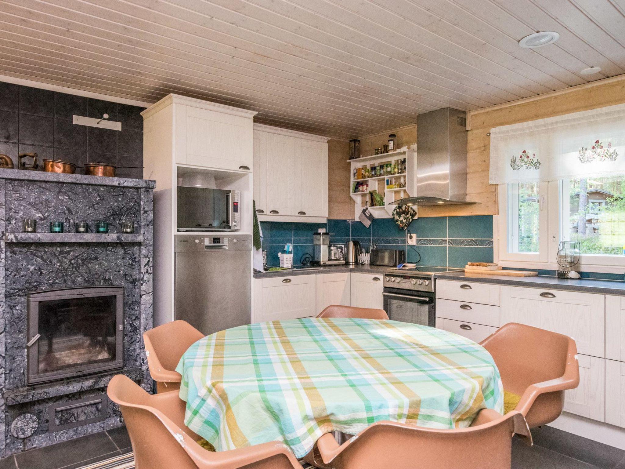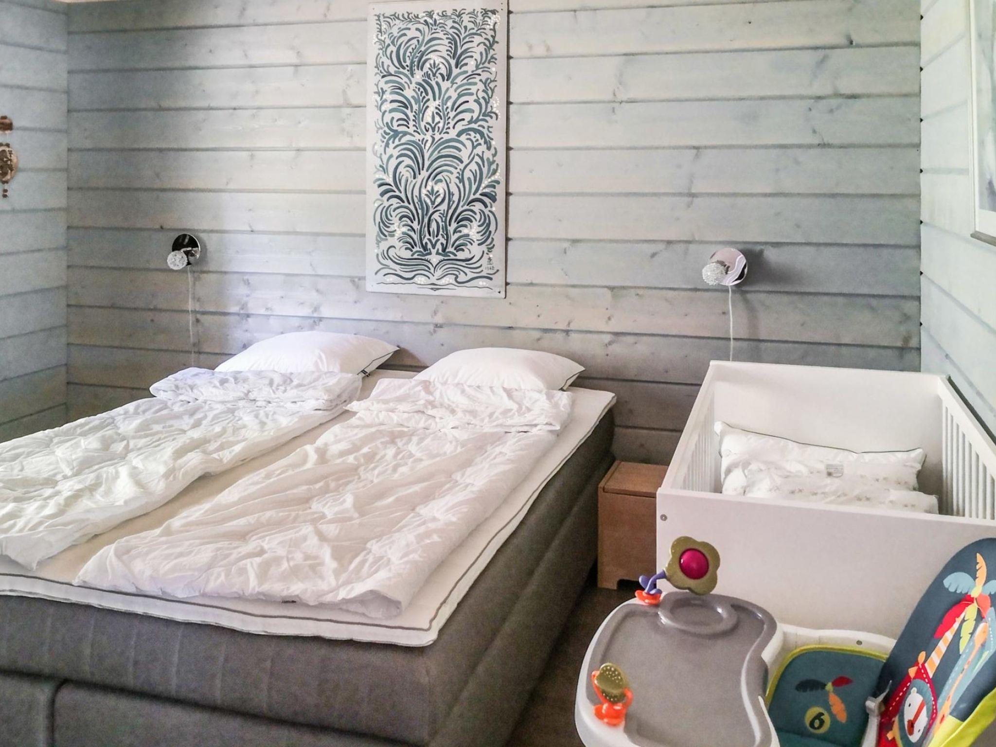 Wood-built villa, completely renovated in 2014, living room/kitchen with spreadable bed for two, double bed and cot in the bedroom (12 m²), double bed in the another bedroom (9 m²), separate WC, dressing room, washroom and wood-burning sauna stove in the sauna.