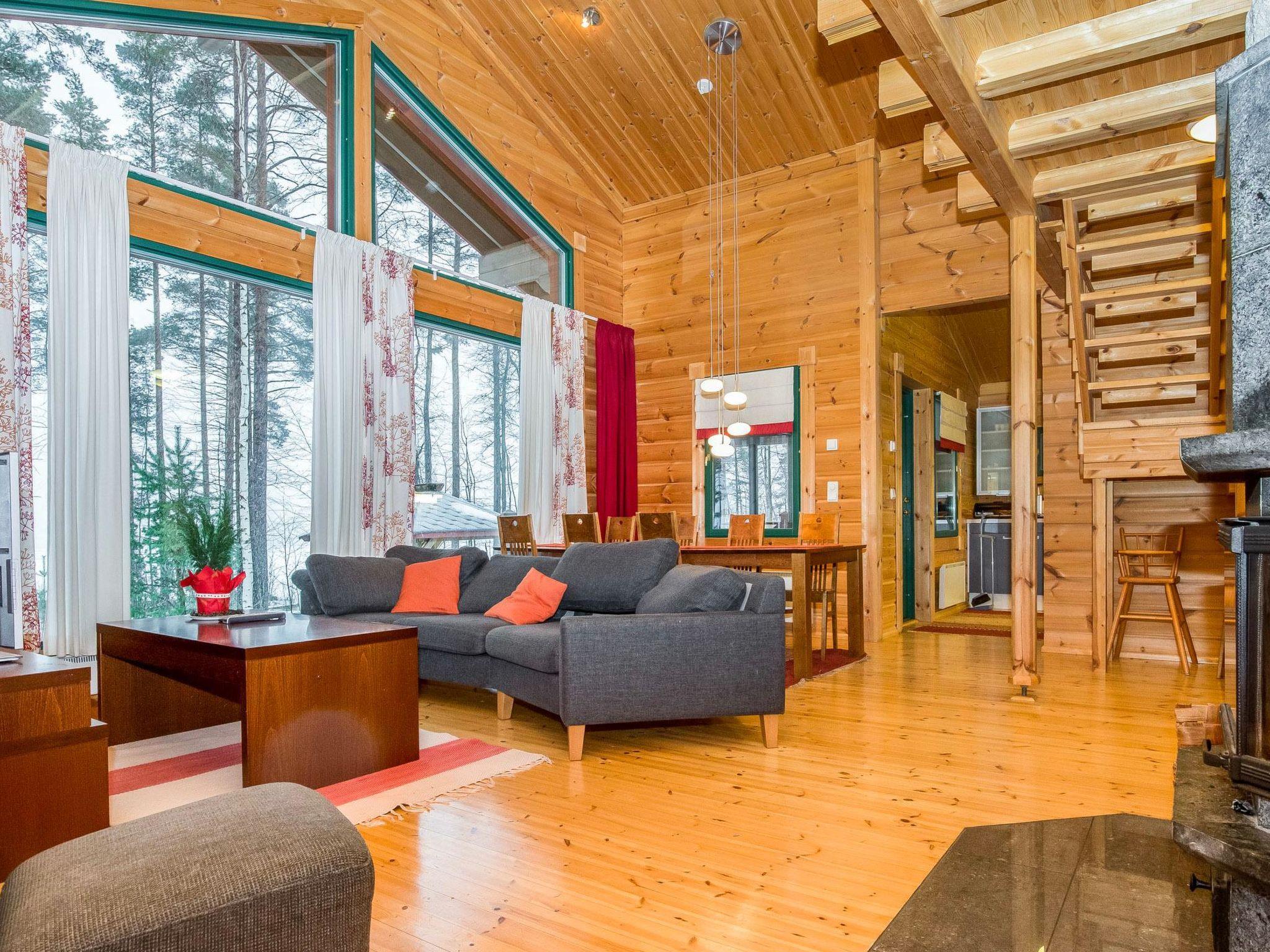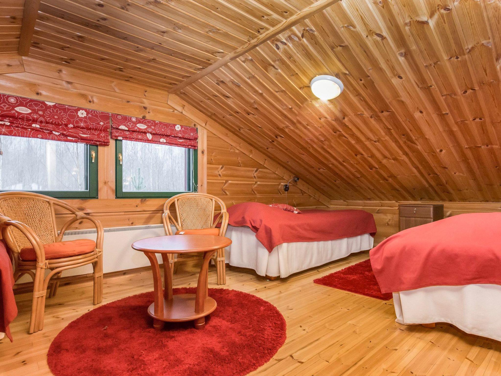Log villa 2006, living room, kitchen, on the ground floor two bedrooms (11 m²), two beds in both, dressing room, washroom, sauna with electric sauna stove, separate WC. Four beds in the loft. Internet connection 4G and wireless network in the villa.