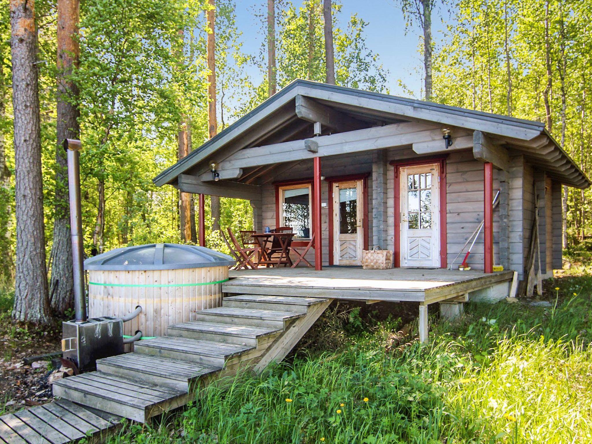 Lakeside sauna 2006, washroom with shower and WC, sauna with wood burning sauna stove, fireplace room with stove, kitchenette, two beds on the sofa bed. There is also bathtub in the sauna. Bathtub is with extra charge. Bathtub is pre-filled.